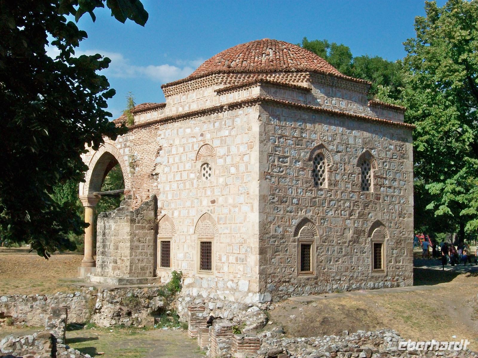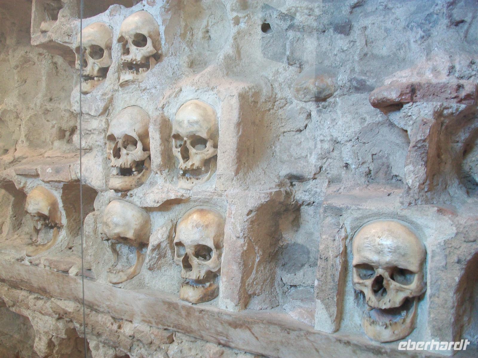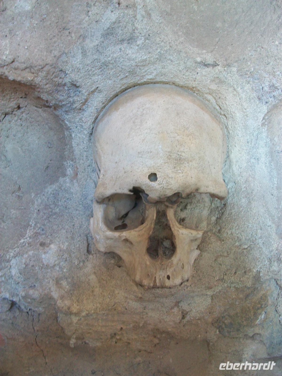 wir uns nun anschauen möchten. Es ist der Schädelturm, entstanden zu einer Zeit als die Serben gegen die osmanischen Besatzer Krieg führten. Als Abschreckung köpften die Türken serbische Kriegsgefangene, häuteten die Schädel und sandten sie nach Niš. Hier fanden sie im drei Meter hohen und eckigen Schädelturm ihren letzten Platz. Dieser ist in einem Gebäude untergebracht in welches wir einen Blick werfen konnten.