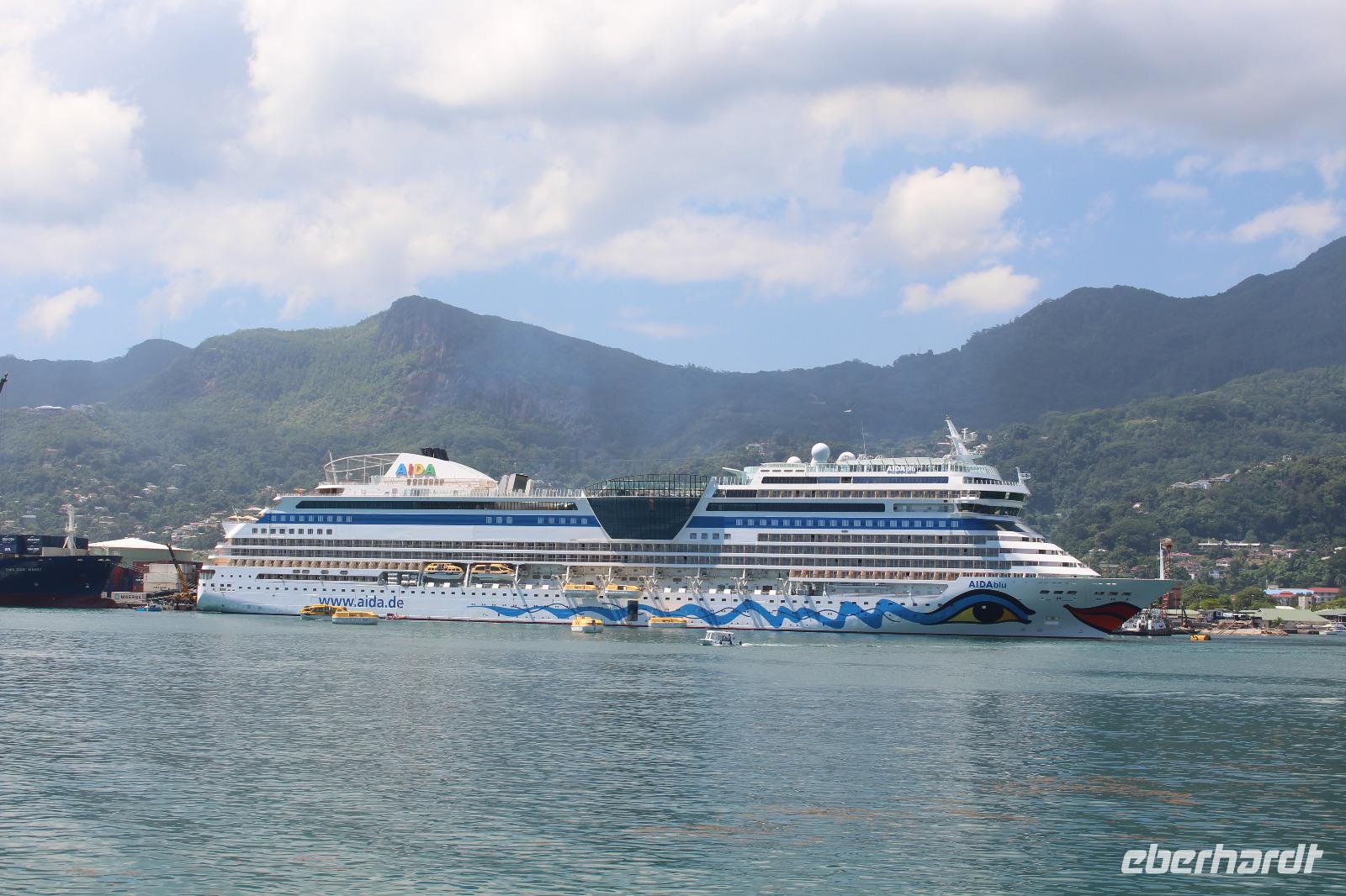 Eigentlich hatten wir für heute noch einen AIDA Ganztagesausflug „Vom Meer bis zum Vulkan" geplant, aber da wir wegen zwei herumschwirrenden Zyklone La Réunion schon gegen Mittag verlassen müssen, fällt unser AIDA-Ausflug leider ins Wasser :-(. Die Gäste die einen Halbtagesausflug gebucht haben, konnten diesen natürlich wahrnehmen. Aber nicht nur wir müssen den Hafen vorzeitig verlassen, auch alle anderen Schiffe, wie Containerschiffe, verlassen nach und nach den Hafen, da der Zyklon morgen mit Windstärke 3 auf die Insel treffen soll. Sicherheit geht nun mal vor und für höhere Gewalt kann keiner was - die Natur hat Ihren eigenen Willen. Schnell hat die AIDA Crew ein neues Tagesprogramm mit vielen zusätzlichen Programmpunkten zusammengestellt, so dass wir genügend Abwechslung haben. Wir verlassen La Reunion und steuern Richtung Seychellen.