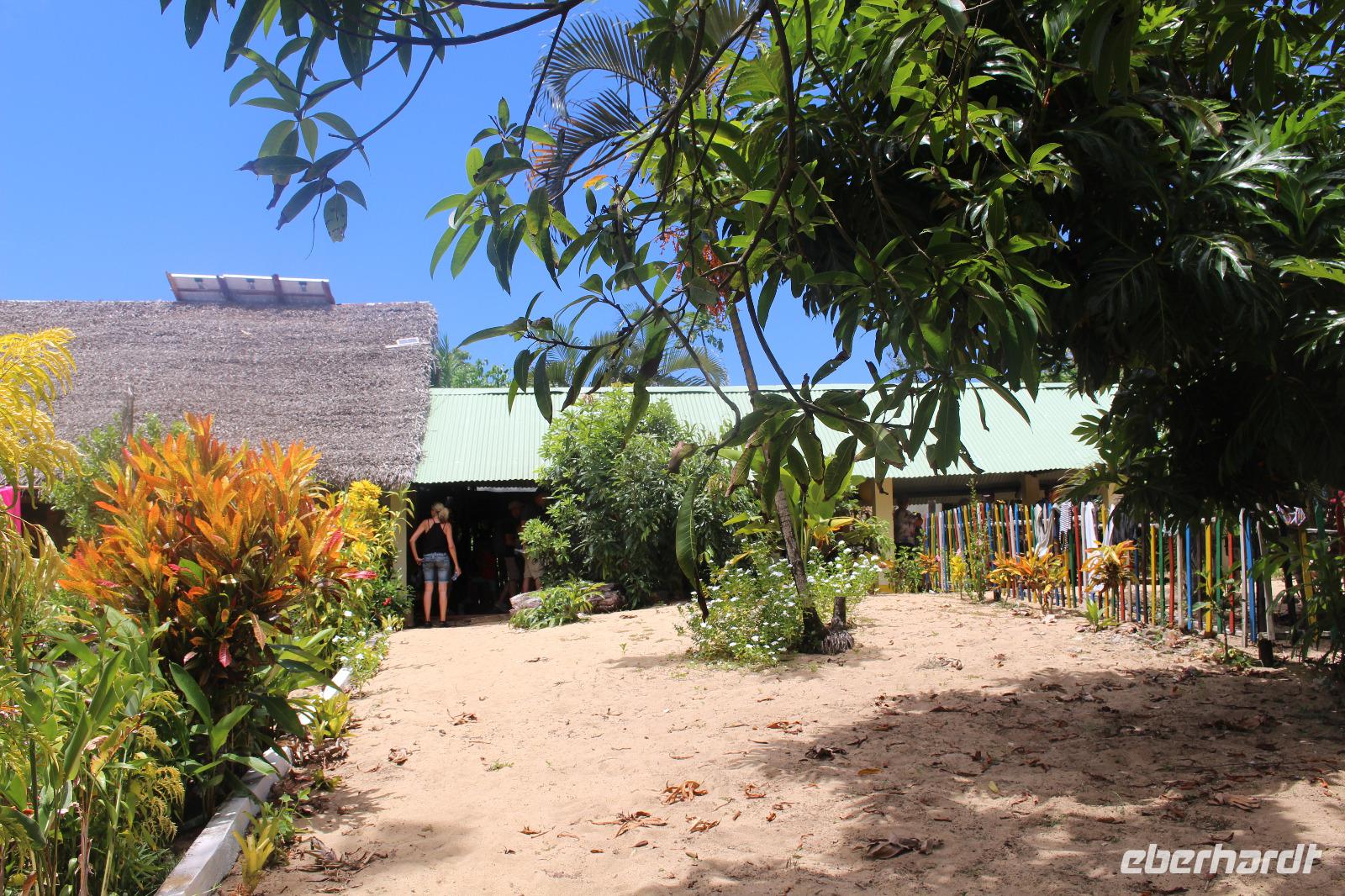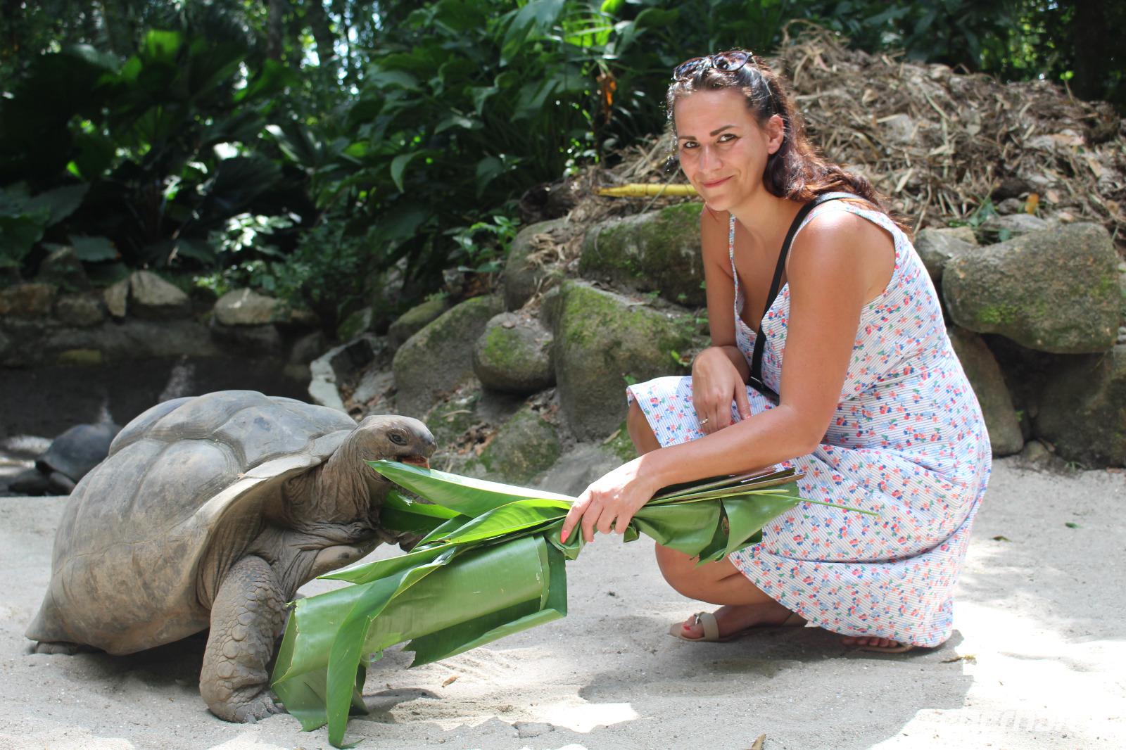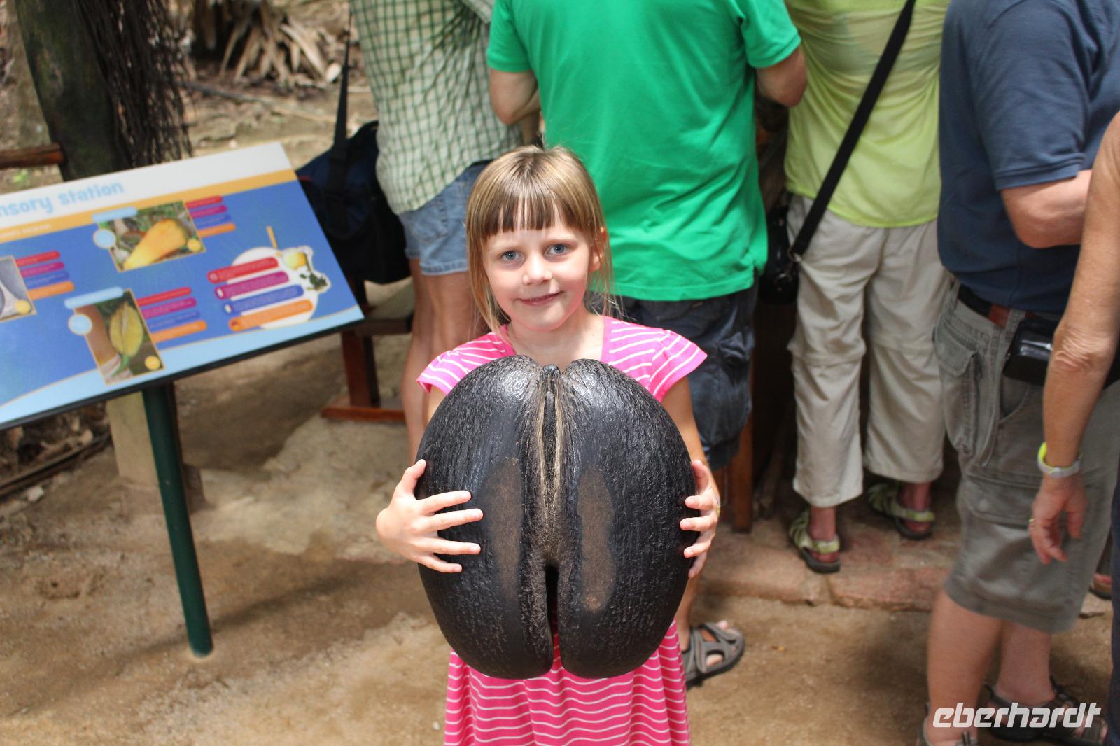 Heute Morgen um 8 Uhr legen wir im Hafen von Mahé an. Nachdem wir uns über zwei Tage an Deck der AIDA erholt haben, starten wir heute zum Eberhardt TRAVEL Ausflug nach Praslin. Unser Reiseleiter Cyril wartet schon im Hafen, wo wir mit Tanz und Musik von den Einheimischen freundlich empfangen werden. Bei traumhaften 30 Grad starten wir und fahren nur ein paar Minuten mit dem Bus zur Anlegestelle für unsere Fährüberfahrt nach Praslin. Sie ist mit einer Fläche von 38 km² die zweitgrößte Insel der inneren Seychellen. Die Seychellen bestehen aus insgesamt 115 Inseln. Die größte und gleichzeitig die Hauptinsel ist aber Mahé, wo wir uns gerade befinden. Wir machen es uns oben an Deck gemütlich und genießen die eine Stunde fahrt bis zur Insel. Schon im Hafen von Praslin sind wir überwältigt von dem glasklaren Wasser und den traumhaften Stränden. Aber es wird noch besser. Zuerst fahren wir zum Herzstück der Insel - dem Nationalpark Valleé de Mai. Hier befinden sich über 1.400 Exemplare der sagenumwobenen Coco de Mer. Sie ist die größte Nuss der Welt und findet man nur auf den Seychellen. Im Anschluss haben wir in dem kleine Hotel Britannia an der Westküste unser Mittagessen.