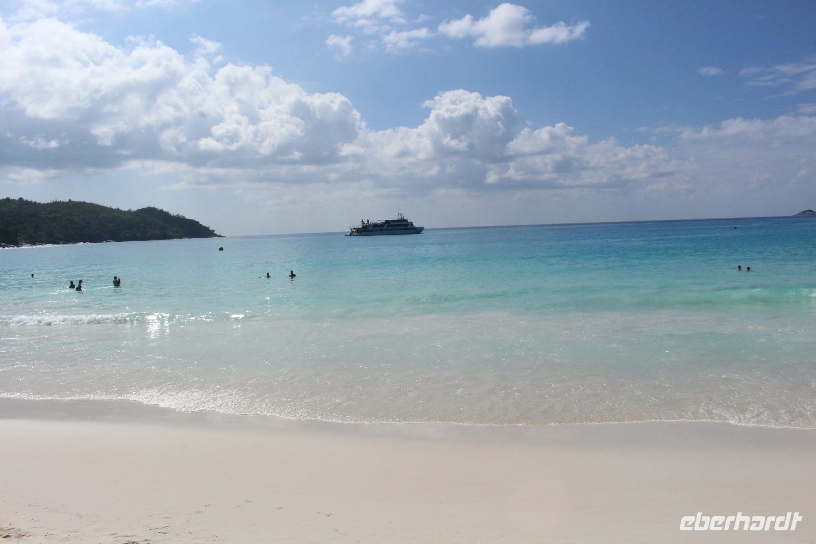 Am Nachmittag fahren wir nach Anse Lazio. Er gehört mit zu den weltweit schönsten Stränden und das können wir auf jeden Fall bestätigen. Türkisfarbenes Wasser, Palmen und strahlend weißer Sand, dass einem schon die Augen weh tun :-). Die nächsten zwei Stunden schnorcheln, schwimmen und relax wir hier an diesem traumhaften Fleckchen Erde. Wir nehmen um 18 Uhr die letzte Fähre von Praslin zurück nach Mahé und sind pünktlich zum Abendessen und den AIDA-Shows zurück an Bord.