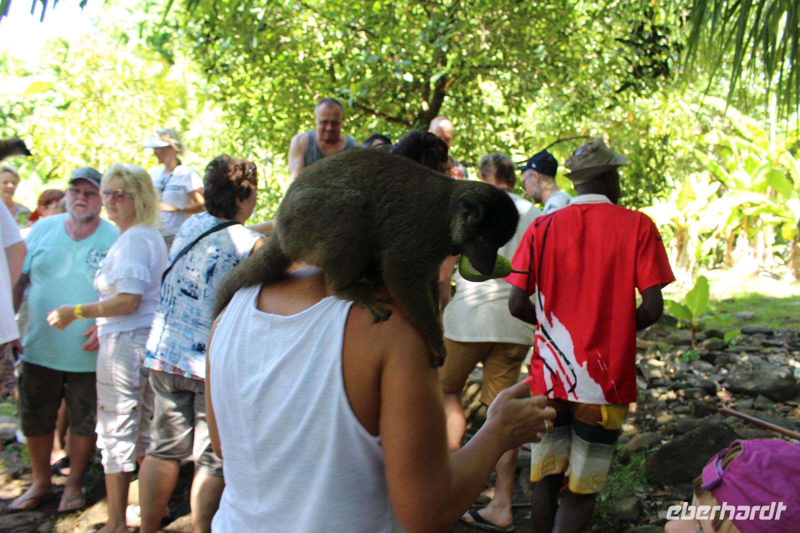 Früh legt die AIDA vor der Insel Nosy Be an. Sie ist ca. 10 km vom Festland entfernt und ist schon "etwas" mehr auf Tourismus eingestellt wie Antsiranana. Da der Hafen viel zu klein ist für unser großes Schiff, müssen wir heute Tendern. Aber auch das geht zügig von der Hand. Zuerst geht's mit unserem kleinen aber schnellen Boot auf „Paradis Island". Die kleine Insel im indischen Ozean, hat einen kleine Strand, keine Bewohner - außer - Lemuren :-). Wer kennt nicht die kleinen, süßen Äffchen die es nur hier auf Madagaskar gibt?! Und die kommen gleich zur Begrüßung und betteln nach süßen Früchten. Sie sind überhaupt nicht scheu und springen ganz schnell von Schulter zu Schulter um sich die Leckereien von uns holen. Gleich gegenüber, nur ein paar Minuten mit dem Boot, ist schon unser eigentliches Ziel - der Coco Beach - auf dem Festland von Madagaskar. Die ehemalige Hotelanlage, direkt am Meer ist der ideale Ort zum relaxen. Schade das Sie mittlerweile außer Betrieb ist, da zu wenig Touristen gekommen sind. Aber für die AIDA öffnet das Hotel regelmäßig um die Gäste zu empfangen. Es gibt sogar einen Meerwasserpool und ein Restaurant wo wir zum Mittag leckeren Fisch serviert bekommen. Bis zum Nachmittag dürfen wir hier verweilen, bevor wir wieder auf´s Schiff müssen.