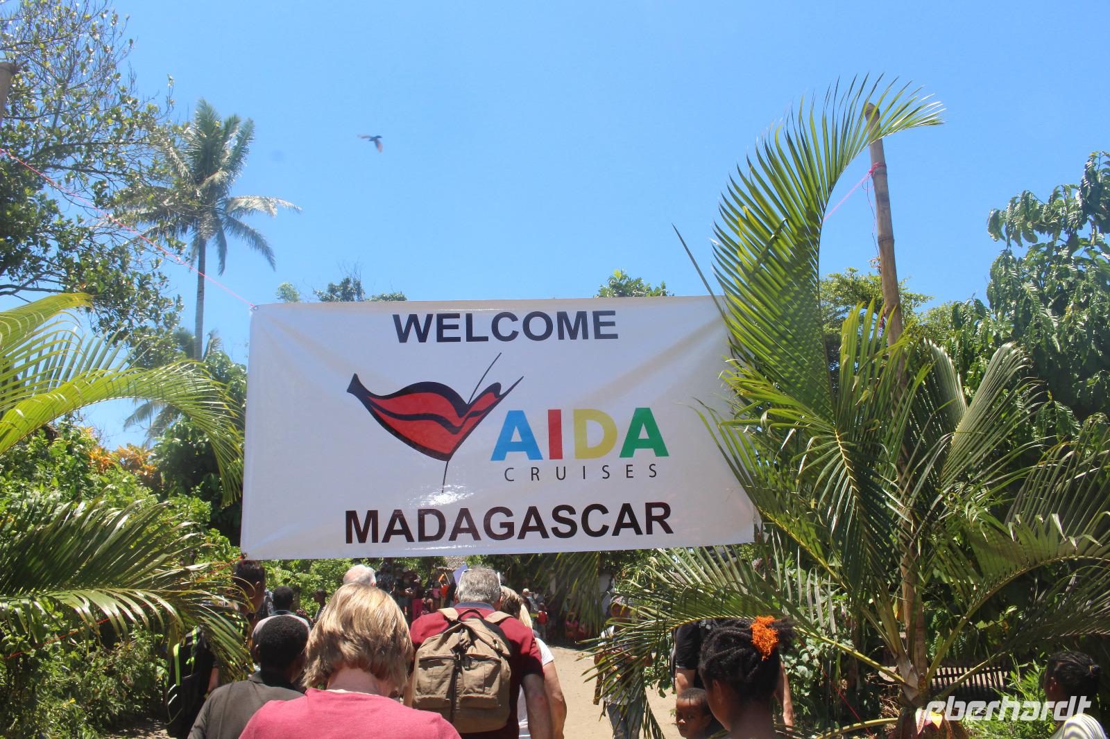 Heute legen wir im größten Handelshafen von Madagaskar an. Hier laufen die Fäden zusammen und ein großeil der Exportprodukte wie Gewürze, Kaffee, Zucker und Fisch wird in alle Welt verschifft. Gemeinsam mit einem Teil meiner Reisegruppe machen wir heute einen AIDA Ausflug "Traditionelles Madagaskar". Gefühlt rund 90 Midibusse stehen am Pier für die ganzen AIDA Ausflüge bereit. Wir sitzen im Bus 85 und unser örtlicher Reiseleiter Judi wartet schon auf uns. Auch ein Scout von der AIDA ist bei uns dabei um für uns zu übersetzen. Wir starten unsere Tour und fahren zum Ufer des Pangalanes Kanales. Der künstlich angelegte, rund 650 km lange Süßwasserkanal ist die Lebensarder der Region, denn Straßen gibt es hier nicht überall. Wir fahren mit unserem kleinen Holzboot rund eine Stunde den Fluß entlang und können das treiben am Fluß beobachten. Von spielenden Kindern im Wasser bis hin zu Fischern und Wäsche waschenden Frauen sieht man hier alles. Wir erreichen das einheimische Dorf, wo wir freudig erwartet werden. Zuerst müssen wir zum Stammesältesten, der uns in seinem Dorf begrüßt. Danach laufen wir durch das Dorf und bekommen einen Einblick über das Leben dort. Überall sind Kinder und Frauen, die ihre Ketten verkaufen wollen. Wir stärken uns an einheimischen Früchten, wie Ananas, Mango, Bananen und Papaya. Nach über einer Stunde fahren wir mit unserm Boot wieder zurück und besuchen den kleinen Markt in Toamasina, der heute nur für die AIDA geöffent hat, da heute Sonntag ist. Danach geht es wieder auf´s Schiff und wir verbringen den Nachmittag an Bord.
