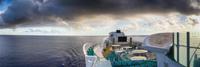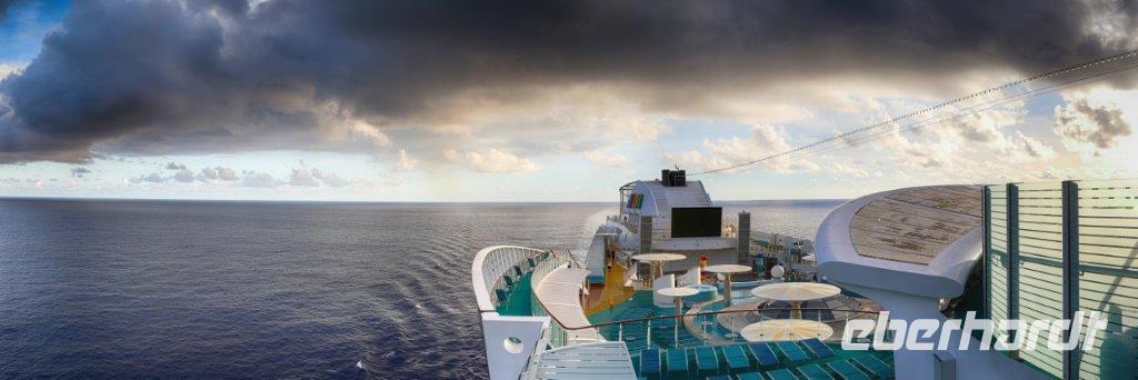Am Nachmittag habe Ich eine kleine Überrachung für unsere Gruppe organisiert. Zu jeder Kreuzfahrt gehört auch das wohl bekanntest Schiffsspiel - Und der guten alten Tradition wegen, spielen wir heute Shuffleboard. Die Gastgeberin Tini erklärt uns in die Spielregeln und teilt uns in zwei Teams (Rot und Blau) ein. Nach einer kurzen Proberunde geht es auch schon los. Der Eine hat zu viel Schwung, der Andere zu wenig und ab und an ladet der Puck auch mit ein bisschen Glück im Plus. Team BLAU war einfach besser :-). Doch leider müssen wir auch schon an die Abreise denken und deswegen treffen wir uns nach dem Spiel bei einem Gläschen Sekt & Häppchen auf Deck 12 in der Anytime Bar. Gemeinsam stoßen wir auf diese tolle Reise an! Am Abend genießen wir die Abschiedsfeier mit unseren Gastgebern und natürlich mit unserem Kaptiän Tönnies Kohrs bei einem Gläschen Sekt auf dem Pooldeck.
