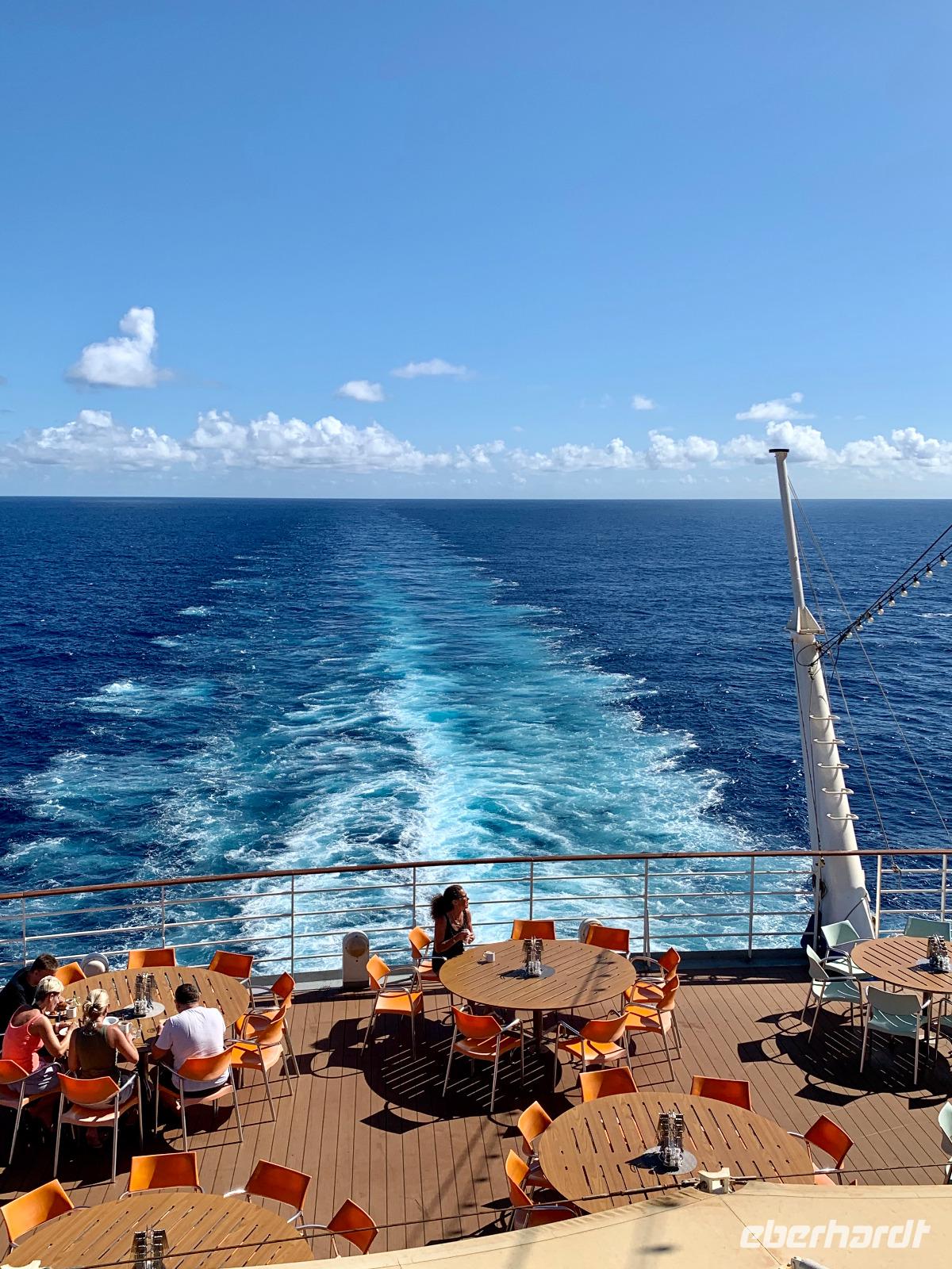 Später werden wir ganz leicht in den Schlaf gewiegt und verbringen die erste Nacht auf hoher und ruhiger See.
