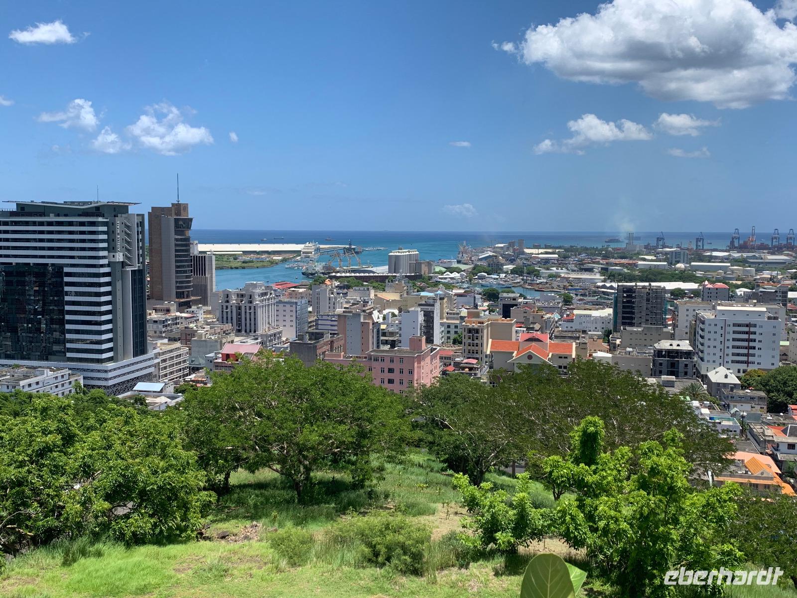 Wir fahren anschließend nach unten Richtung Stadtzentrum, vorbei an einem hübschen Hindu-Tempel, direkt zur Waterfront. Port Louis ist mit ca. 170.000 Einwohnern auch die größte Stadt des Landes.
