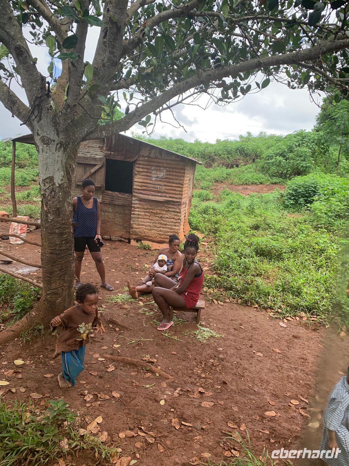 Weiter geht's zur ältesten Hängebrücke der Welt. 1894 wurde die 152 Meter lange und 80 Meter tiefe Pont Suspendu de la Rivière de l'Est gebaut. Wir sitzen nun wieder im Bus und es beginnt wieder zu regnen. Bisher haben wir das perfekte Timing und wechseln trockene Besichtigungen mit regnerischer Landschaftsfahrt ab.