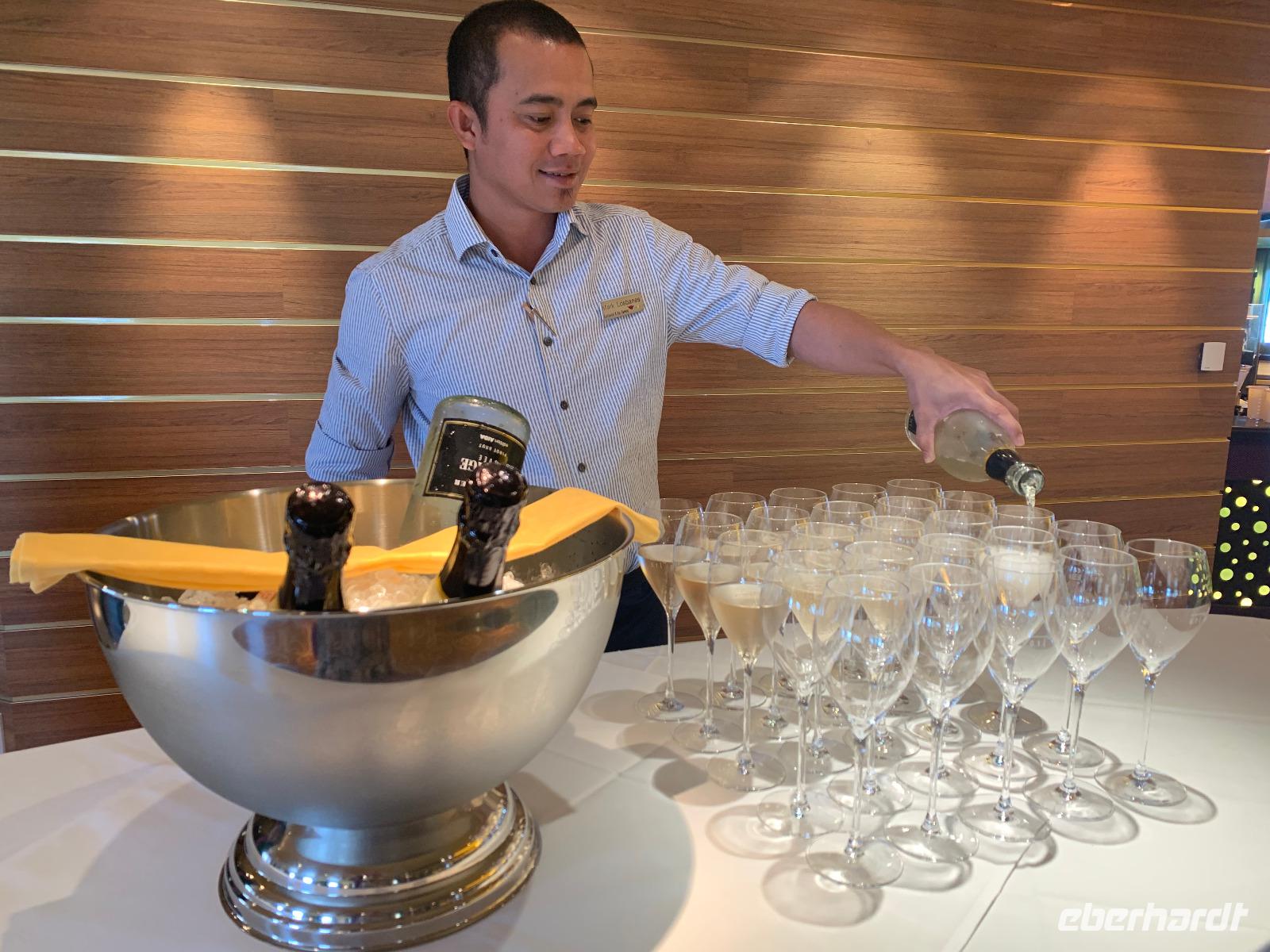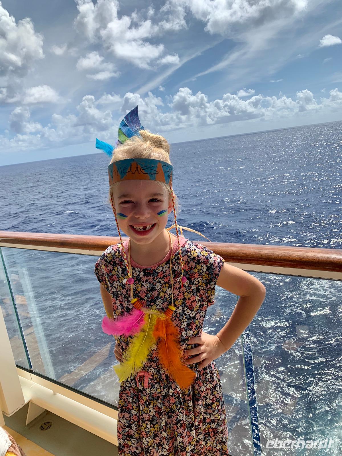 Nach dieser kleinen Erfrischung lassen wir uns nach der langen Anreise das heute asiatisch thematisierte Buffet im offenen Hauptrestaurant La Pomme d' Amour schmecken. Wer noch nicht zu müde ist, genießt noch das abendliche Unterhaltungsprogramm mit Meeresrauschen bei einem tropischen Absacker an einer der beiden Bars. Wir lassen den ersten Abend bei angenehmen Temperaturen um 24 Grad Celsius ausklingen und sind voller Vorfreude auf unser schwimmendes Hotel ab morgen ...