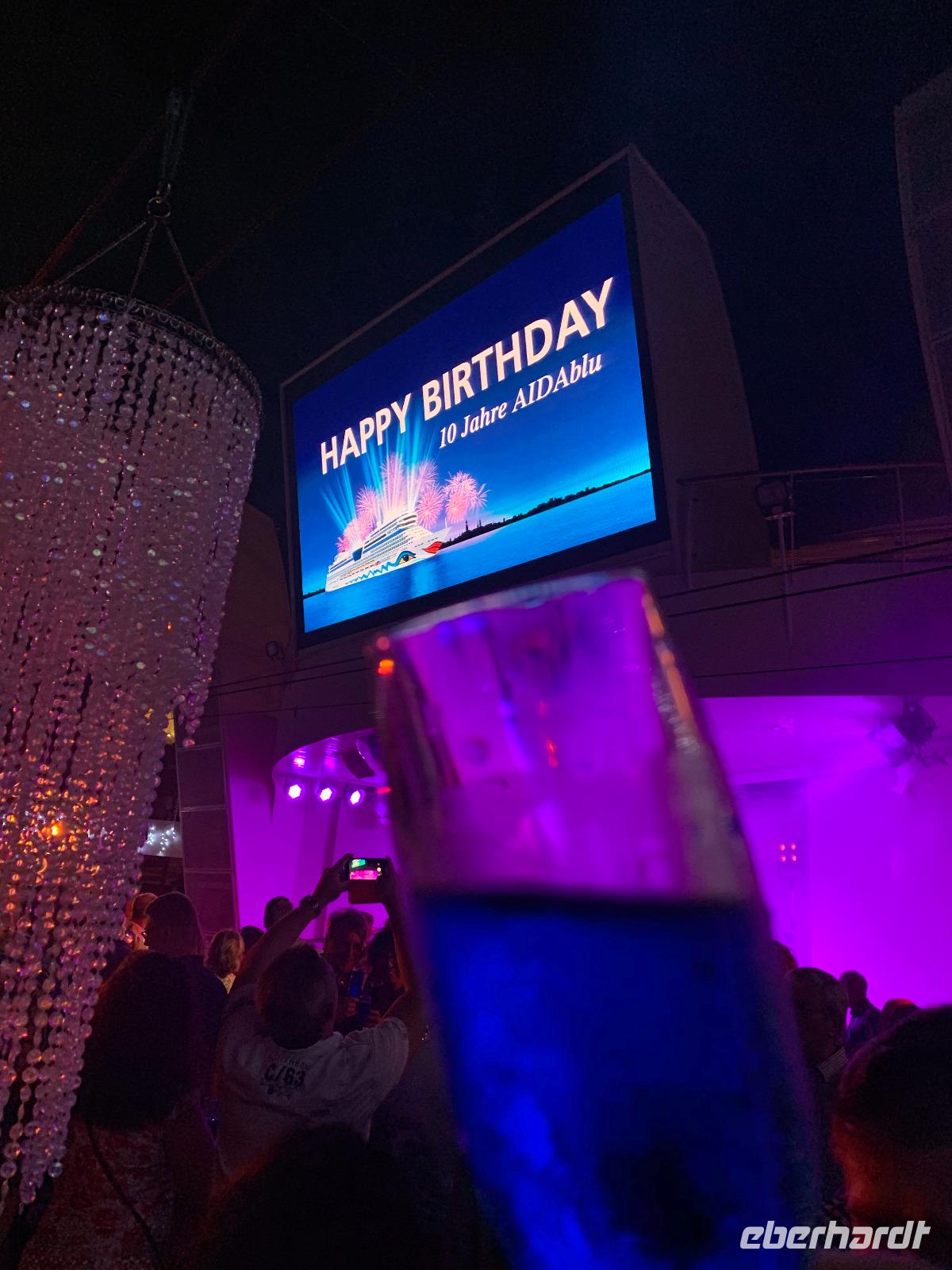 21.30 Uhr werden die neue angereisten Gäste vom Hotel Direktor und dem Entertainment Manager Andreas Schmidt auf dem Pooldeck herzlich an Bord von AIDAblu begrüßt. Wir erfahren, dass 2297 Gäste an Bord sind. Mit einem Gläschen Sekt stoßen wir heute erneut an und genießen danach die einzigartige Lasershow.