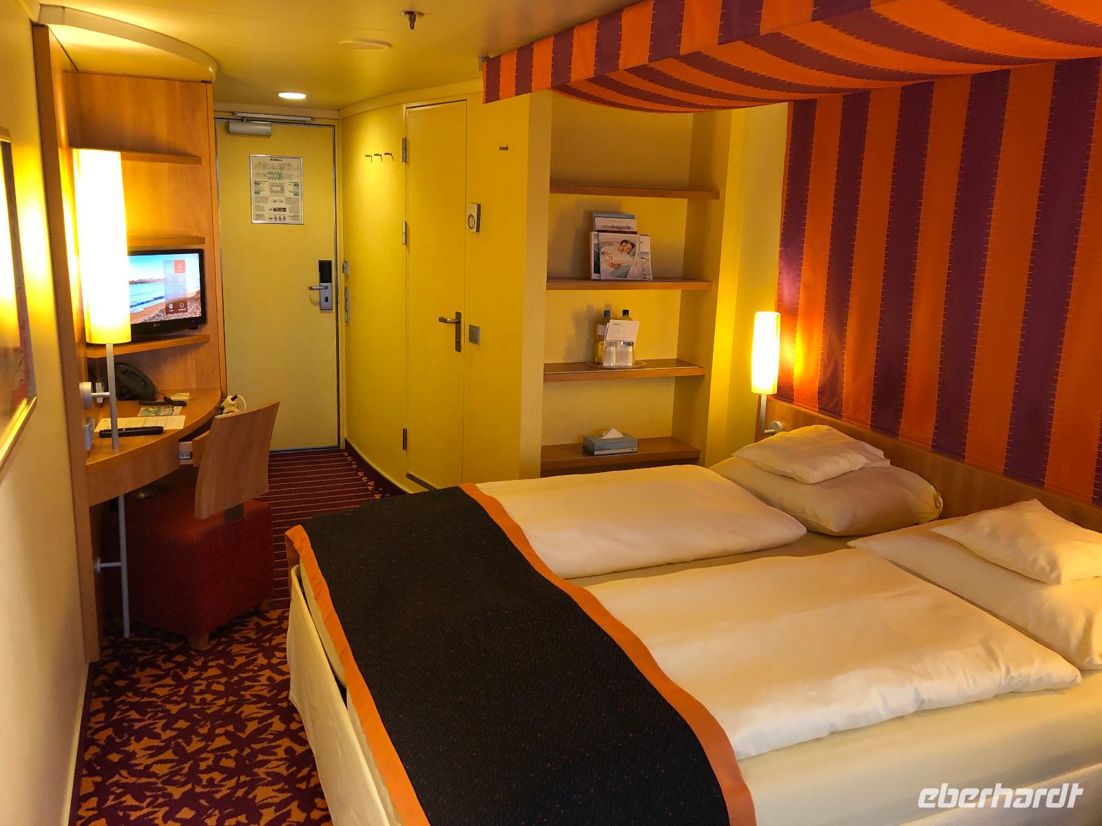 Nun fahren wir Richtung Norden und erreichen gegen 18.00 Uhr endlich unser schwimmendes Hotel für die nächsten zwei Wochen. Zunächst geben wir unsere Koffer ab. Bevor wir einchecken, füllen wir erneut den Gesundheitsfragebogen aus. Beim Check-In dürfen wir fürs digitale Foto auf unserer Bordkarte freundlich lächeln und erhalten diese auch kurz danach. Sogleich dürfen wir an Bord und beziehen sofort unsere Kabinen. Unsere Koffer werden recht zügig vom Personal direkt zur Kabine gebracht und dann ist es Zeit zum Auspacken und Ankommen. Bei einem ersten Rundgang bestaunen wir individuell unser neues Zuhause auf Zeit. Die AIDAblu gehört zu den Schiffen der Sphinx-Klasse mittlerer Größe und wurde 2010 in Dienst gestellt. Die Kussmund-Schönheit bietet Platz für maximal 2500 Passagiere auf insgesamt 14 Decks.