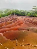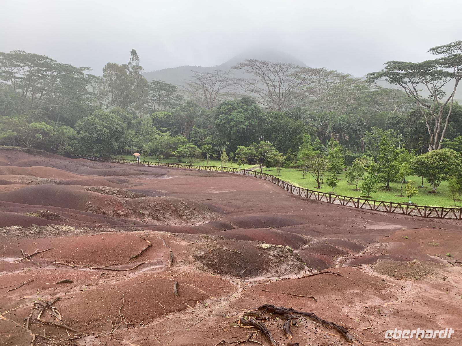 Vorletzte Station unseres Ausfluges ist der 90 Meter hohe Zwillingswasserfall Cascade Chamarel. Letzter Halt und eines der Wahrzeichen Mauritius ist der Besuch der siebenfarbigen Erden, die vulkanischen Ursprungs sind. Über einen Hektar erstrecken sich Bodenwellen in sieben Farben, die je nach Sonneneinstrahlung in den verschiedensten Farbtönen leuchten. Selbst bei dem heutigen trüben Wetter halten wir eindrucksvolle Bilder dieses Naturphänomens fest.