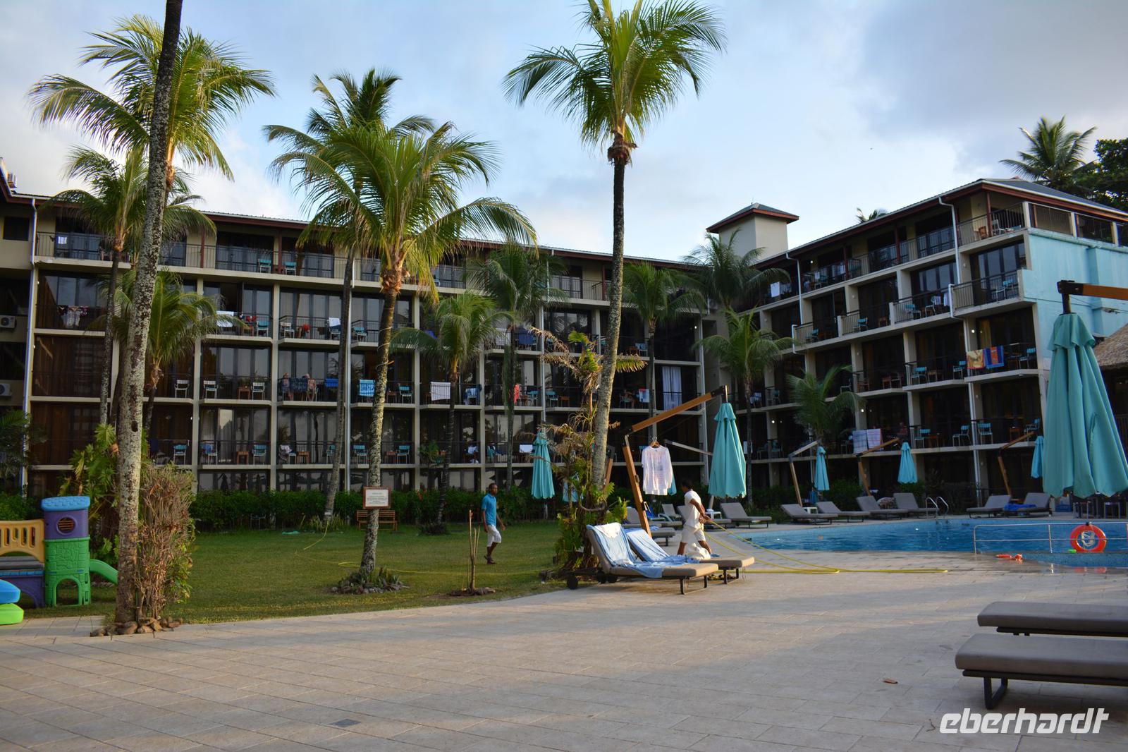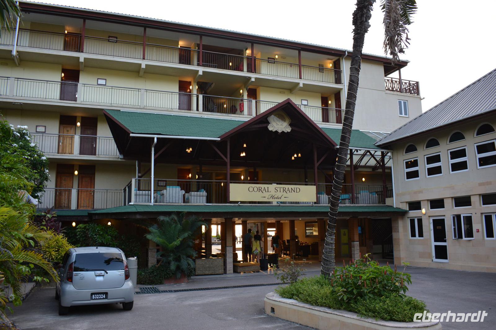 Da alle noch müde vom langen Flug sind und wir uns erst an das Klima gewöhnen müssen, sind wir bereits am frühen Nachmittag unserem „Coral Strand Hotel". Dieses liegt direkt am Beau Vallon Strand und wir nutzen den restlichen Tag im Schlaf nachzuholen oder ins Meer zu springen. Am Abend werden wir mit einem leckeren asiatischen Buffet verwöhnt.
