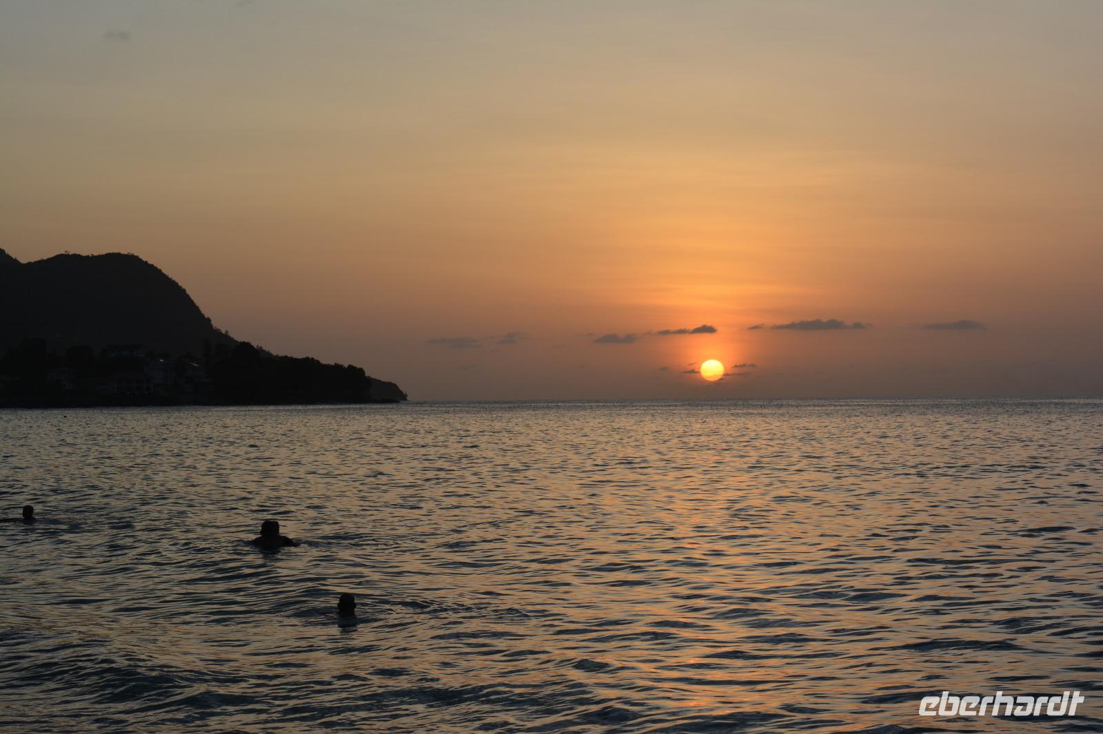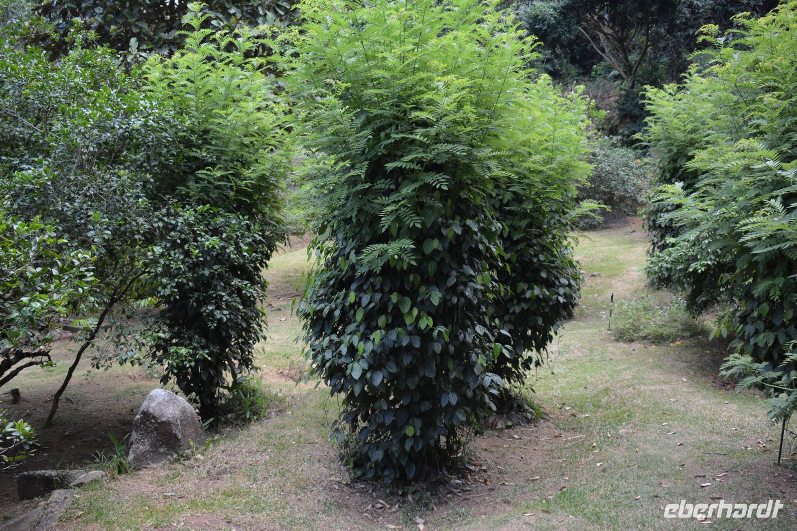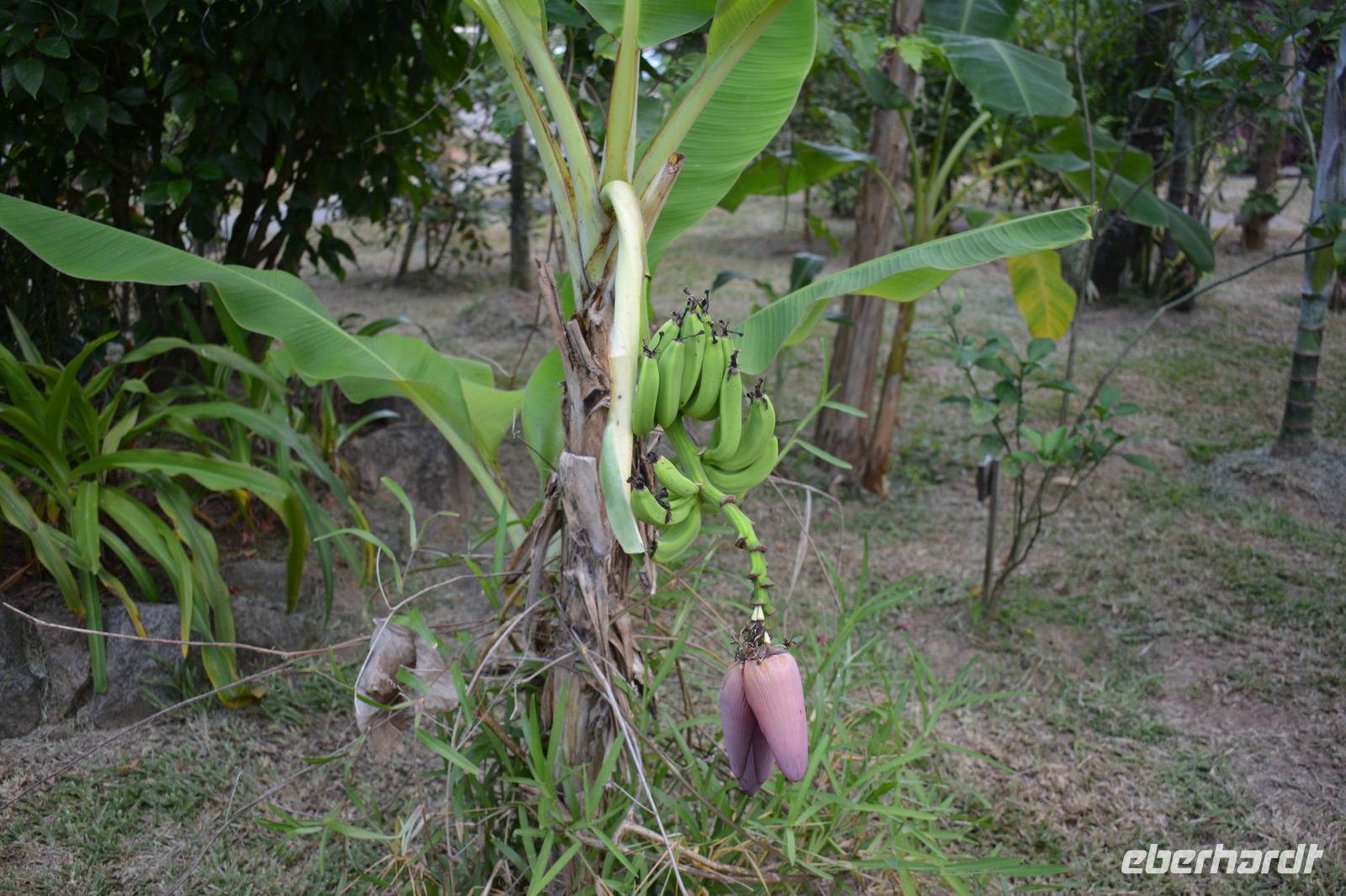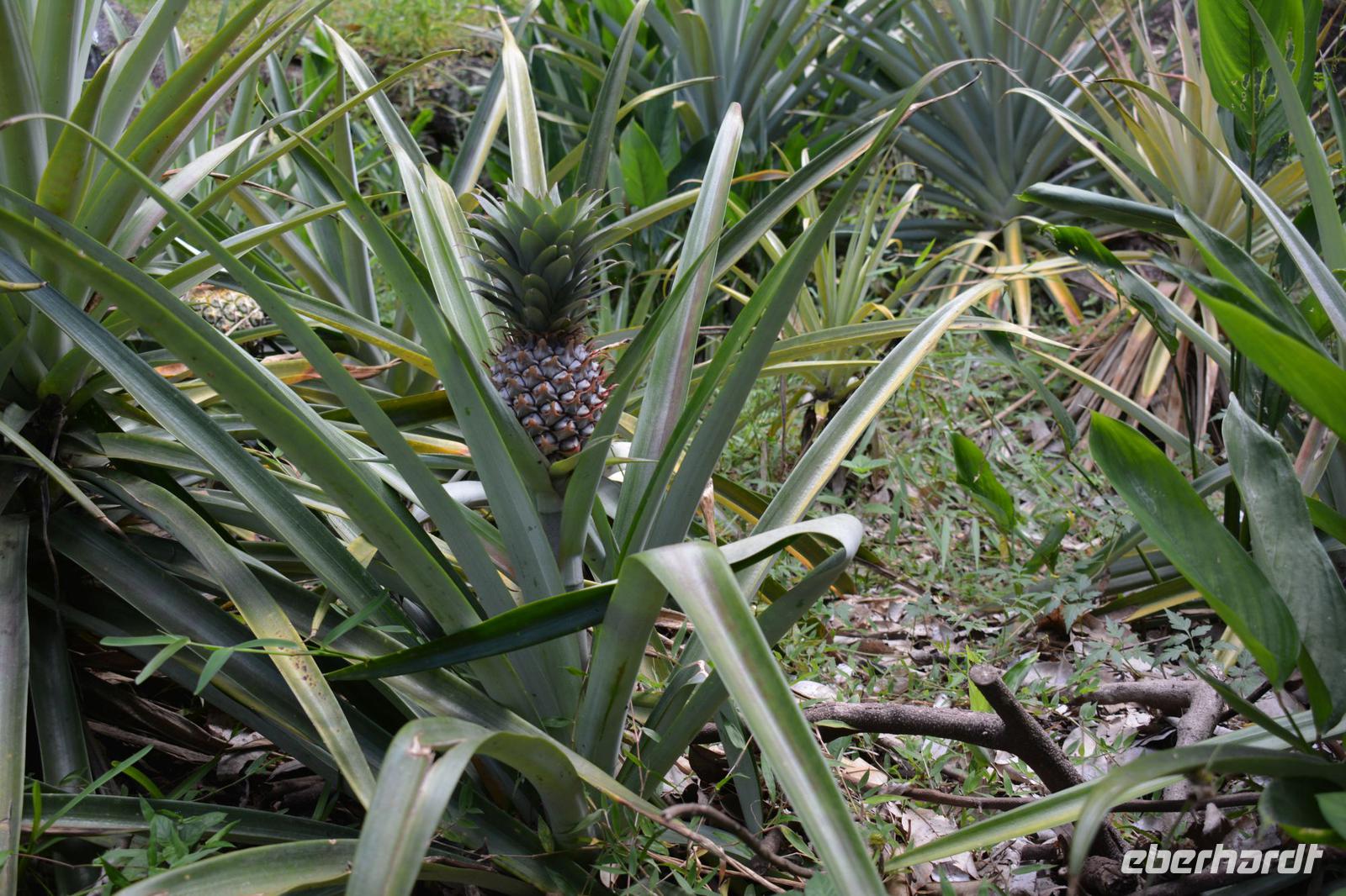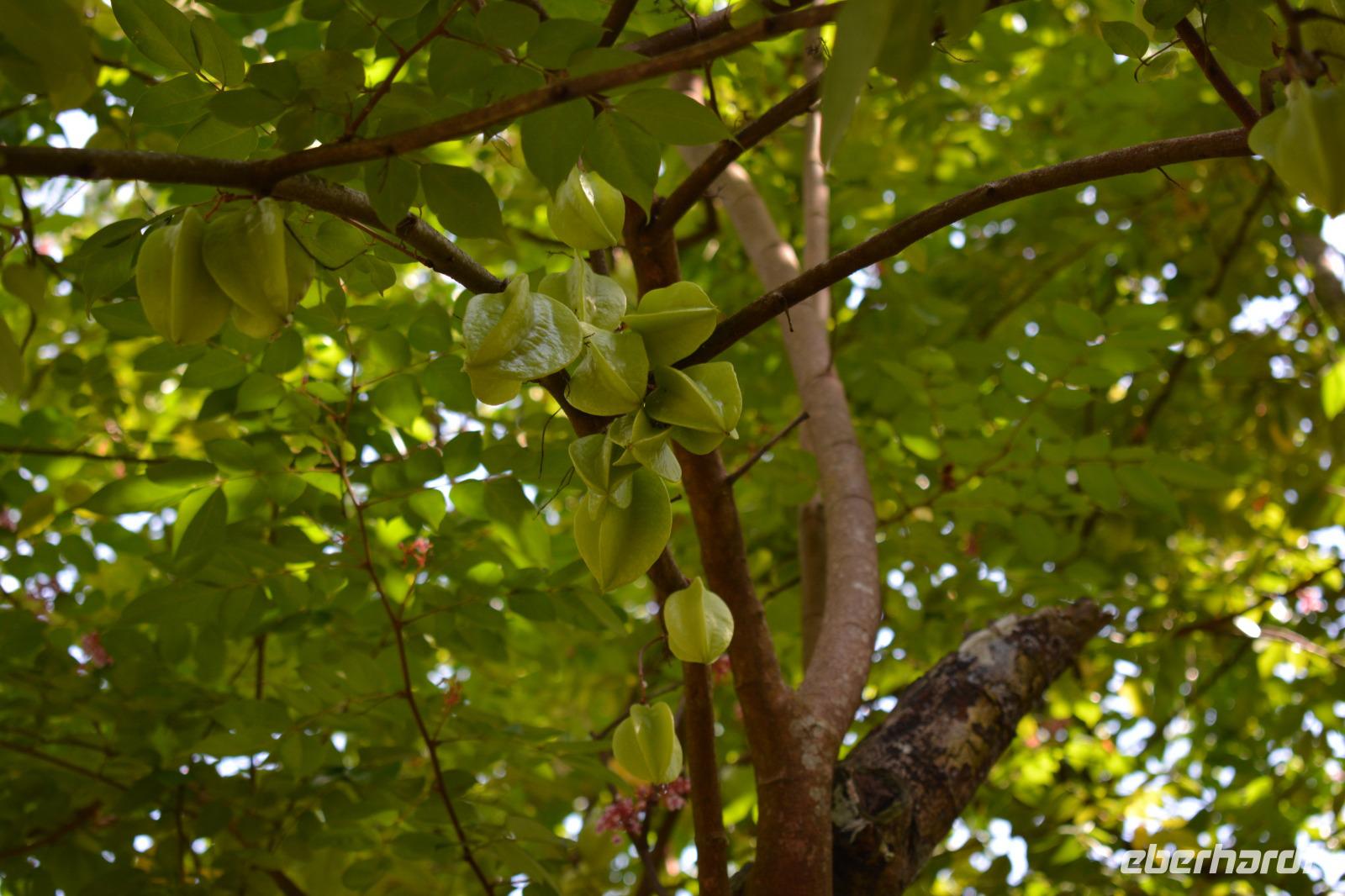 Cyril führt uns durch den Garten. Über Stock und Stein und querfeldein, zeigt er uns die verschiedensten Gewürze, welche für die Einwohner hier früher auch als Medizin genutzt wurden. So sehen und riechen wir an diesem Tag: Kakao, Muskatnuss, frische Nelken, Zimt, usw.