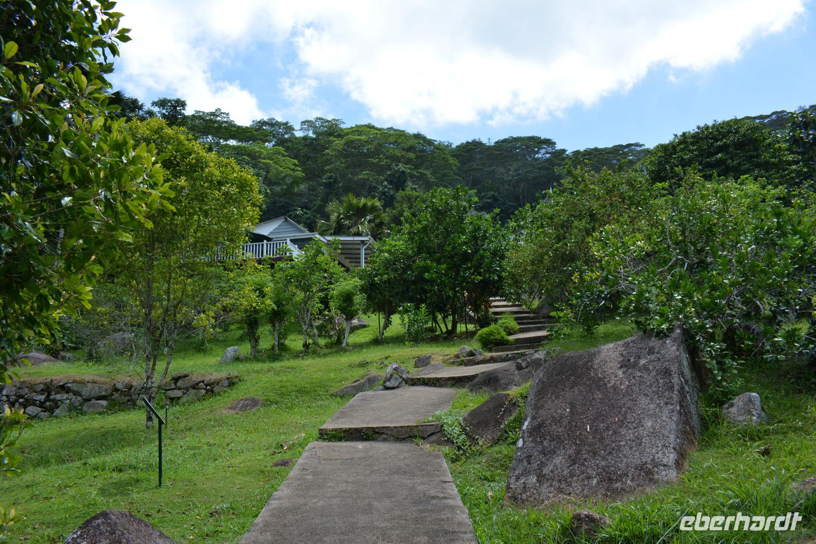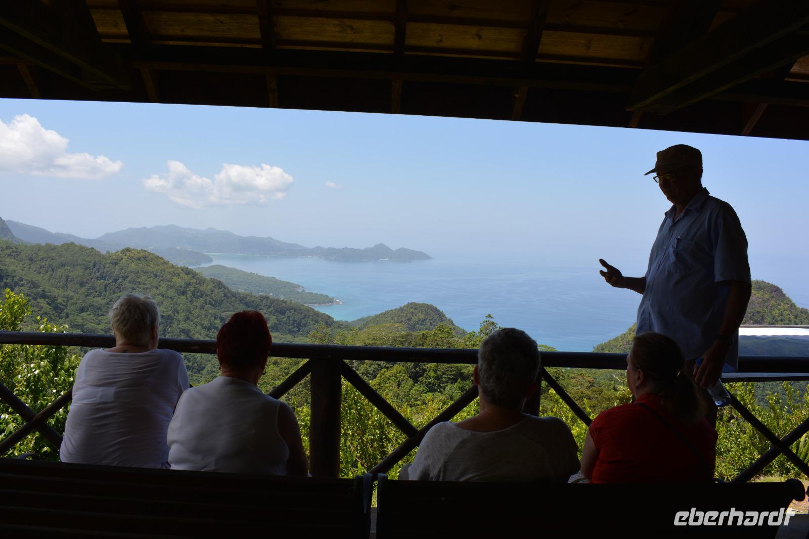 Unser nächster Stopp ist die Mission Lodge sehr zentral auf der Insel. Hierher flohen die Sklaven in der Zeit als die Seychellen noch englische Kolonie waren. Sie bauten sich hier ihr eigenes Leben auf und treiben wohl heute noch, in der Dunkelheit, ihr Unwesen, wenn Sie gestört werden. Außerdem hat man von hier einen wunderschönen Ausblick auf die Insel, den bereits Queen Elizabeth in den 70er Jahren genoss.