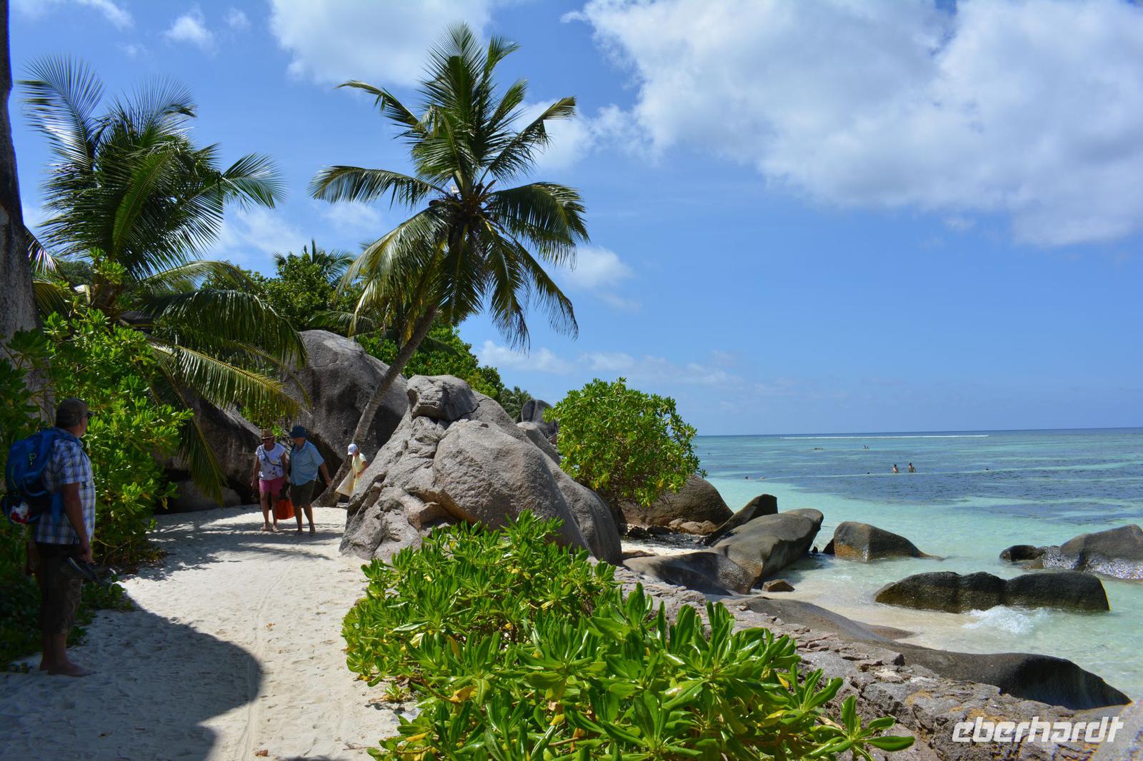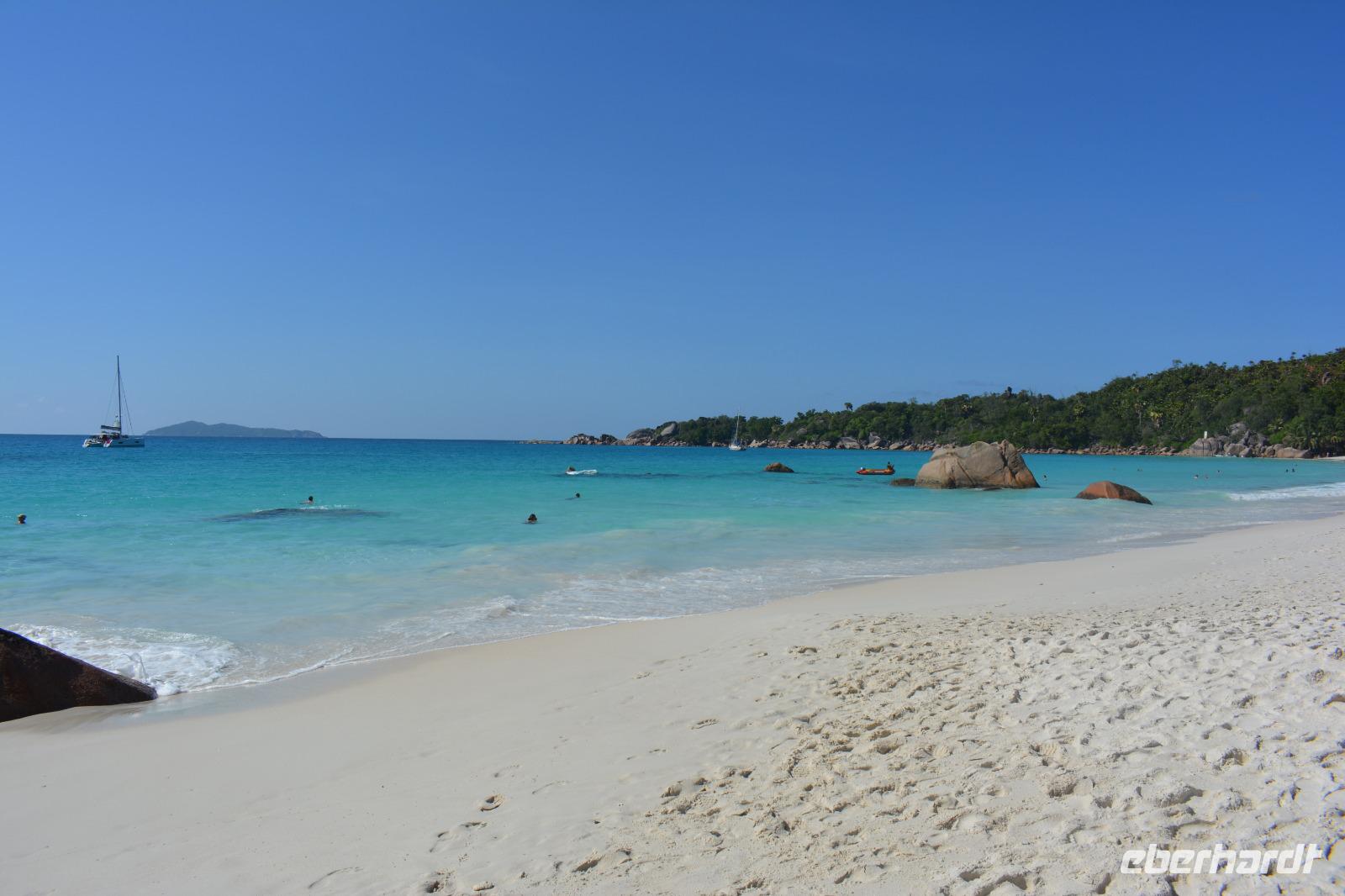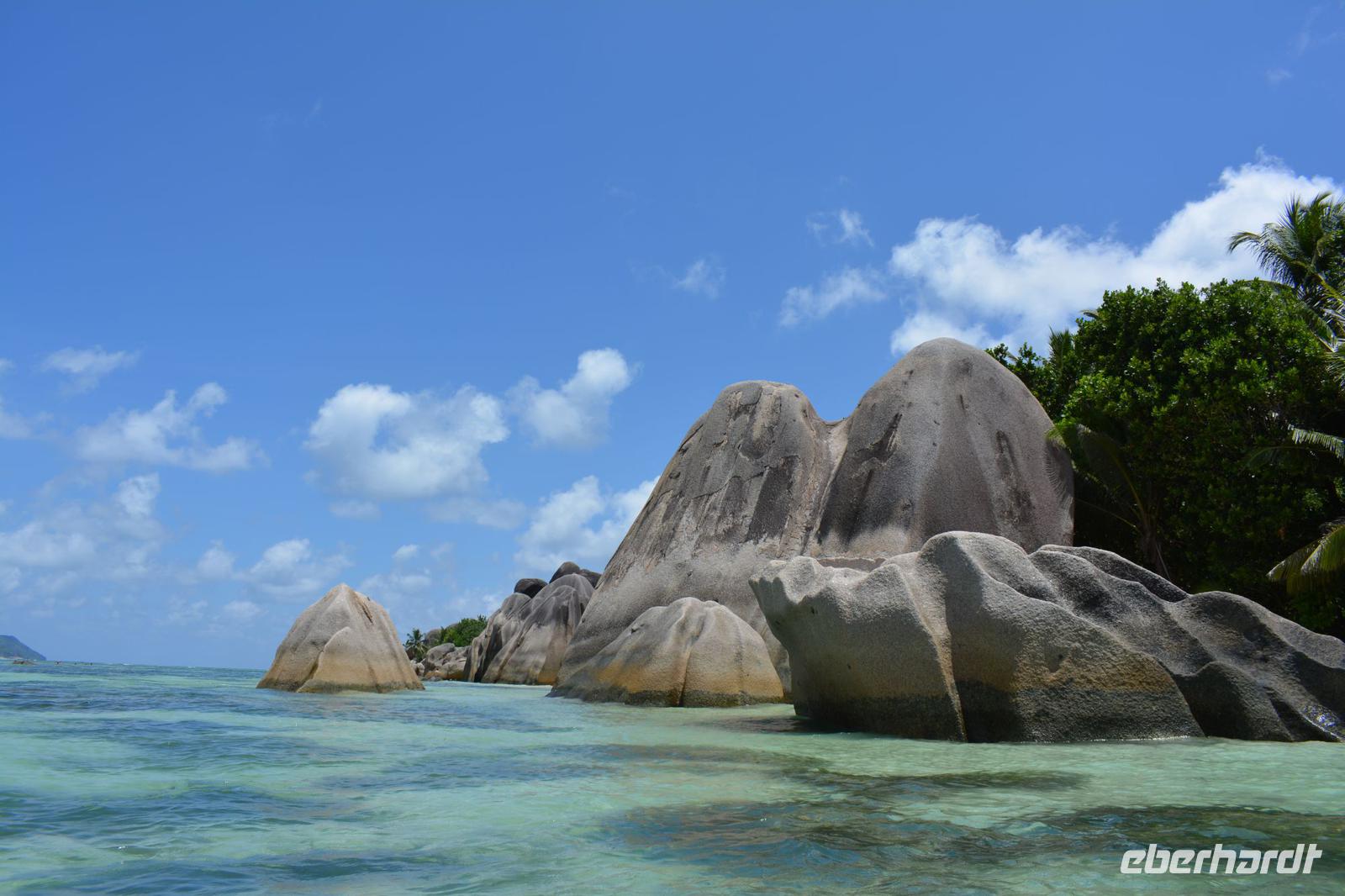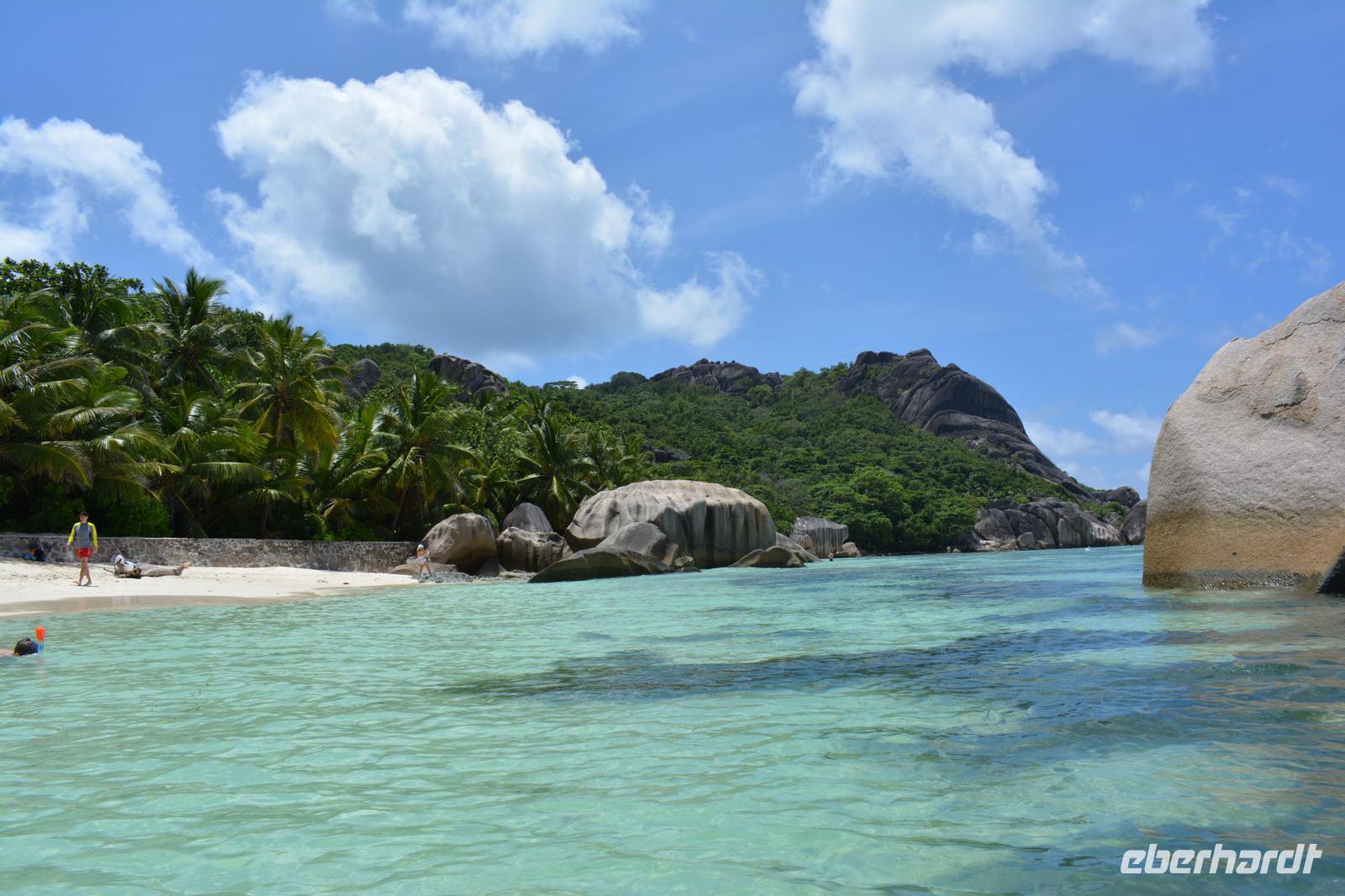Bis zum Mittag genießen wir ein erfrischendes Bad am berühmten Anse Source d'Argent, tolle Granitfelsformationen bestimmen hier das Bild.