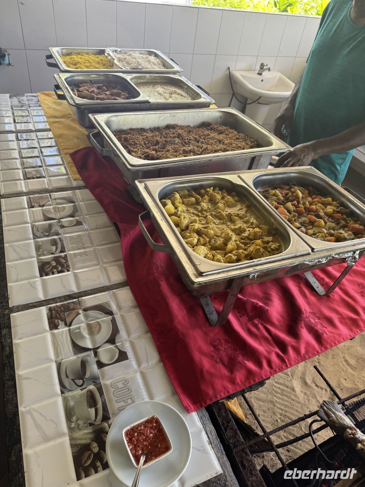 Wie auch bei uns, wird der Tag vor dem Feiertag oft für lange Abende genutzt. So wird unser Abendessen vom Hotel an den Strand verlegt. Es gibt ein großes Buffet mit kreolischen Spezialitäten, Tanz und Gesang. Mit den Füßen im Sand und dem Wellenrauschen lassen wir den Abend ausklingen.