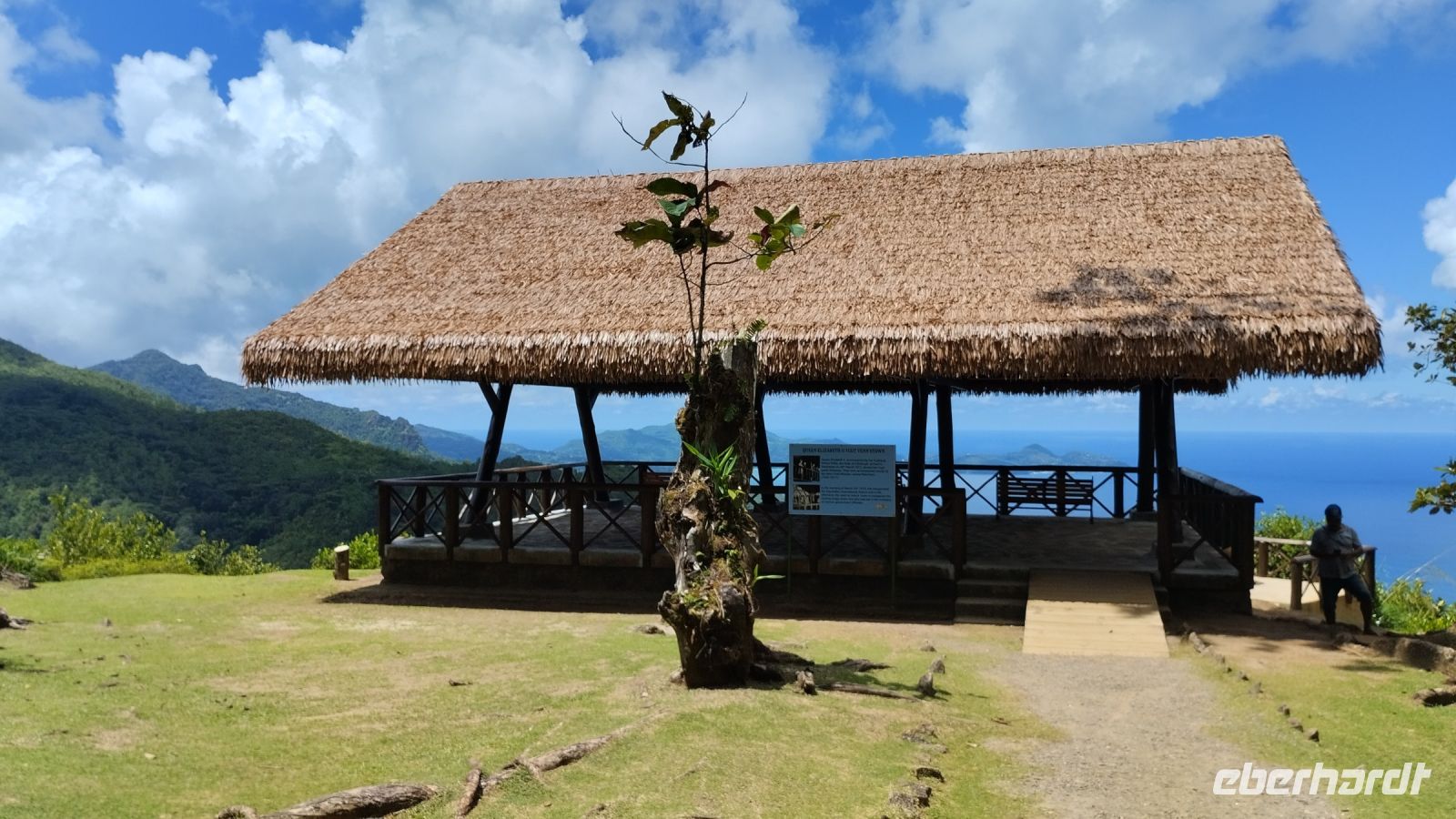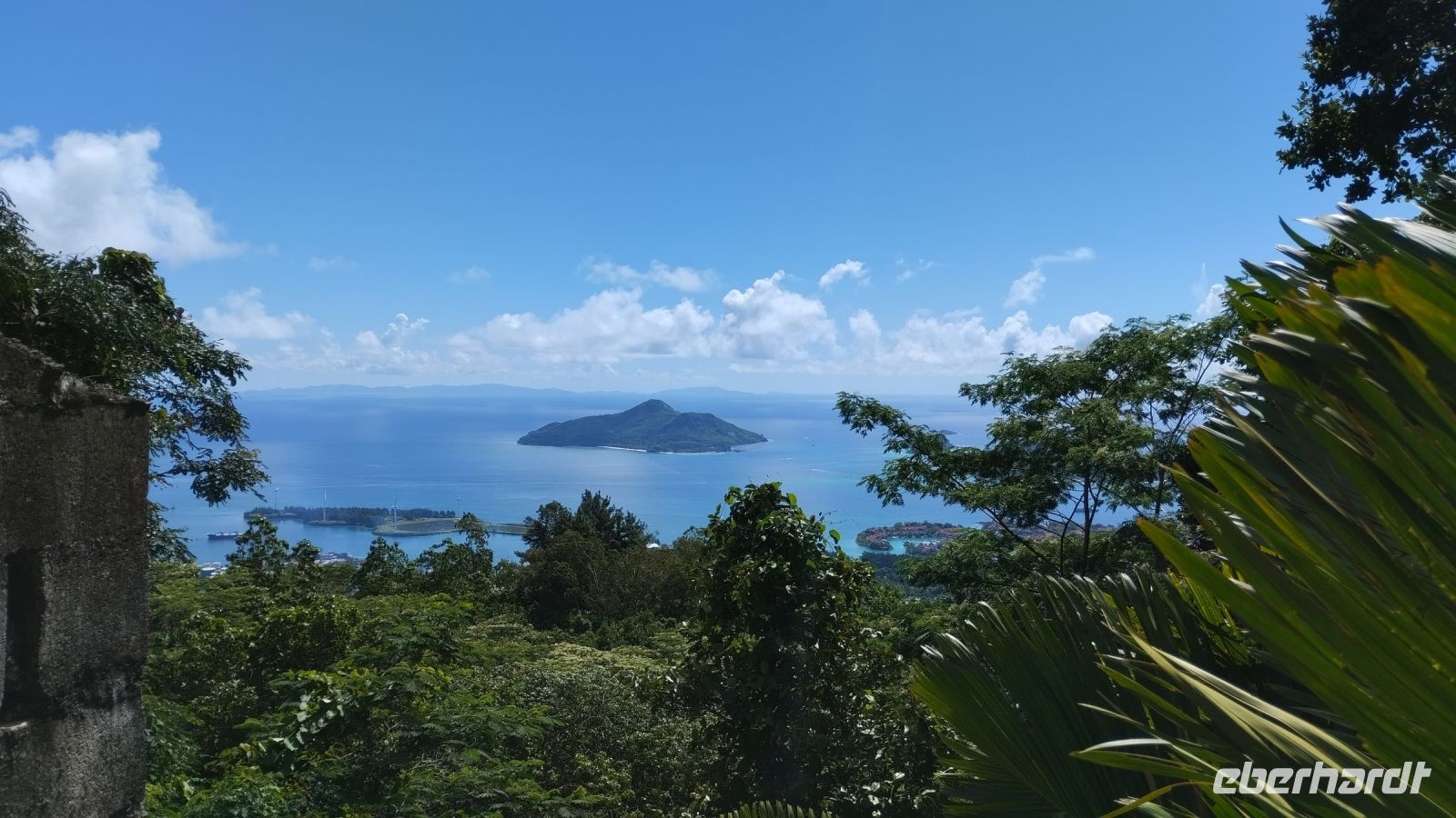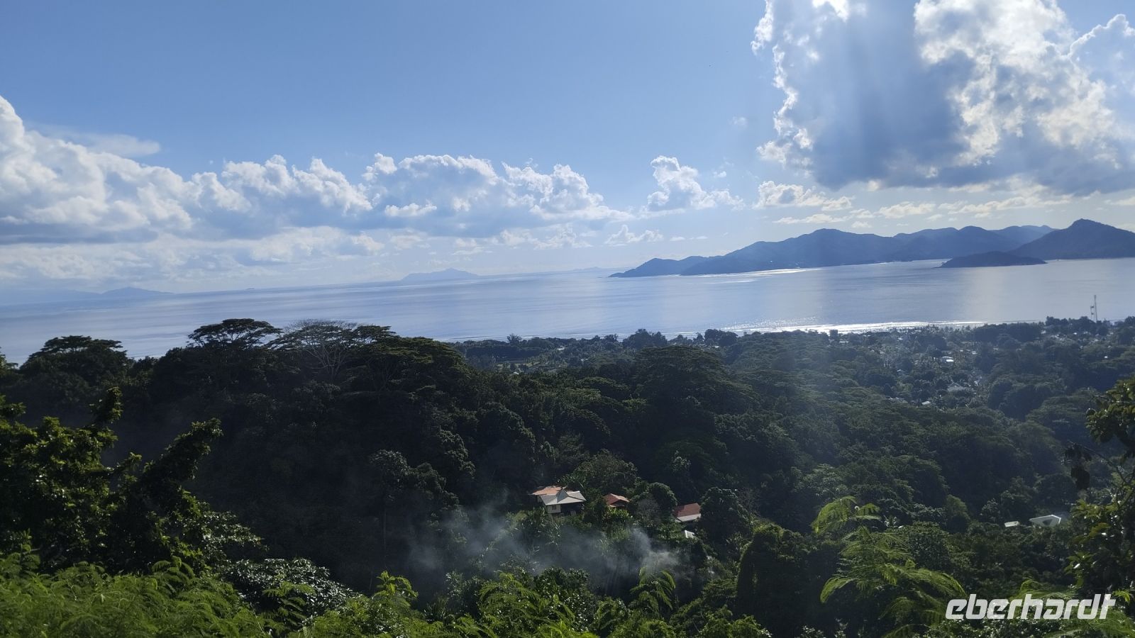 Ausgeschlafen und gut gestärkt geht es jetzt mit ein paar kurzen Stopps zur Mission Lodge auf Mahe. Einst lebten hier die Sklaven. Von hier hat man eine wunderschöne Aussicht. Cyril zeigt uns die frisch abgemachte Zimtrinde sowie die Blätter des Zimtbaumes und lässt uns daran riechen. Hier im Schatten der großgewachsenen Bäume folgen wir auch seinen anderen botanischen Erklärungen. Patrick, unser Busfahrer, fährt uns sicher und souverän durch die engen Kurven. Unterwegs erblicken wir auch den höchsten Berg der Insel Mahe, den vom Regenwald bedeckten Morne Seychellois (905 Meter).