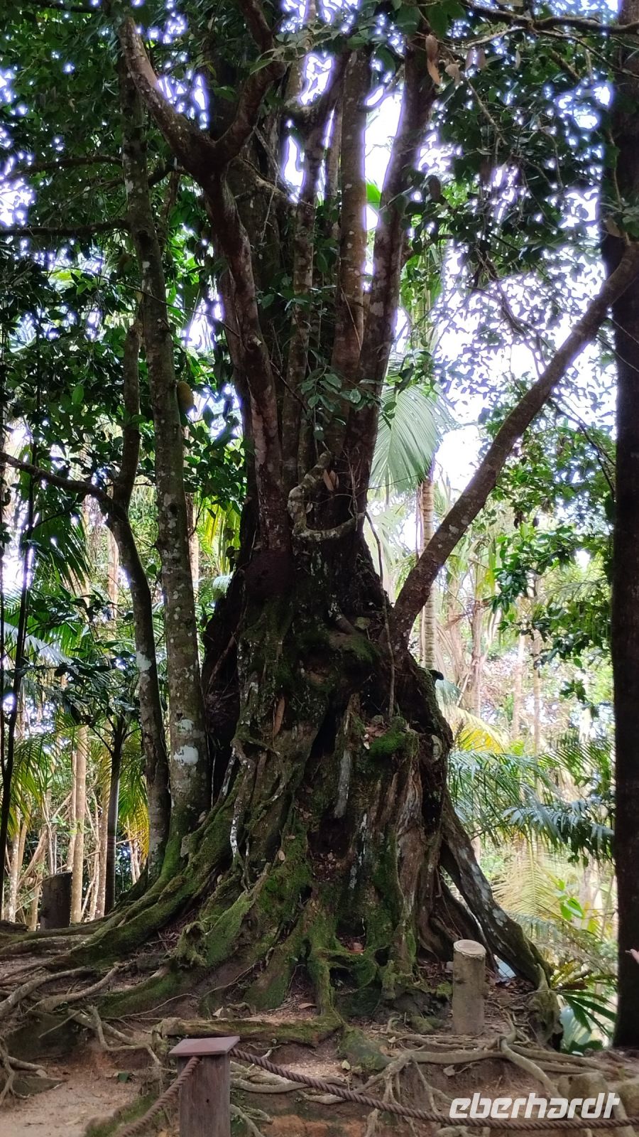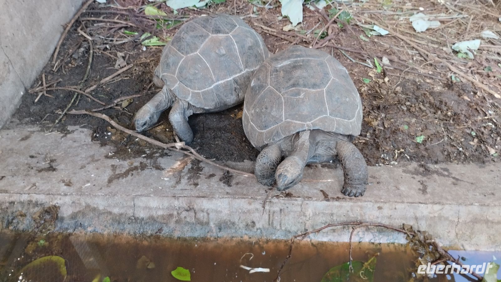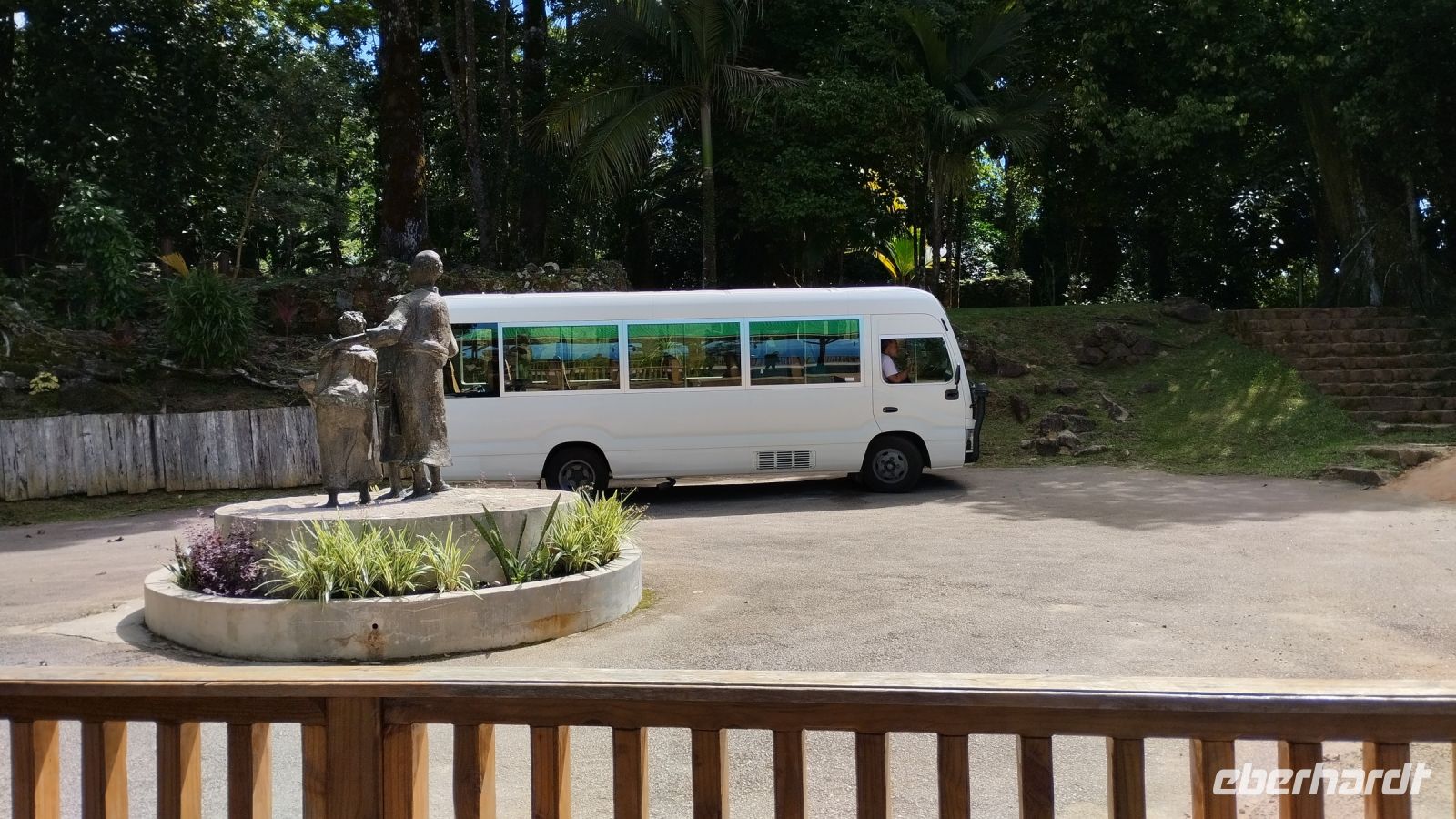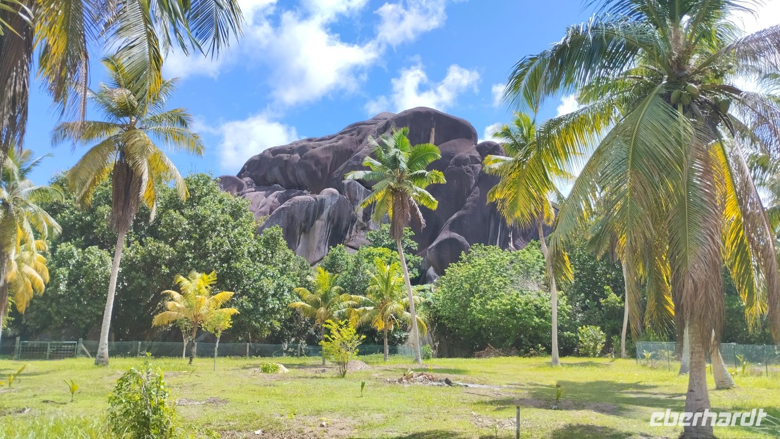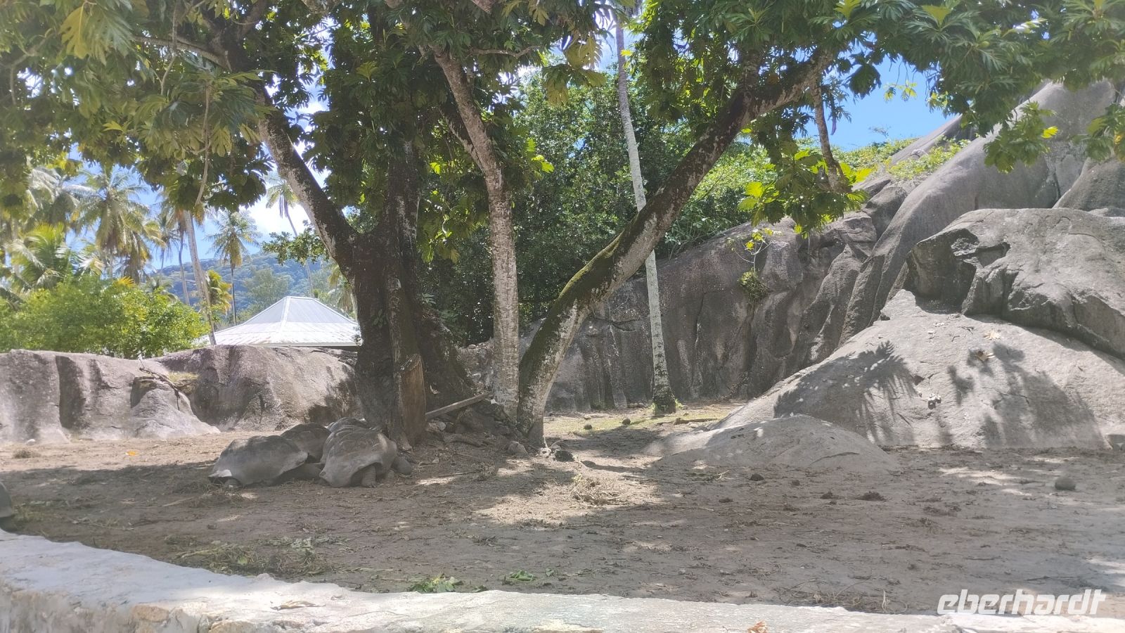 Danach fahren wir direkt zum Mittagessen am Hafen, wo wir später die Fähre nach La Digue nehmen werden. Doch zuerst steht noch der Besuch des Botanischen Gartens an. Zum ersten Mal erblicken wir die endemische Seychellenpalme mit den größten Samen in der Pflanzenwelt. Später sehen wir noch viel mehr Exemplare auf Praslin. Faszinierend sind auch die Landschildkröten, die uns hier zum ersten Mal begegnen.
