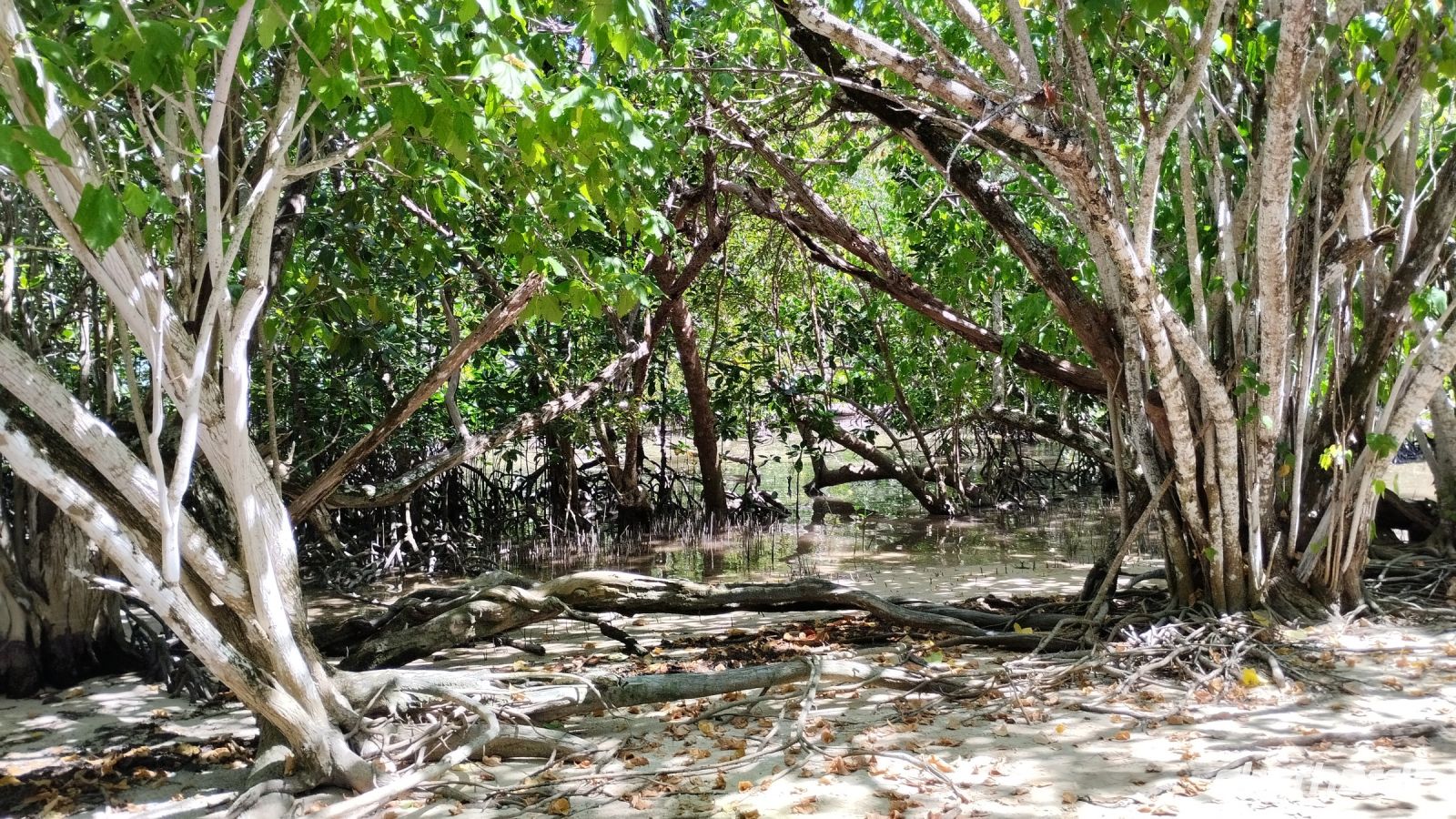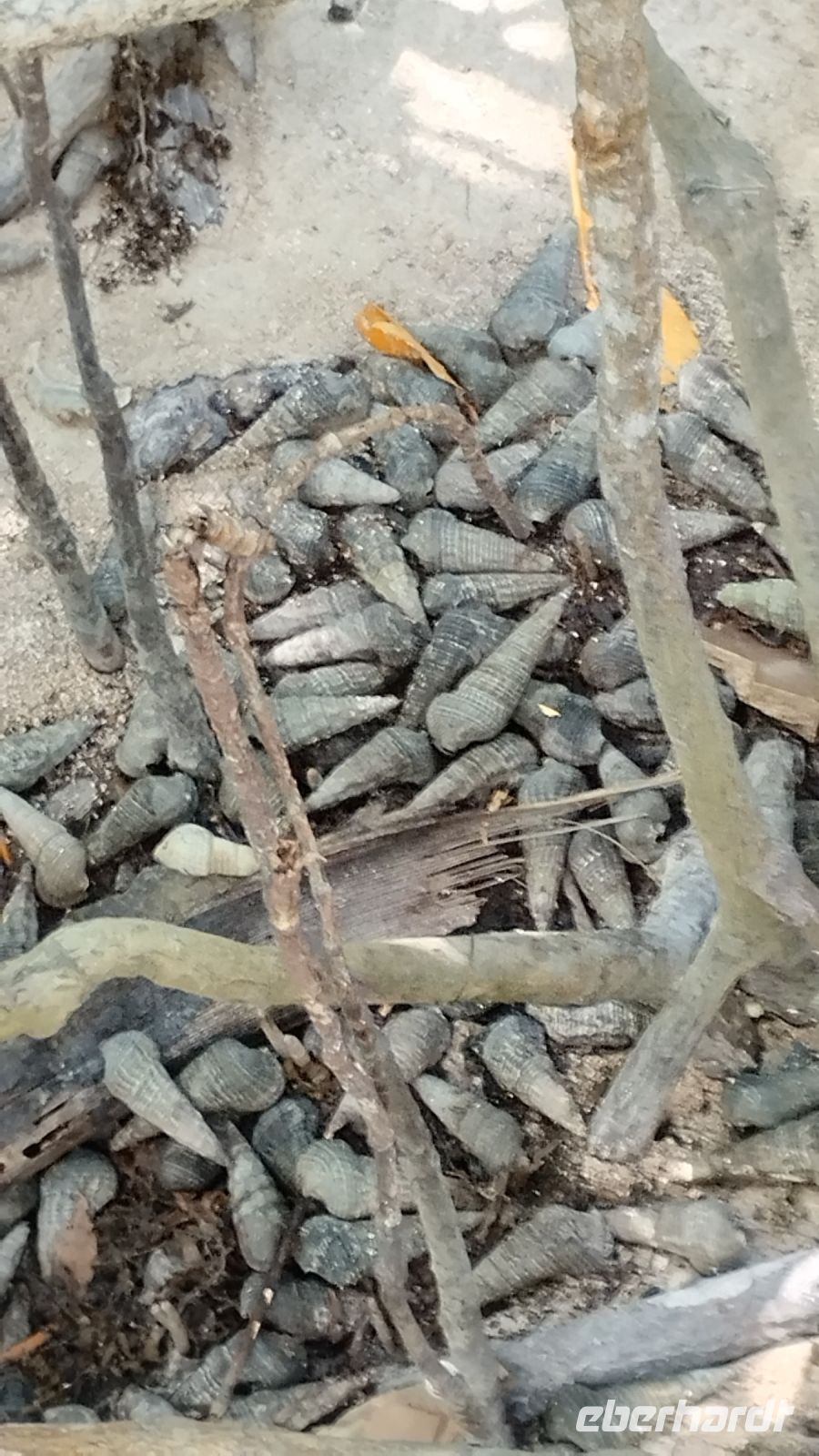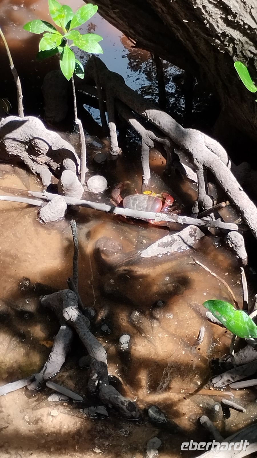 Anschließend machen wir eine einstündige Wanderung an den Mangrovenbäumen vorbei mit tollen Aussichten. Als wir am anderen Strand ankommen, können wir leider nicht schwimmen. Dafür sehen wir viele kleine und erwachsene Schildkröten.