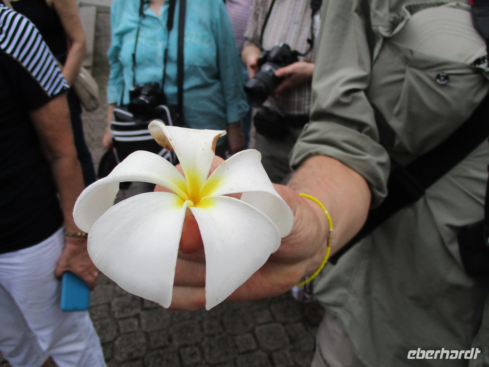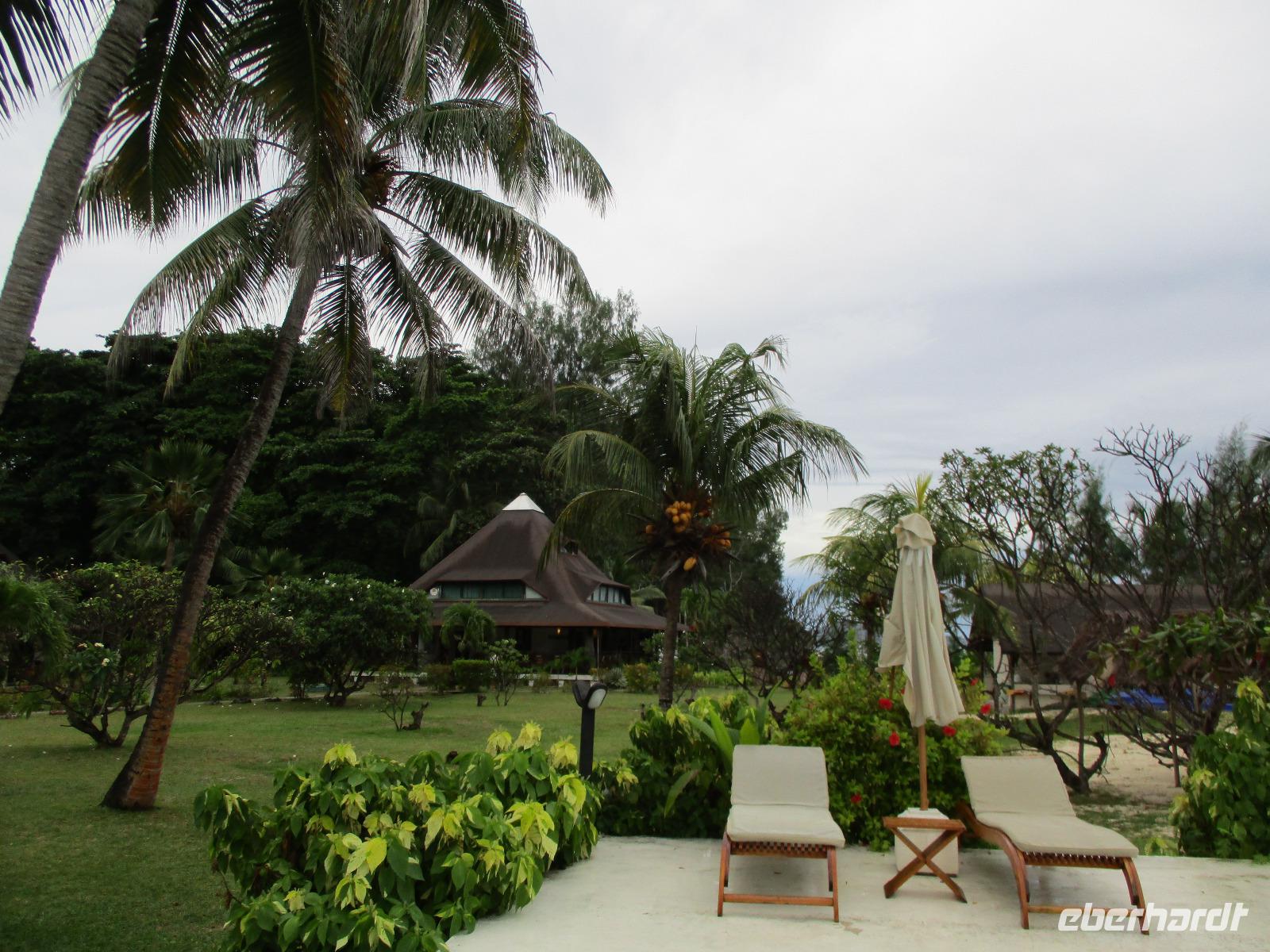 Der heutige Tag stand uns zur freien Verfügung. Wir ruhten aus und genossen Sonne, Strand und Meer. Nachmittags 17:00 Uhr wird hier täglich zum Tee geladen. Das heißt, man bekommt kostenlos Kaffee, Tee und Eistee, dazu ein kleiner süßer Snack wie Kuchen und Kekse. Wir haben die Teestunde nahezu täglich genutzt, um uns als Gruppe zu treffen, wer dazu Lust und Zeit hatte. Heute gab es noch eine Führung durch die Gartenanlage des Hotels. Der Biologe der Anlage erklärte uns viele interessante Details über die hier wachsenden Pflanzen wie Kokospalmen oder die Indische Mandel.