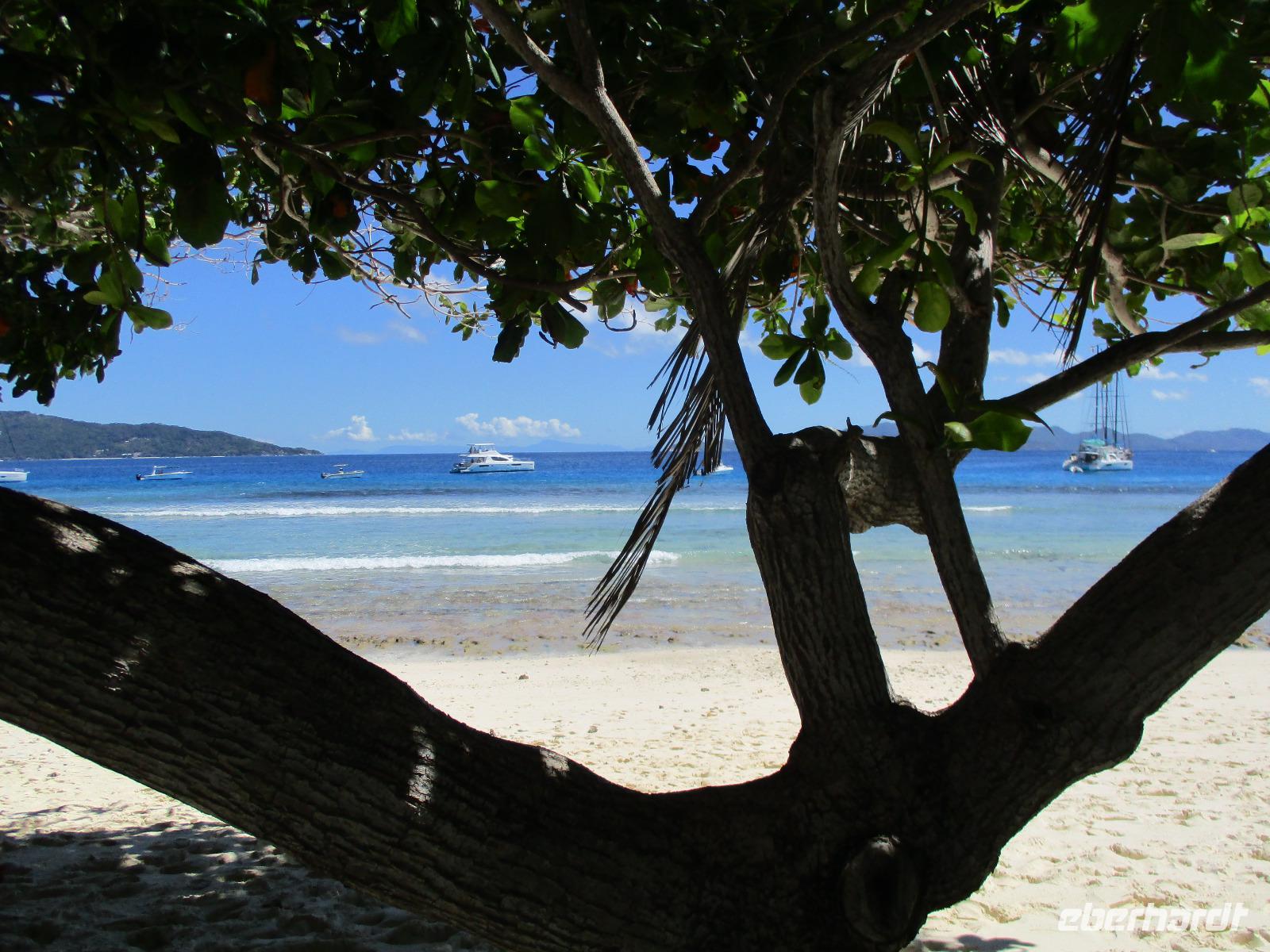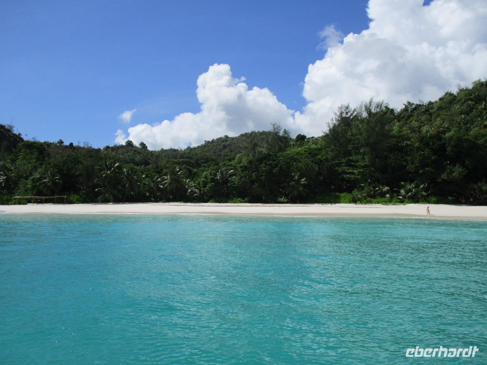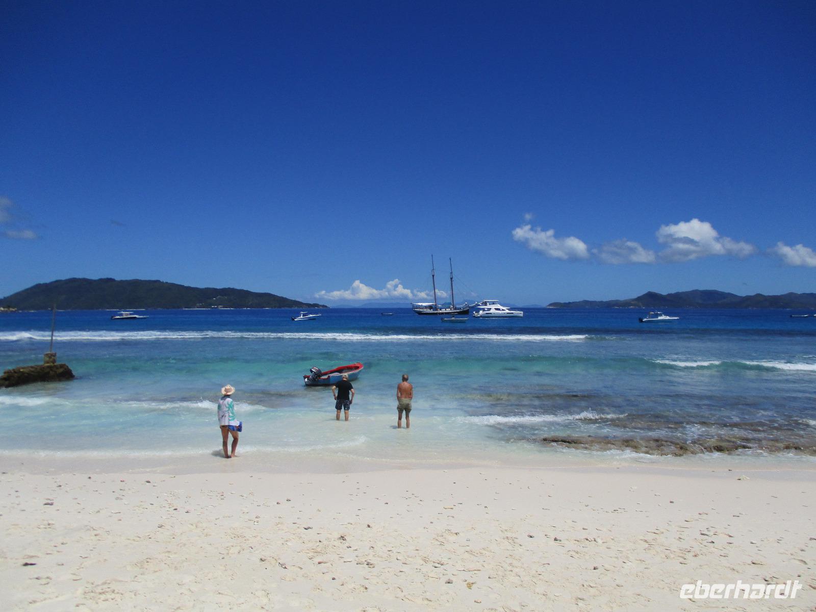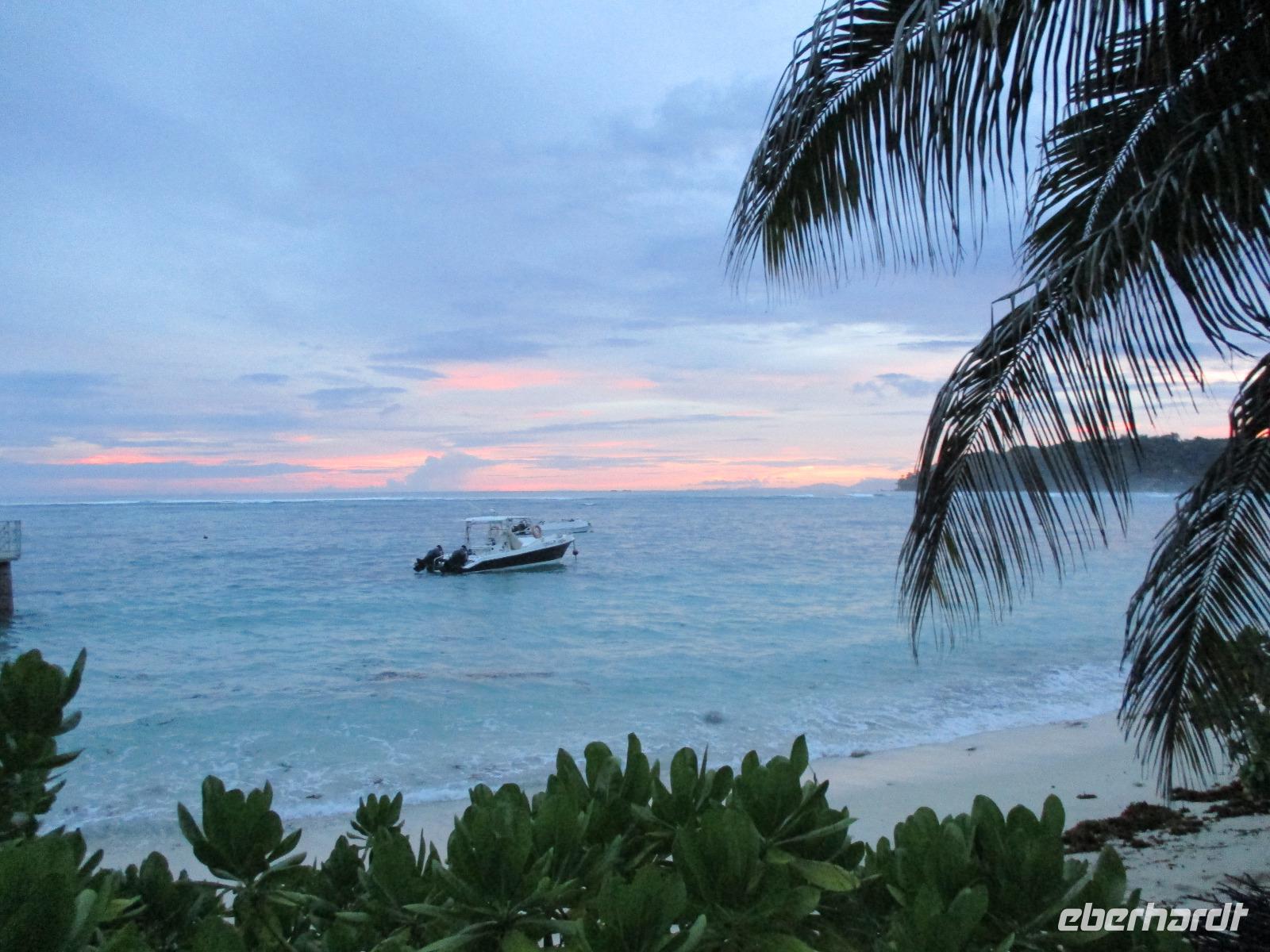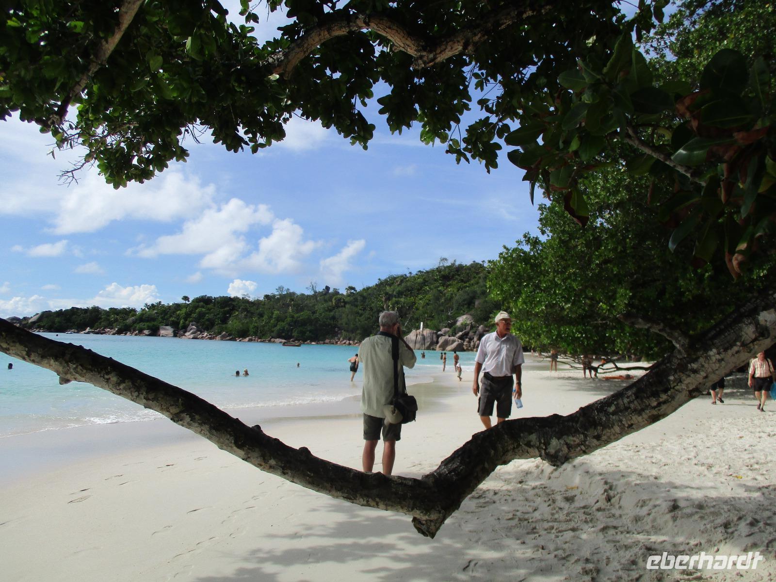 Für die meisten Gäste unserer Gruppe stand heute ein Tag Freizeit im Hotel auf dem Programm. Und diese wurde genutzt zum Baden, Sonnen, Schnorcheln, Spazierengehen oder Ausruhen im Schatten oder am Strand. Für einige von uns hieß es aber heute auch, Abschied zu nehmen von einem Traumhotel und einer netten Reisegruppe. Weil sie bis zum Nachmittag in ihren Zimmern bleiben konnten, hatten sie auch die Gelegenheit, die Annehmlichkeiten des Hotels und vom Strand in vollem Umfang zu nutzen. Am späten Nachmittag mussten sie aber schließlich das Hotelboot zum Praslin Jetty besteigen, um die Heimreise nach Deutschland anzutreten. Wohl schweren Herzens fügten sie sich darin, auch der Himmel schien die Sache so zu sehen, denn gerade jetzt ging ein heftiger Wolkenbruch herunter. Trotz des Regens ging alles gut und die drei Gäste erreichten wohlbehalten mit der Fähre die Hauptinsel Mahé. Cyrill holte sie ab und begleitete sie zum Flughafen, um hier die Maschine der Condor am späten Abend zu nehmen. Sie flogen nach Frankfurt und von dort aus zu weiteren Flughäfen in Deutschland, von wo sie schließlich nach Hause fuhren. Es war eine schöne Zeit mit der ganzen Gruppe, aber die verbliebenen Gäste freuten sich auf weitere schöne Tage im Inselparadies.