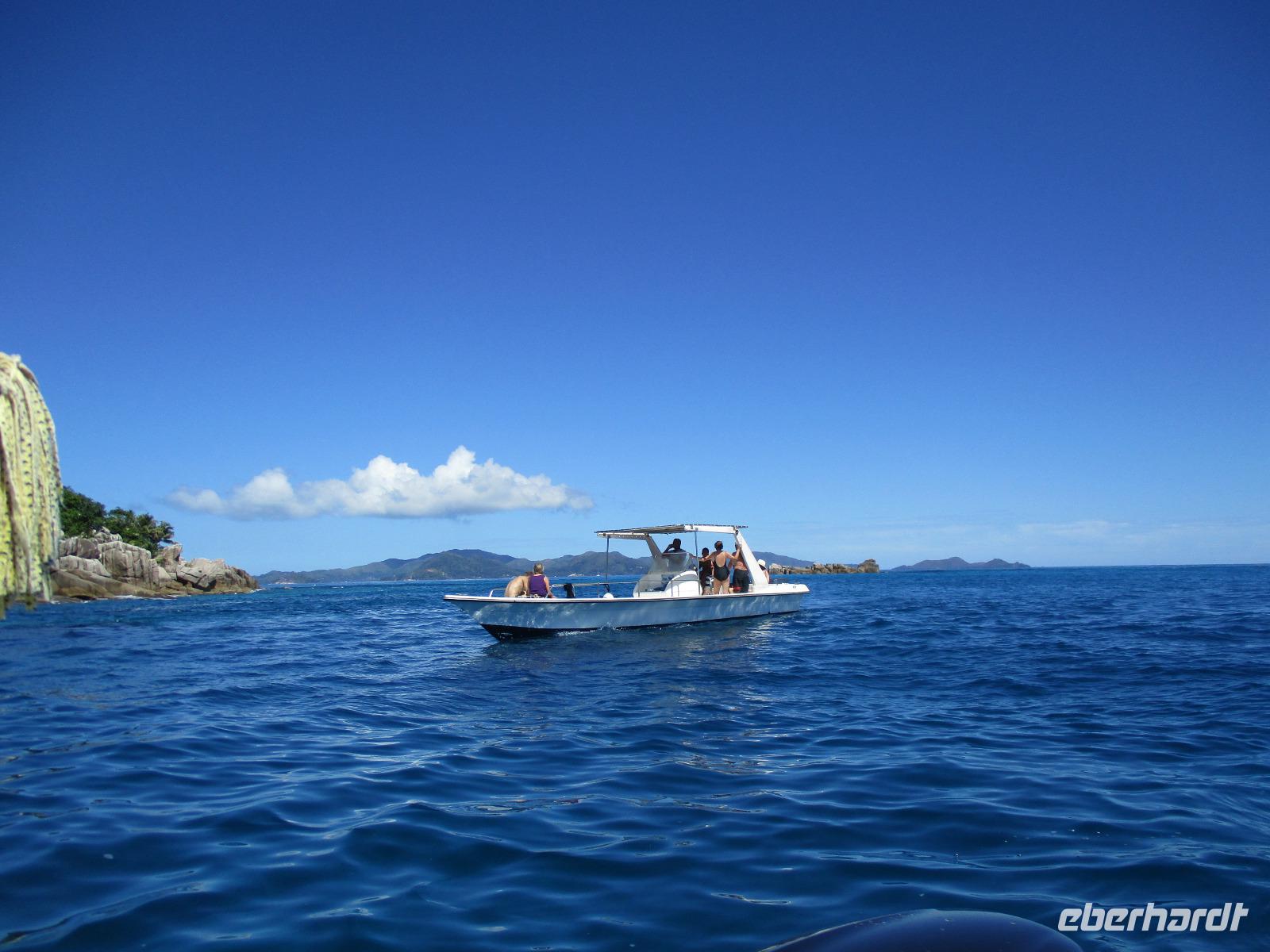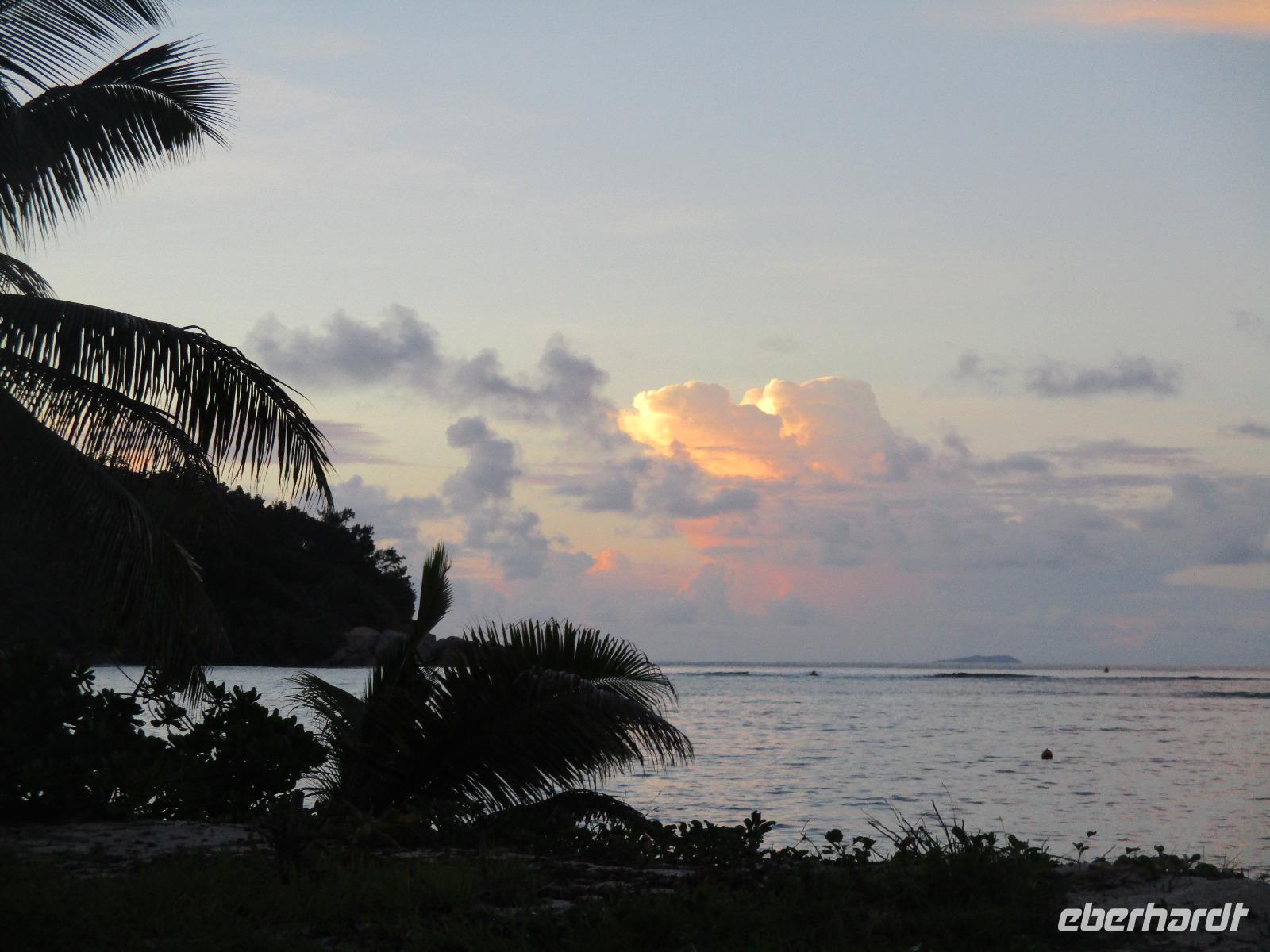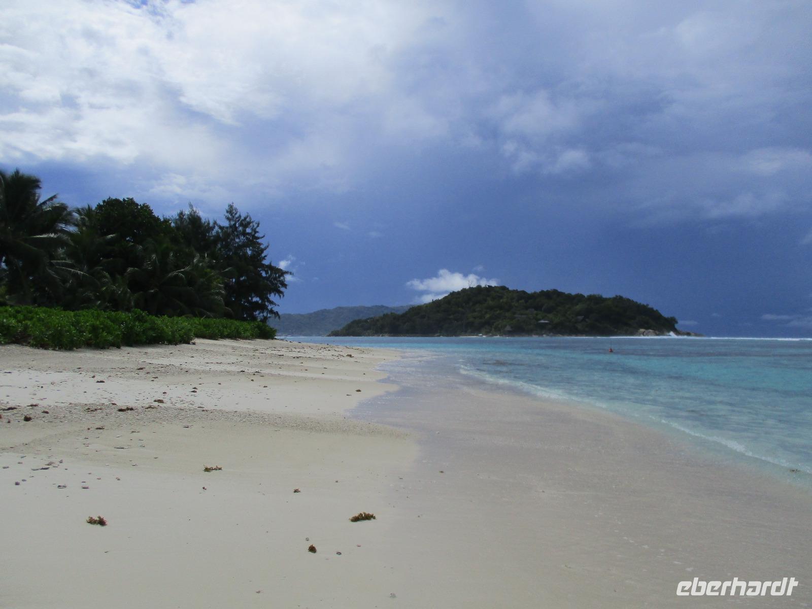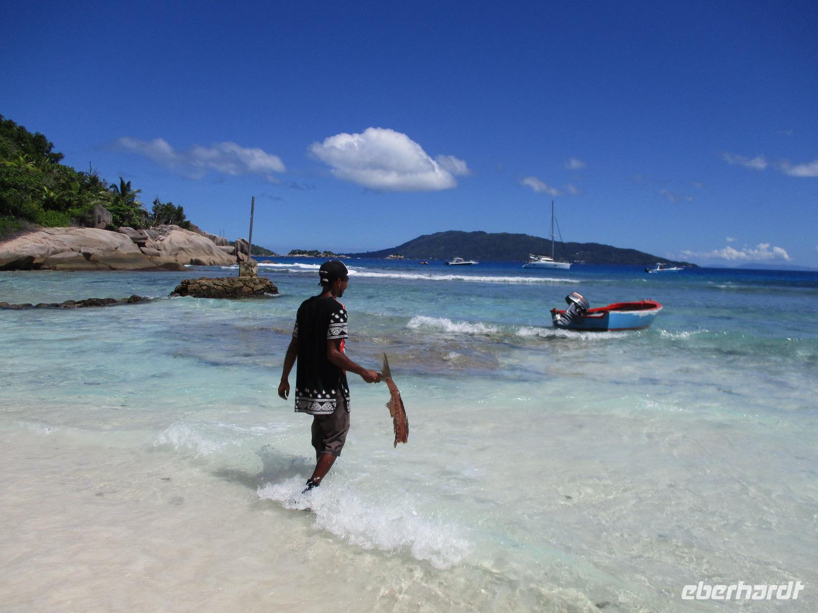 Für die meisten Gäste unserer Gruppe stand heute ein Tag Freizeit im Hotel auf dem Programm. Und diese wurde genutzt zum Baden, Sonnen, Schnorcheln, Spazierengehen oder Ausruhen im Schatten oder am Strand. Für einige von uns hieß es aber heute auch, Abschied zu nehmen von einem Traumhotel und einer netten Reisegruppe. Weil sie bis zum Nachmittag in ihren Zimmern bleiben konnten, hatten sie auch die Gelegenheit, die Annehmlichkeiten des Hotels und vom Strand in vollem Umfang zu nutzen. Am späten Nachmittag mussten sie aber schließlich das Hotelboot zum Praslin Jetty besteigen, um die Heimreise nach Deutschland anzutreten. Wohl schweren Herzens fügten sie sich darin, auch der Himmel schien die Sache so zu sehen, denn gerade jetzt ging ein heftiger Wolkenbruch herunter. Trotz des Regens ging alles gut und die drei Gäste erreichten wohlbehalten mit der Fähre die Hauptinsel Mahé. Cyrill holte sie ab und begleitete sie zum Flughafen, um hier die Maschine der Condor am späten Abend zu nehmen. Sie flogen nach Frankfurt und von dort aus zu weiteren Flughäfen in Deutschland, von wo sie schließlich nach Hause fuhren. Es war eine schöne Zeit mit der ganzen Gruppe, aber die verbliebenen Gäste freuten sich auf weitere schöne Tage im Inselparadies.