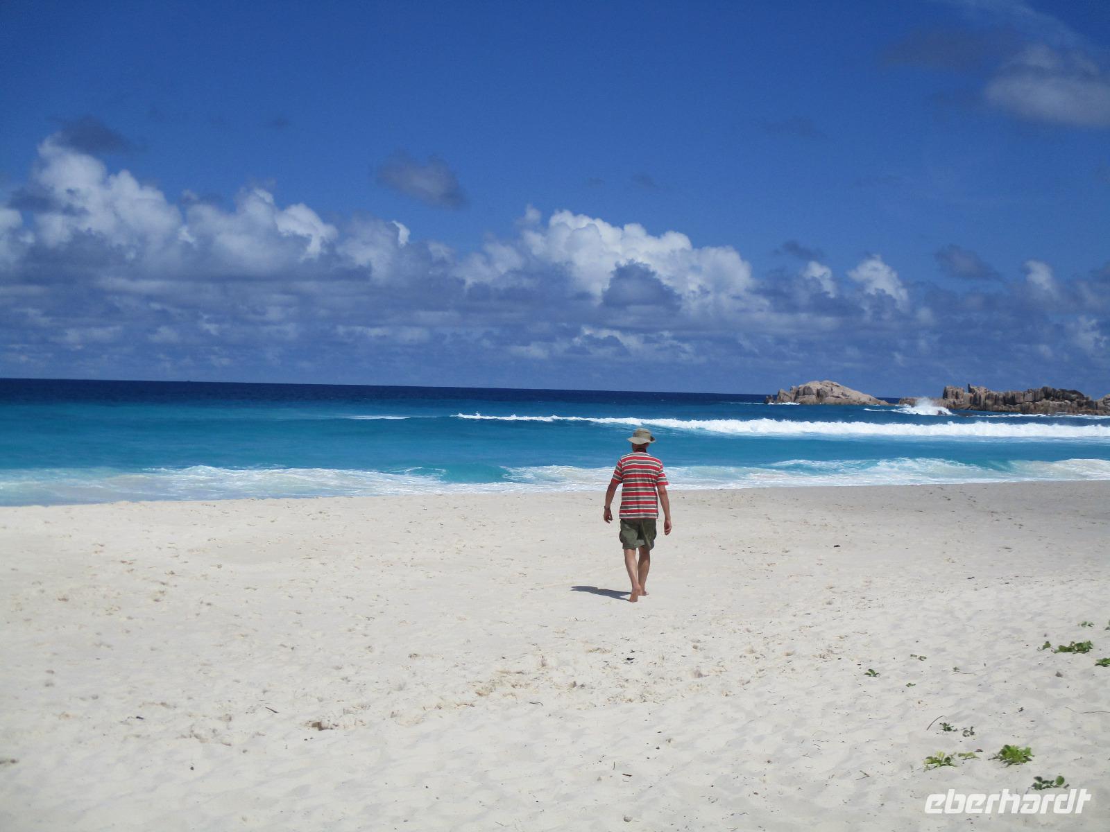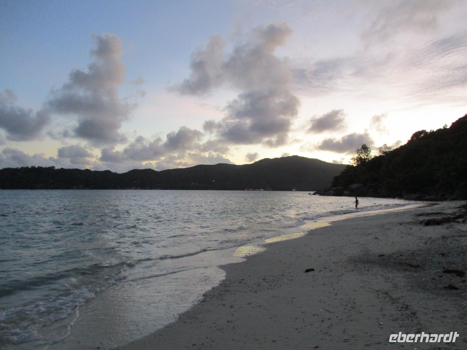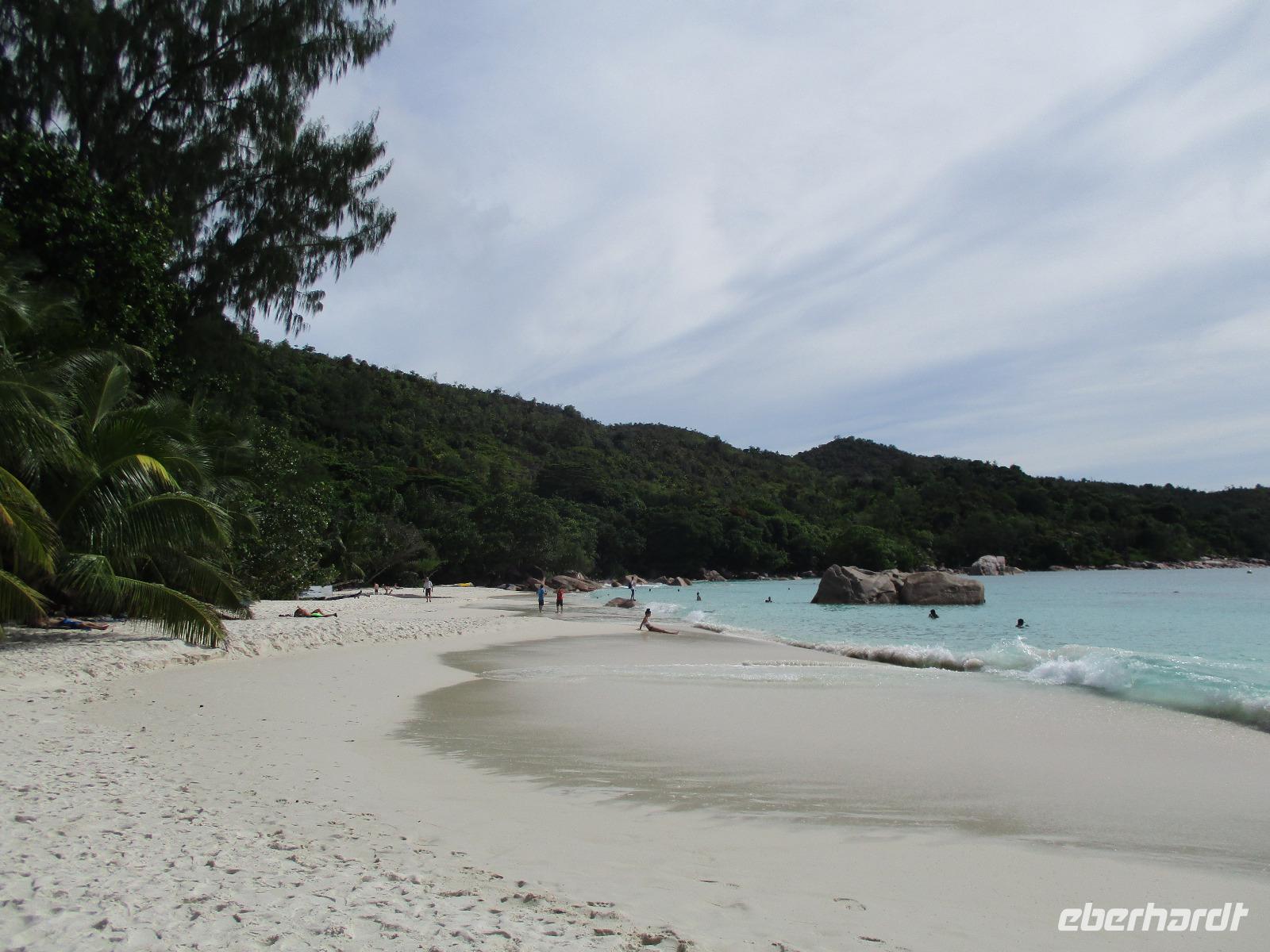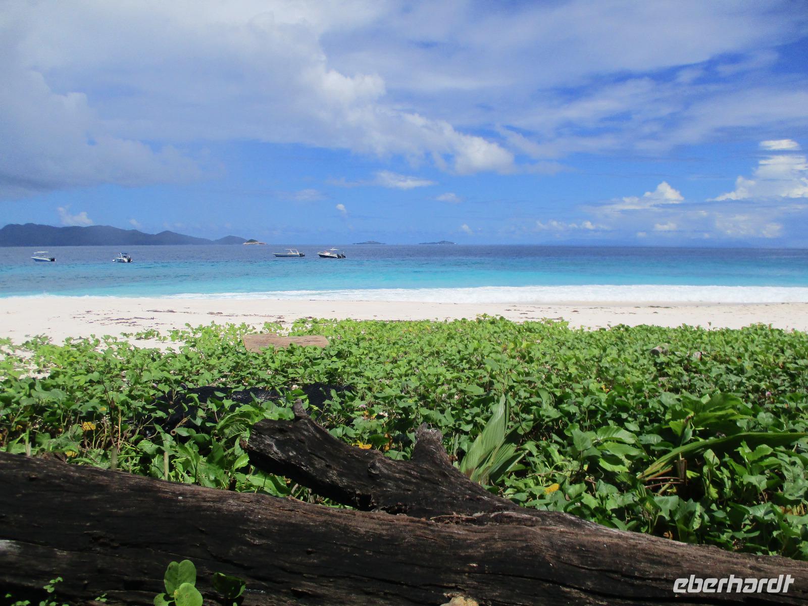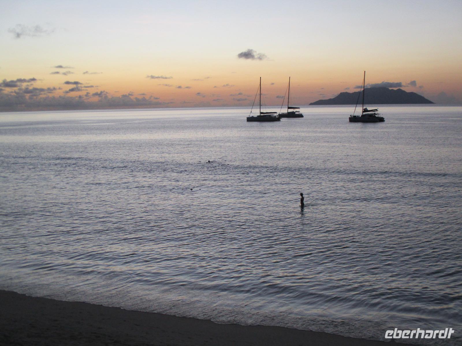 Für die meisten Gäste unserer Gruppe stand heute ein Tag Freizeit im Hotel auf dem Programm. Und diese wurde genutzt zum Baden, Sonnen, Schnorcheln, Spazierengehen oder Ausruhen im Schatten oder am Strand. Für einige von uns hieß es aber heute auch, Abschied zu nehmen von einem Traumhotel und einer netten Reisegruppe. Weil sie bis zum Nachmittag in ihren Zimmern bleiben konnten, hatten sie auch die Gelegenheit, die Annehmlichkeiten des Hotels und vom Strand in vollem Umfang zu nutzen. Am späten Nachmittag mussten sie aber schließlich das Hotelboot zum Praslin Jetty besteigen, um die Heimreise nach Deutschland anzutreten. Wohl schweren Herzens fügten sie sich darin, auch der Himmel schien die Sache so zu sehen, denn gerade jetzt ging ein heftiger Wolkenbruch herunter. Trotz des Regens ging alles gut und die drei Gäste erreichten wohlbehalten mit der Fähre die Hauptinsel Mahé. Cyrill holte sie ab und begleitete sie zum Flughafen, um hier die Maschine der Condor am späten Abend zu nehmen. Sie flogen nach Frankfurt und von dort aus zu weiteren Flughäfen in Deutschland, von wo sie schließlich nach Hause fuhren. Es war eine schöne Zeit mit der ganzen Gruppe, aber die verbliebenen Gäste freuten sich auf weitere schöne Tage im Inselparadies.