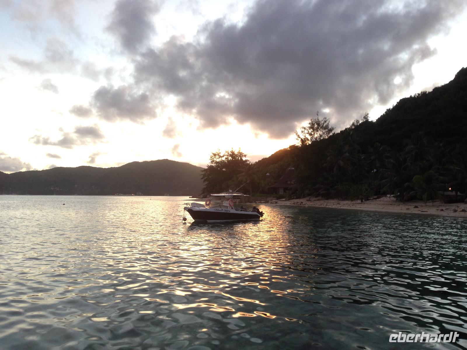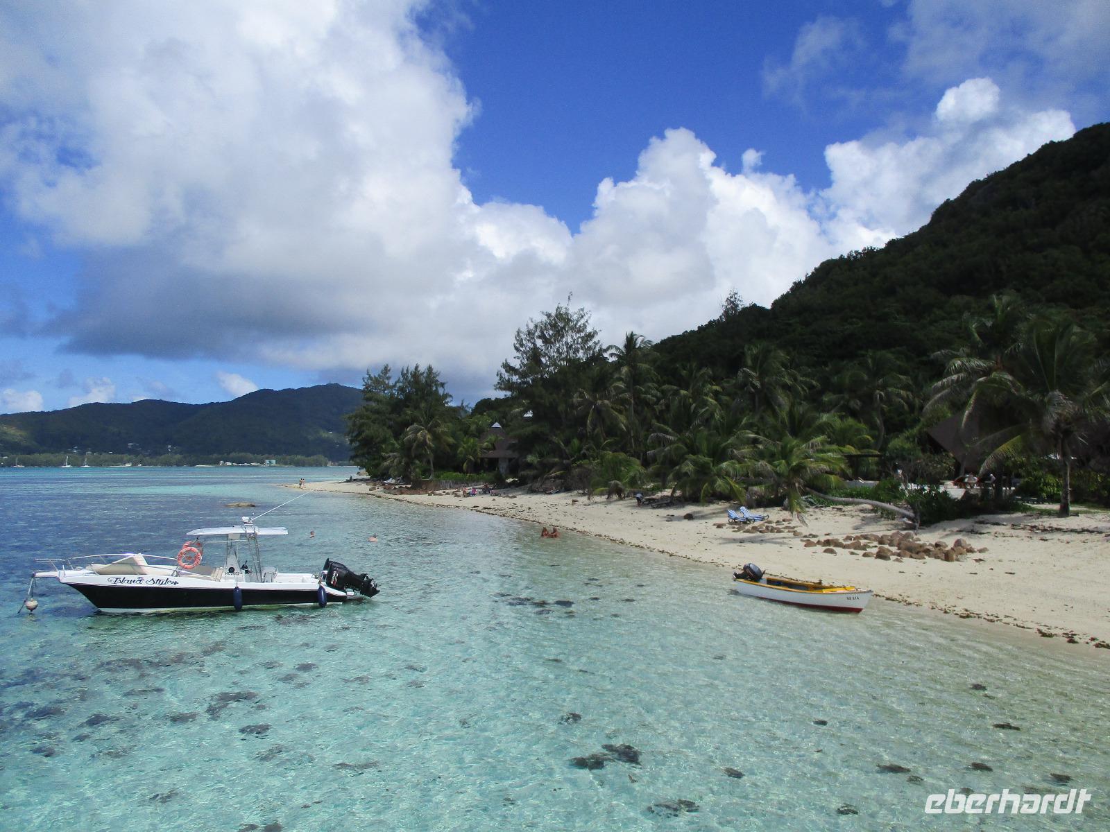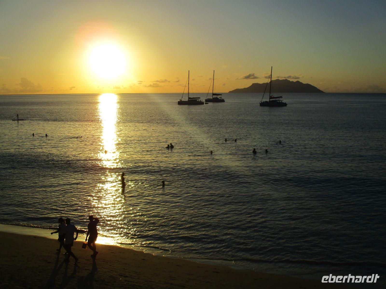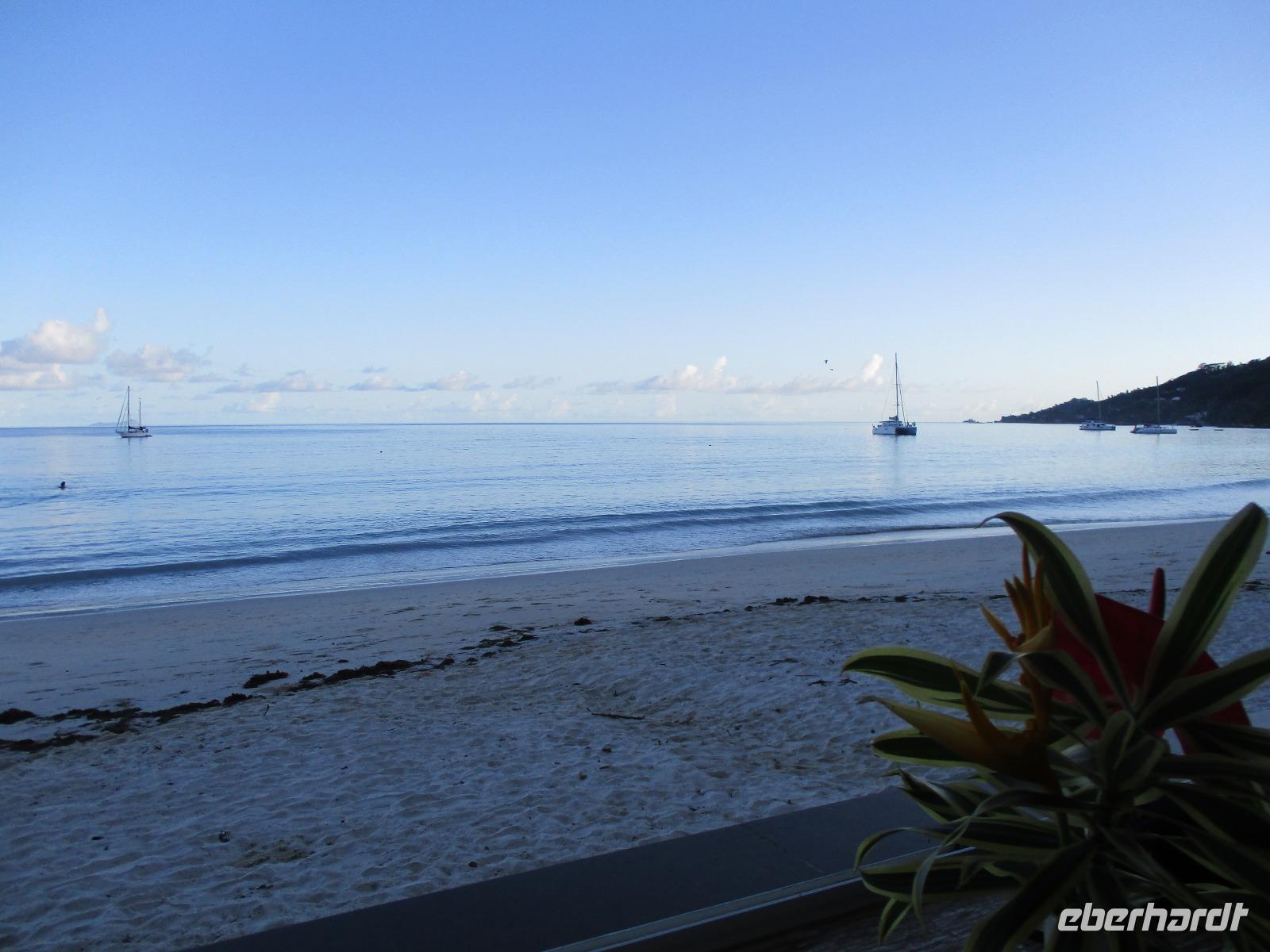 Für die meisten Gäste unserer Gruppe stand heute ein Tag Freizeit im Hotel auf dem Programm. Und diese wurde genutzt zum Baden, Sonnen, Schnorcheln, Spazierengehen oder Ausruhen im Schatten oder am Strand. Für einige von uns hieß es aber heute auch, Abschied zu nehmen von einem Traumhotel und einer netten Reisegruppe. Weil sie bis zum Nachmittag in ihren Zimmern bleiben konnten, hatten sie auch die Gelegenheit, die Annehmlichkeiten des Hotels und vom Strand in vollem Umfang zu nutzen. Am späten Nachmittag mussten sie aber schließlich das Hotelboot zum Praslin Jetty besteigen, um die Heimreise nach Deutschland anzutreten. Wohl schweren Herzens fügten sie sich darin, auch der Himmel schien die Sache so zu sehen, denn gerade jetzt ging ein heftiger Wolkenbruch herunter. Trotz des Regens ging alles gut und die drei Gäste erreichten wohlbehalten mit der Fähre die Hauptinsel Mahé. Cyrill holte sie ab und begleitete sie zum Flughafen, um hier die Maschine der Condor am späten Abend zu nehmen. Sie flogen nach Frankfurt und von dort aus zu weiteren Flughäfen in Deutschland, von wo sie schließlich nach Hause fuhren. Es war eine schöne Zeit mit der ganzen Gruppe, aber die verbliebenen Gäste freuten sich auf weitere schöne Tage im Inselparadies.