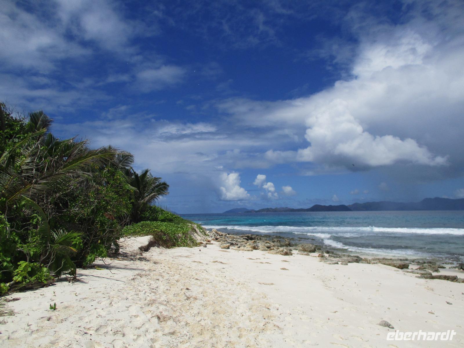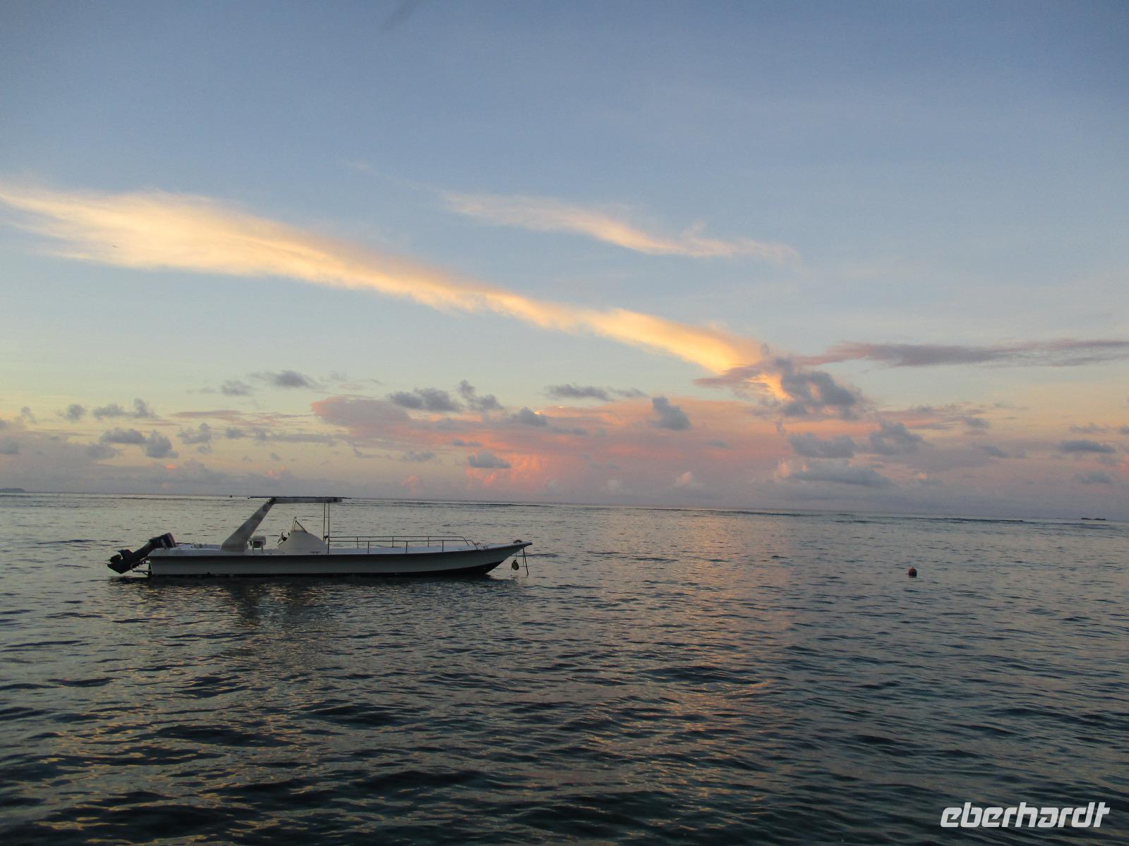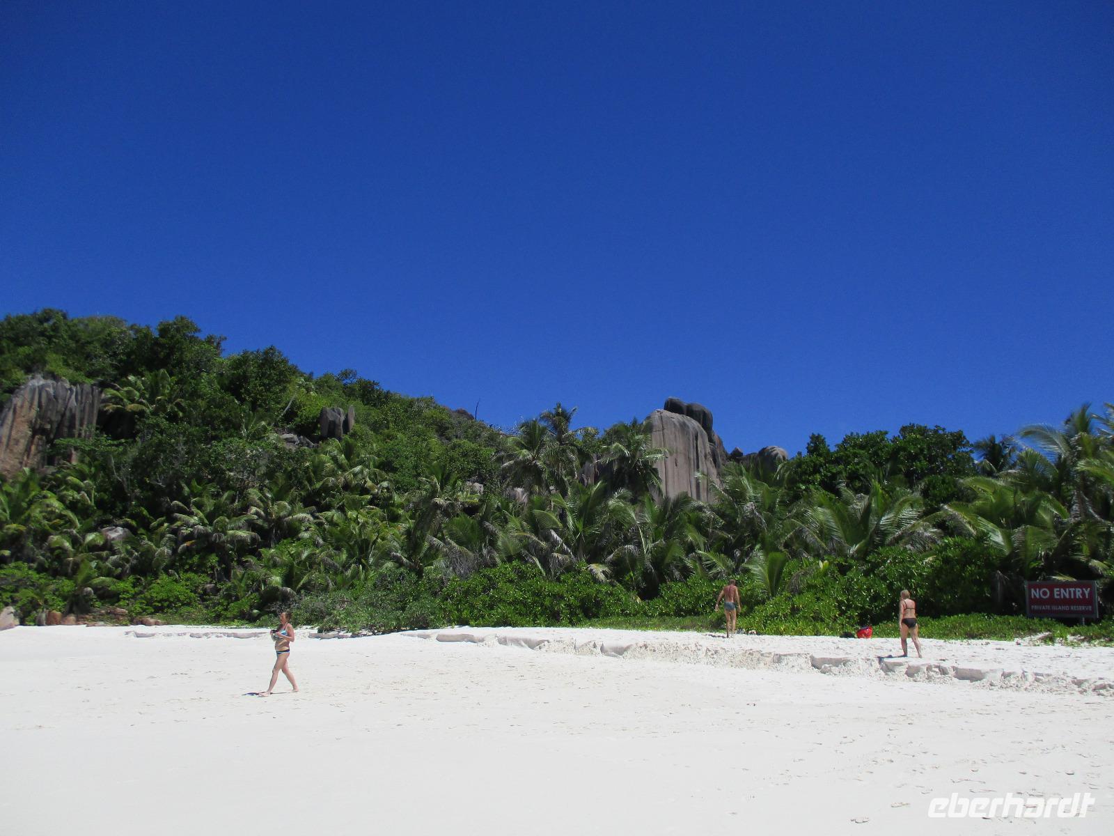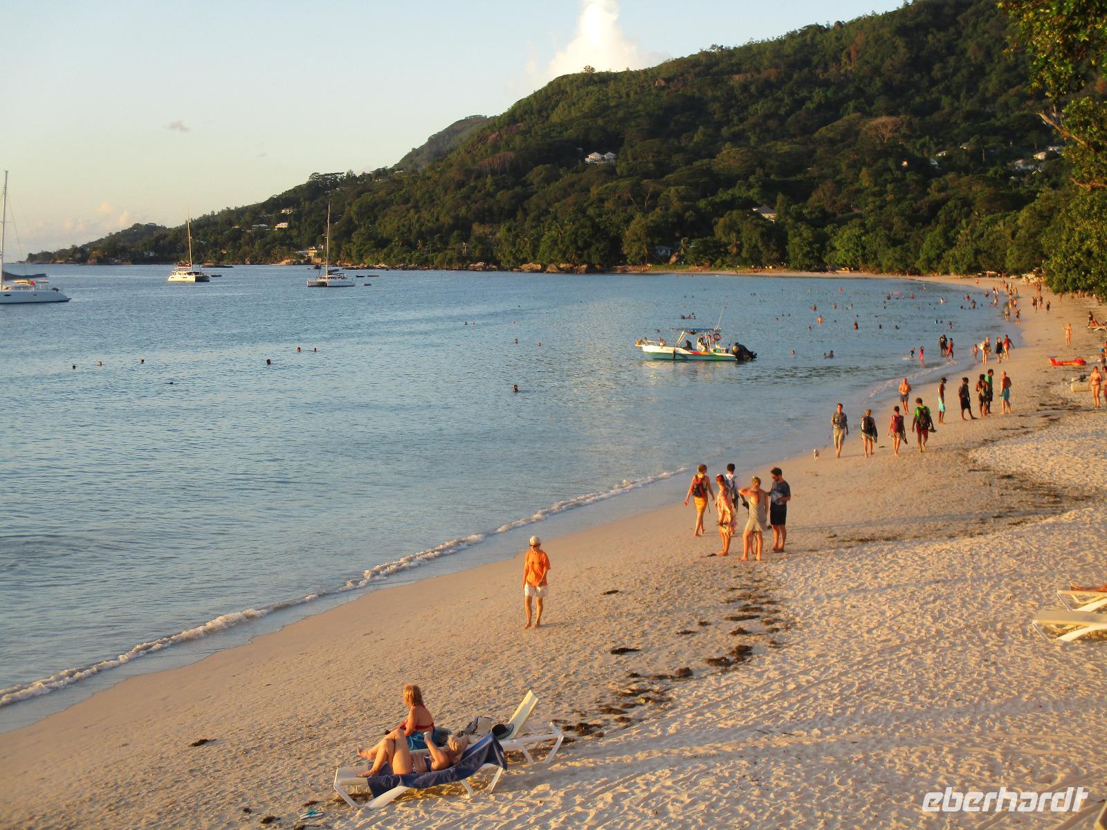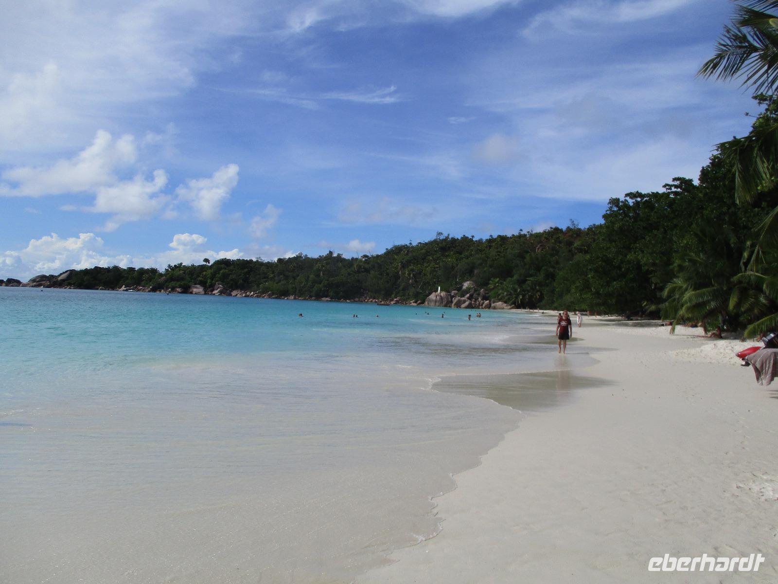Für die meisten Gäste unserer Gruppe stand heute ein Tag Freizeit im Hotel auf dem Programm. Und diese wurde genutzt zum Baden, Sonnen, Schnorcheln, Spazierengehen oder Ausruhen im Schatten oder am Strand. Für einige von uns hieß es aber heute auch, Abschied zu nehmen von einem Traumhotel und einer netten Reisegruppe. Weil sie bis zum Nachmittag in ihren Zimmern bleiben konnten, hatten sie auch die Gelegenheit, die Annehmlichkeiten des Hotels und vom Strand in vollem Umfang zu nutzen. Am späten Nachmittag mussten sie aber schließlich das Hotelboot zum Praslin Jetty besteigen, um die Heimreise nach Deutschland anzutreten. Wohl schweren Herzens fügten sie sich darin, auch der Himmel schien die Sache so zu sehen, denn gerade jetzt ging ein heftiger Wolkenbruch herunter. Trotz des Regens ging alles gut und die drei Gäste erreichten wohlbehalten mit der Fähre die Hauptinsel Mahé. Cyrill holte sie ab und begleitete sie zum Flughafen, um hier die Maschine der Condor am späten Abend zu nehmen. Sie flogen nach Frankfurt und von dort aus zu weiteren Flughäfen in Deutschland, von wo sie schließlich nach Hause fuhren. Es war eine schöne Zeit mit der ganzen Gruppe, aber die verbliebenen Gäste freuten sich auf weitere schöne Tage im Inselparadies.