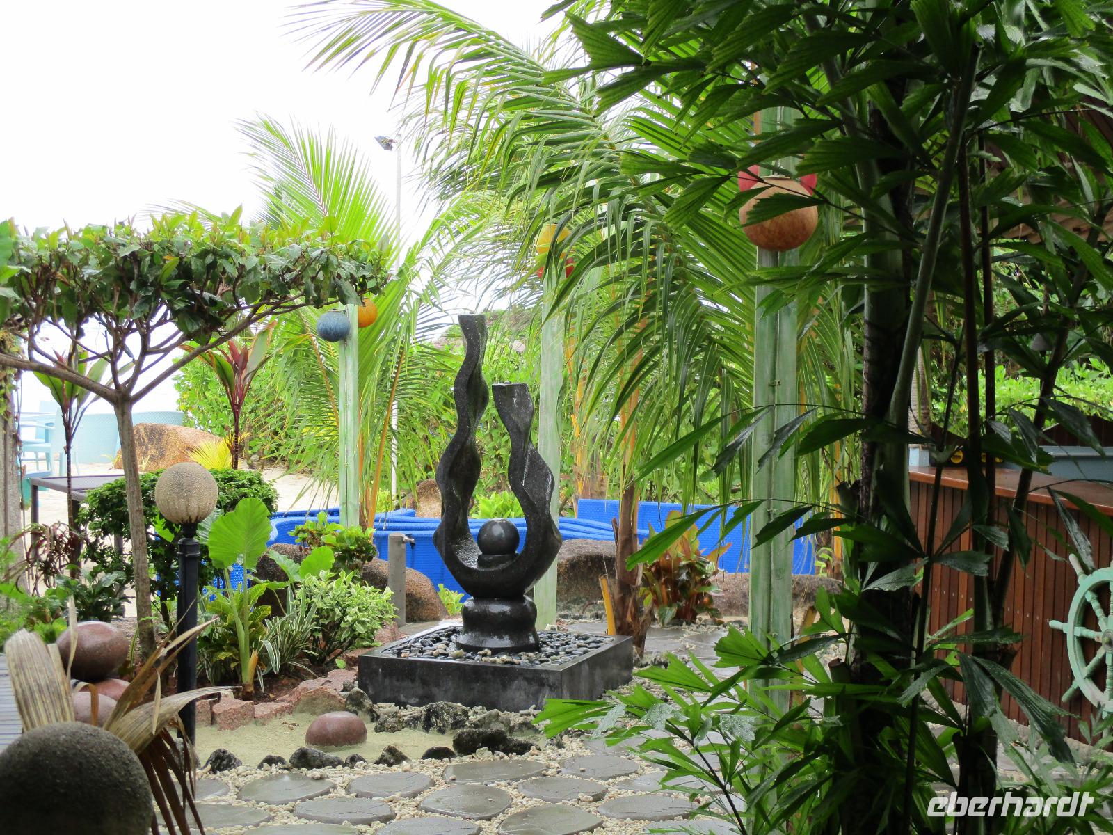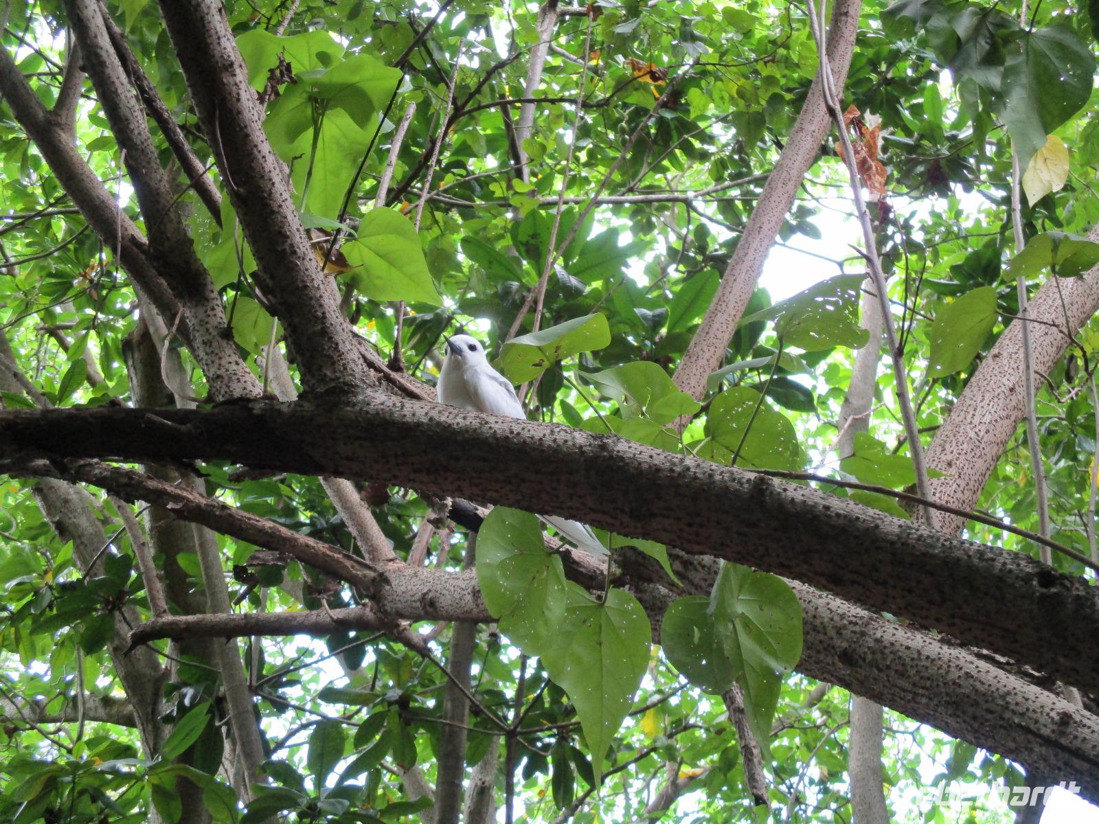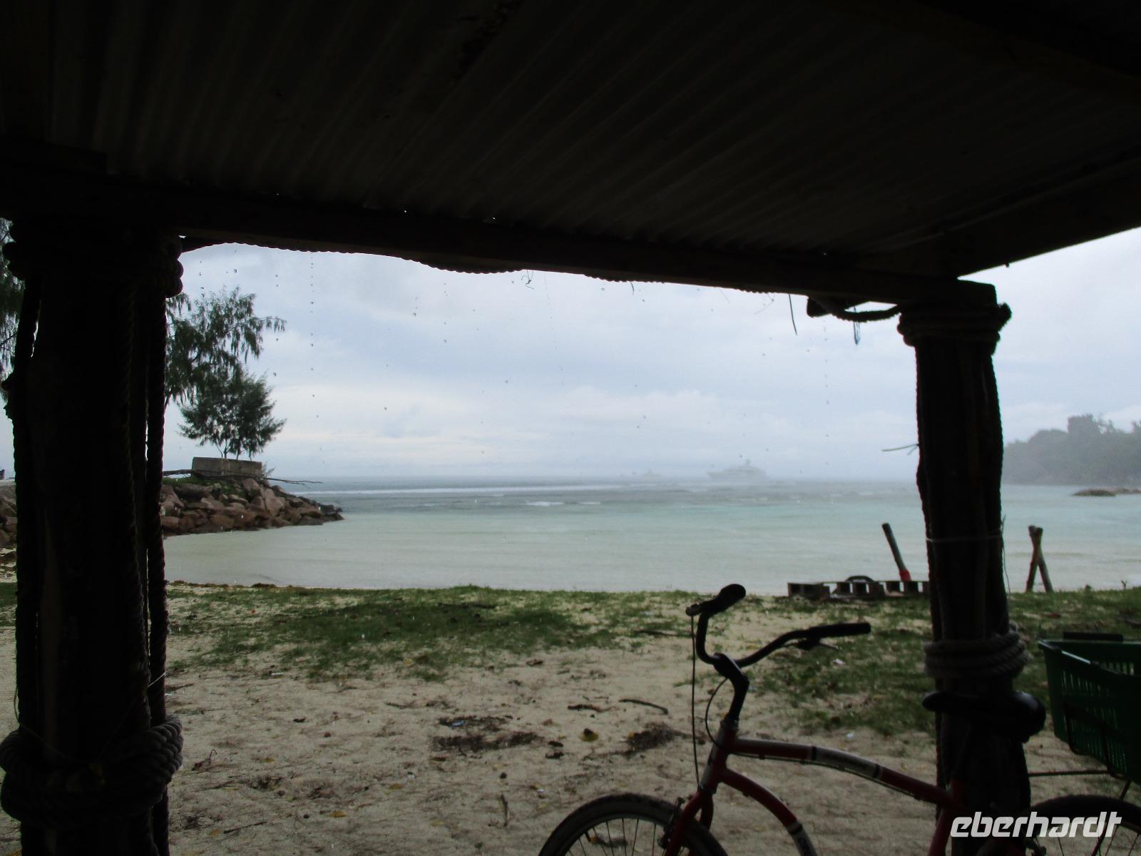 Wir trafen uns wieder ziemlich früh zum Frühstück, um einen neuen Versuch zu starten, heute die Vogelinsel Aride zu besuchen. Doch bereits der wolkenverhangene Himmel verhieß nichts Gutes. Als wir dann beim Frühstück saßen, ging ein schwerer Wolkenbruch hernieder, so dass ein Ausflug immer unwahrscheinlicher wurde. Und so war es dann auch, wegen Unwetters und schwerem Seegang war Aride auch an diesem Tag geschlossen. Also hatten wir Freizeit, die wir unterschiedlich nutzten. Einige besuchten die Schwarperlenfarm auf Praslin, andere ließen sich noch einmal auf La Dique übersetzen oder man blieb einfach im Hotel und genoss die Annehmlichkeiten der Anlage, z.B. bei einer Massage. Den ganzen Tag begleiteten uns heftige Regenschauer, wir hofften auf besseres Wetter für den nächsten Tag.