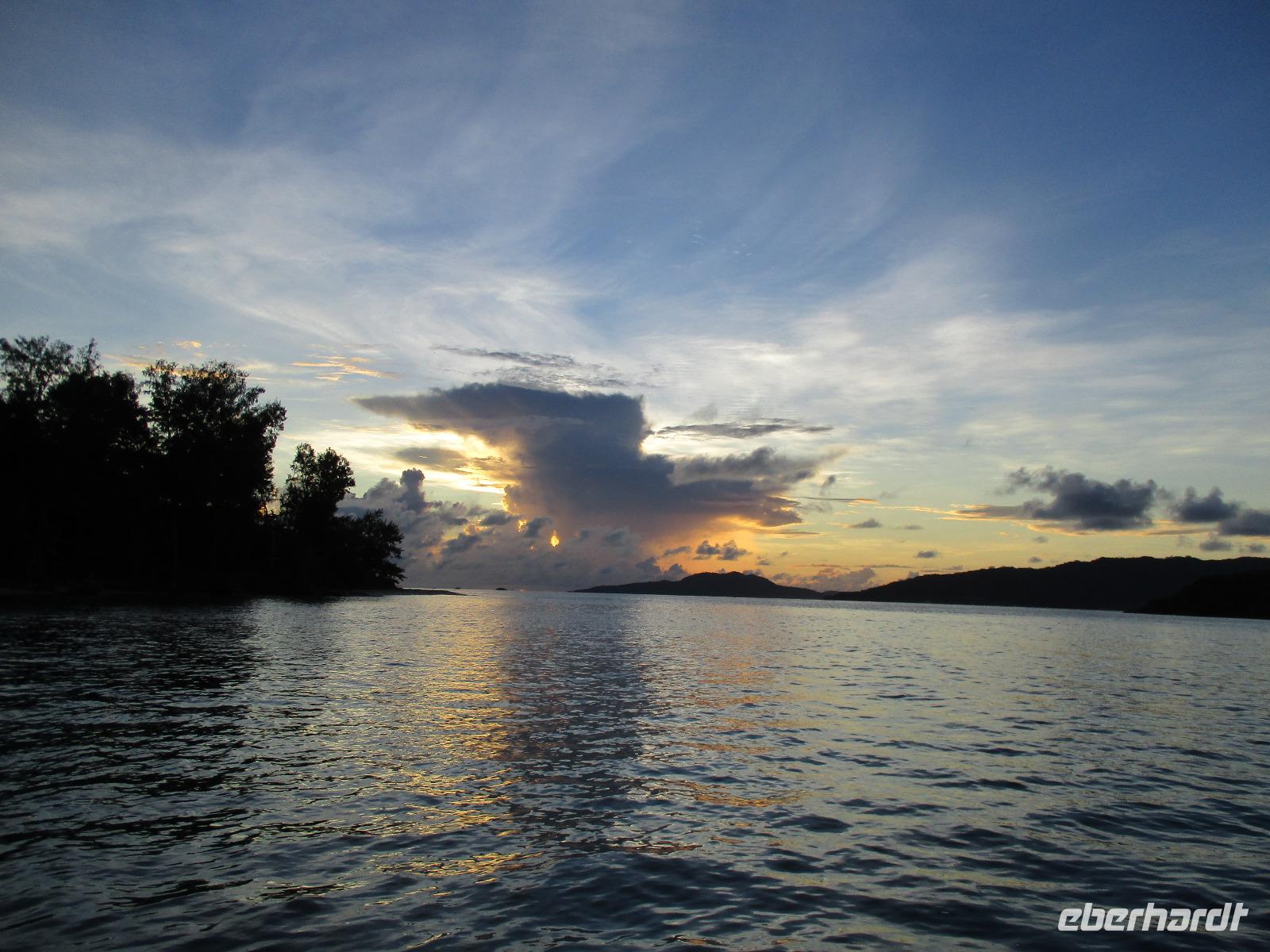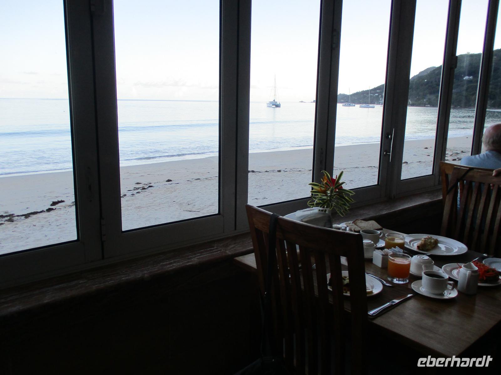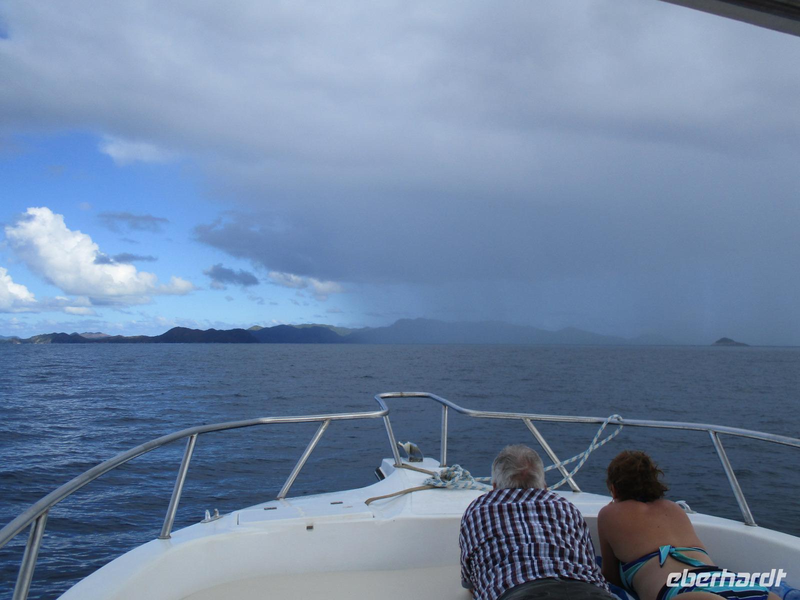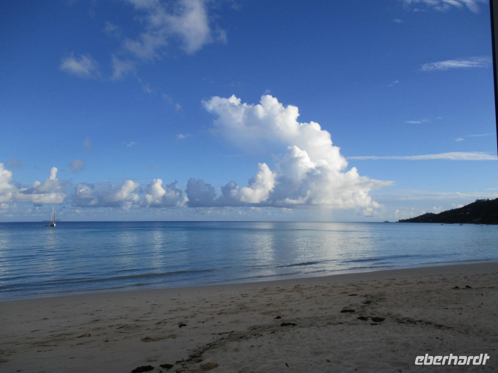 Wir trafen uns wieder ziemlich früh zum Frühstück, um einen neuen Versuch zu starten, heute die Vogelinsel Aride zu besuchen. Doch bereits der wolkenverhangene Himmel verhieß nichts Gutes. Als wir dann beim Frühstück saßen, ging ein schwerer Wolkenbruch hernieder, so dass ein Ausflug immer unwahrscheinlicher wurde. Und so war es dann auch, wegen Unwetters und schwerem Seegang war Aride auch an diesem Tag geschlossen. Also hatten wir Freizeit, die wir unterschiedlich nutzten. Einige besuchten die Schwarperlenfarm auf Praslin, andere ließen sich noch einmal auf La Dique übersetzen oder man blieb einfach im Hotel und genoss die Annehmlichkeiten der Anlage, z.B. bei einer Massage. Den ganzen Tag begleiteten uns heftige Regenschauer, wir hofften auf besseres Wetter für den nächsten Tag.