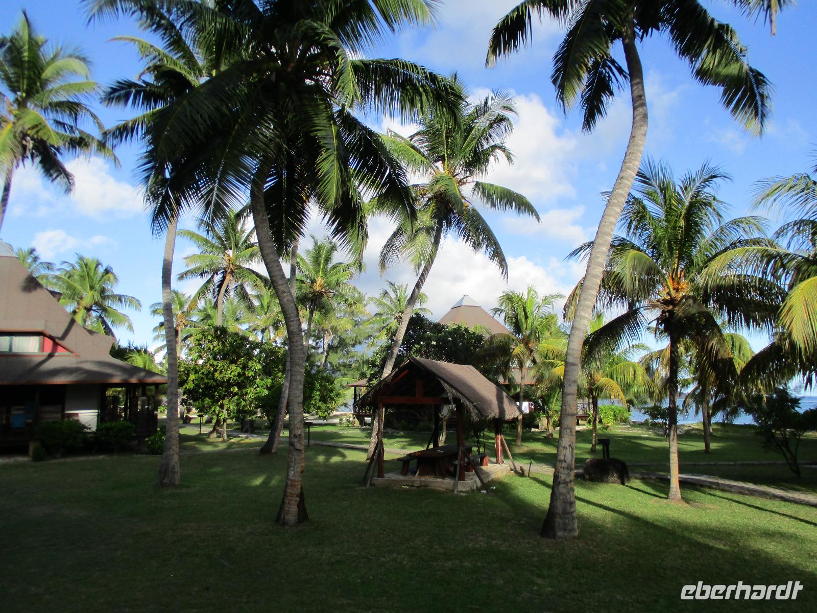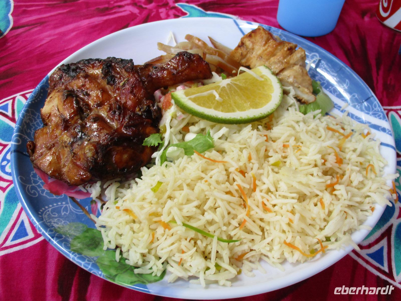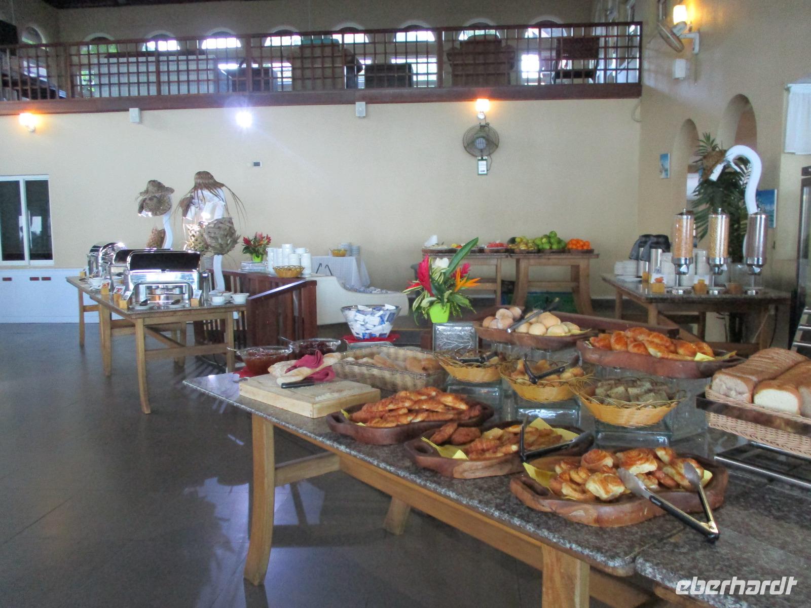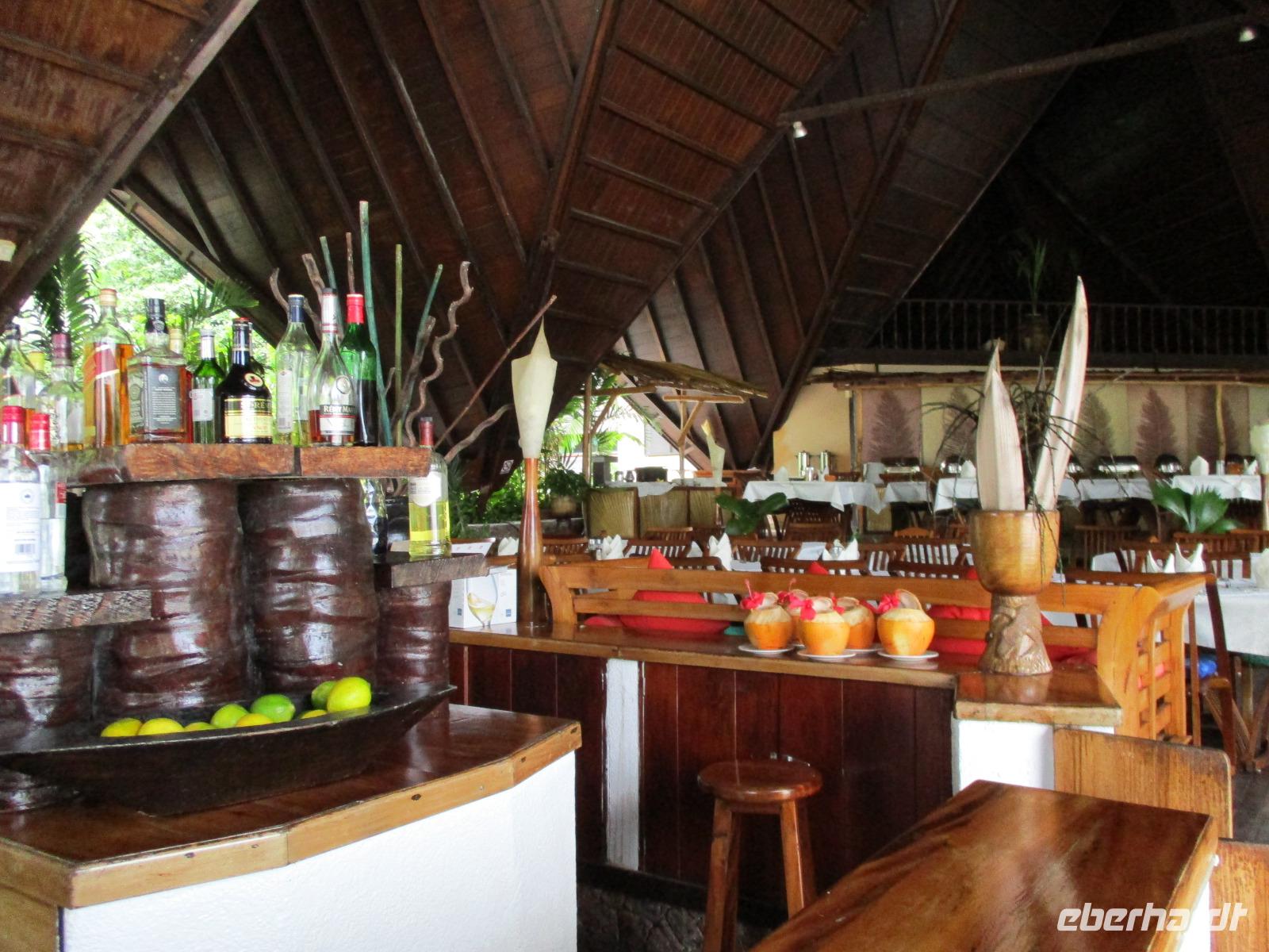 Jeden Abend fanden wir uns im Restaurant ein, das im Freien mit Leckereien vom Buffet auf uns wartete. Lediglich ein Dach gibt es über dem Restaurant, denn manchmal regnet es hier auch, und wenn, dann gleich heftig.