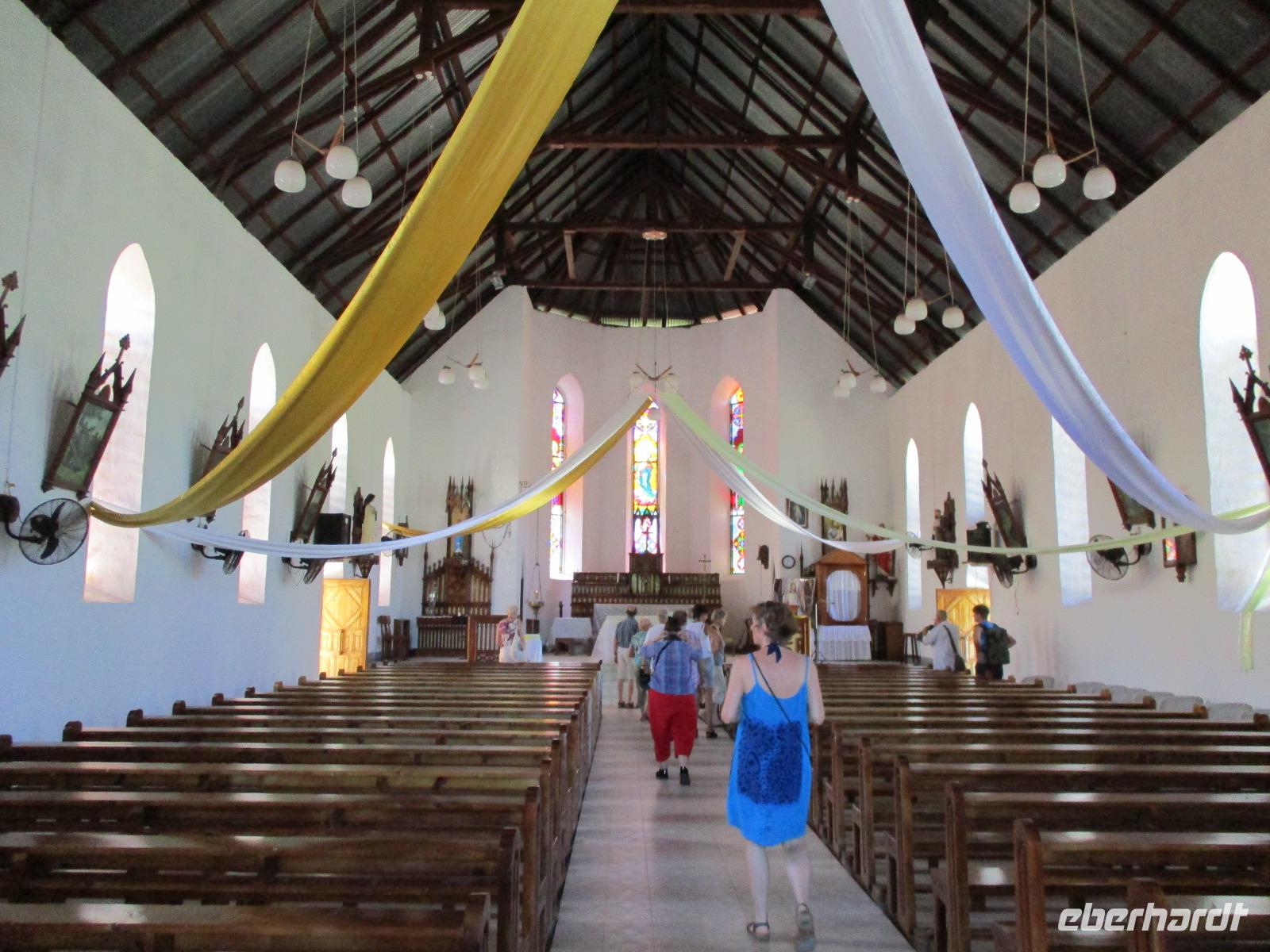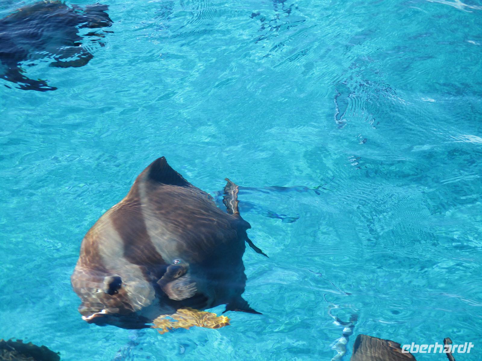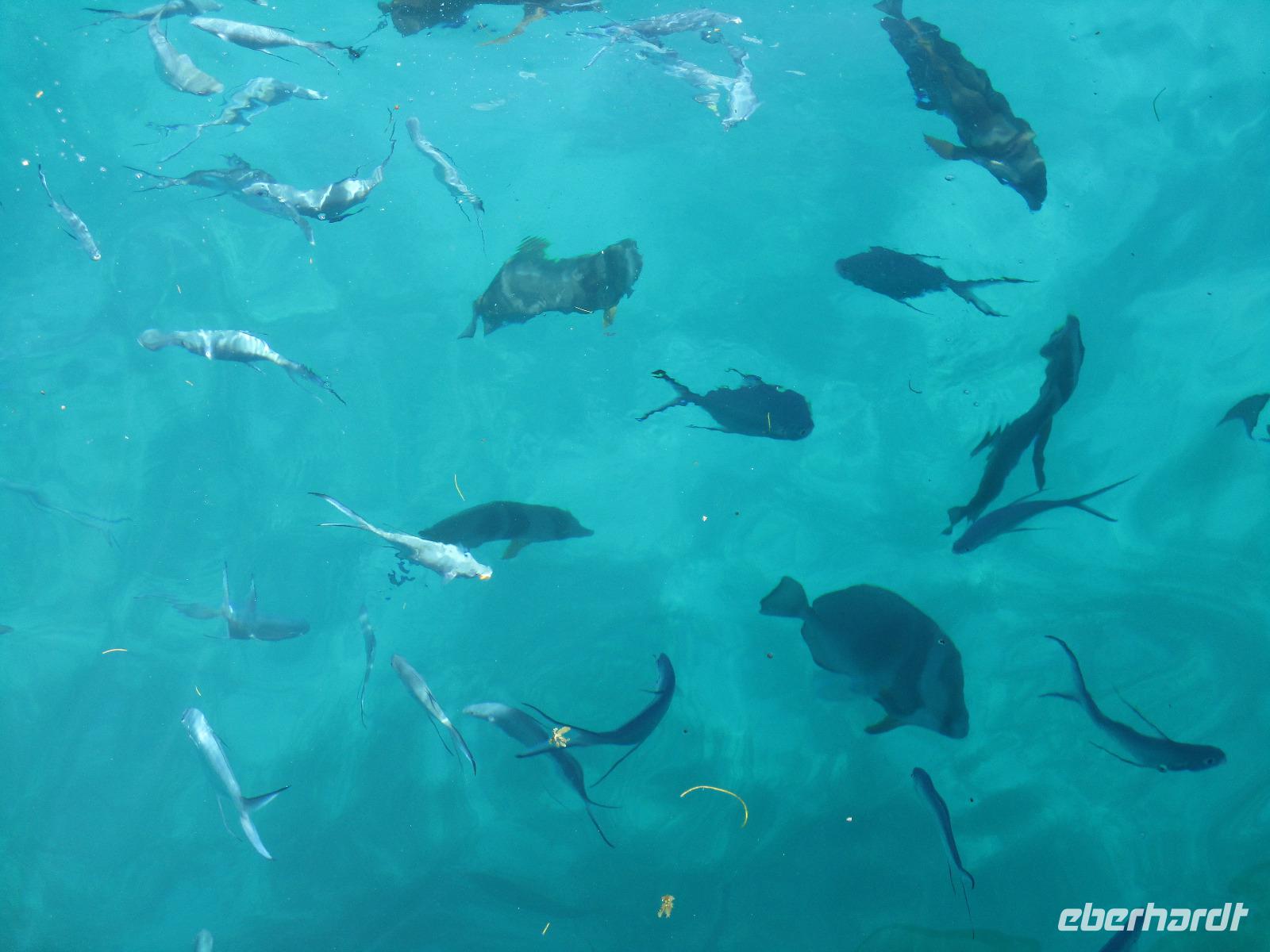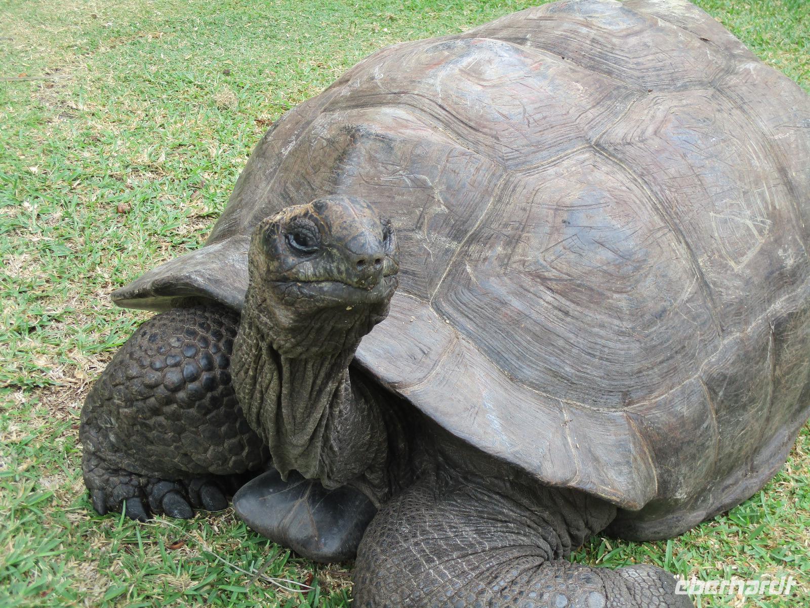 Gleich nach dem Frühstück wurden wir von Cyrill und einem Kleinbus abgeholt. Wir fuhren auf sich windenden Straßen, gesäumt von Palmen, herrlichen Ausblicken aufs Meer und bunten Häusern, hinunter bis zum Hafen von Victoria. Ein Katamaran wartete schon auf uns, und wir begannen unsere Fahrt hinaus zum St. Anne Marine Park, das ist ein Nationalpark bestehend aus 6 Inseln und dem Wasser drum herum. Wir genossen die Fahrt, während eine traumhafte Landschaft an uns vorbeizog. Auch Fische wurden gefüttert, die sogleich in dichten Schwärmen neben unserem Katamaran auftauchten und schöne Fotomotive lieferten. Wir konnten schnorcheln und mit einem Glasbodenboot fahren. Der Meeresboden glitt an uns vorbei, durch die Glasscheiben unter Wasser konnten wir verschiedene Korallenarten und auch einige Fische entdecken. Die Namen der Korallen kommen von deren Aussehen, wie uns Cyrill erklärte. So sahen wir zum Beispiel Salat-, Gehirn- und Fingerkorallen. Auf dem Katamaran ließen wir uns ein leckeres Mittagessen schmecken und am Nachmittag legten wir an der Insel Moyenne an. Wir stiegen ins seichte Wasser vor dem weißen Strand. Ein kleiner Aufstieg führte uns hinauf bis zur Kapelle der Insel, wo auch das Grab des Engländers Brendon Grimshaw zu finden ist, dem einst die Insel gehört hatte und der seitdem für die Erhaltung der ursprünglichen Natur hier gekämpft hatte. Erste große Landschildkröten luden zu zaghaften Begegnungen mit den urzeitlichen Tieren ein. Wir fotografierten so manchen überwältigenden Ausblick aufs türkisfarbene Meer im Sonnenschein. Während einer Pause am Strand ruhten wir aus im Schatten oder genossen die Sonne und das Meer. Am späten Nachmittag schließlich legte unser Katamaran schließlich wieder im Hafen von Victoria an, wir stiegen in unseren kleinen Bus und wurden zurück zum Hotel gebracht. Ein bisschen Freizeit noch, dann trafen wir uns wieder zum gemeinsamen Abendessen. Danach gingen die meisten in ihre Zimmer, einige Gäste unserer Gruppe genossen den Abend noch am Hotelpool bei einem Getränk aus der Bar, eine Liveband spielte und sorgte für einen entspannten Abend.