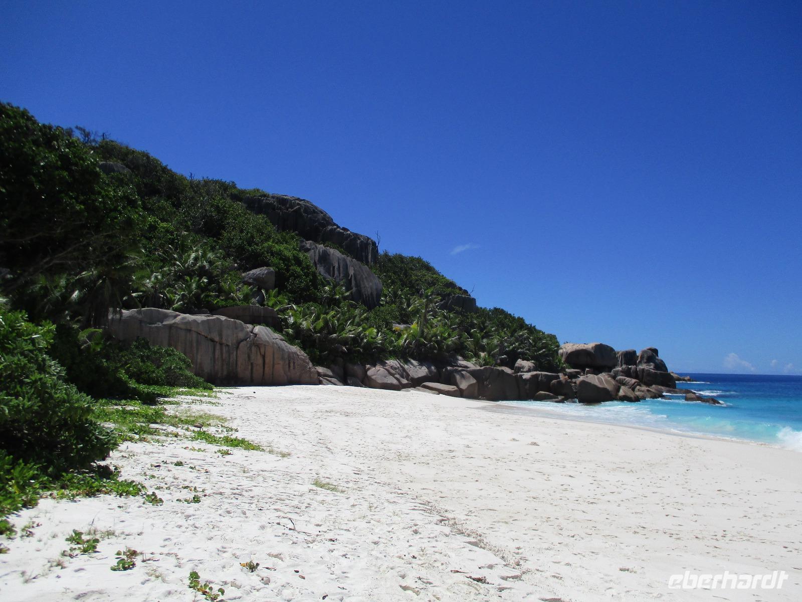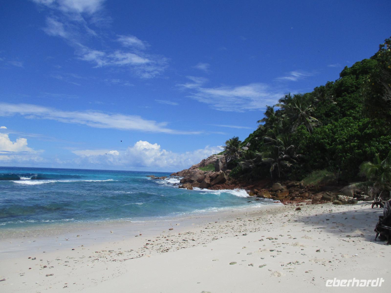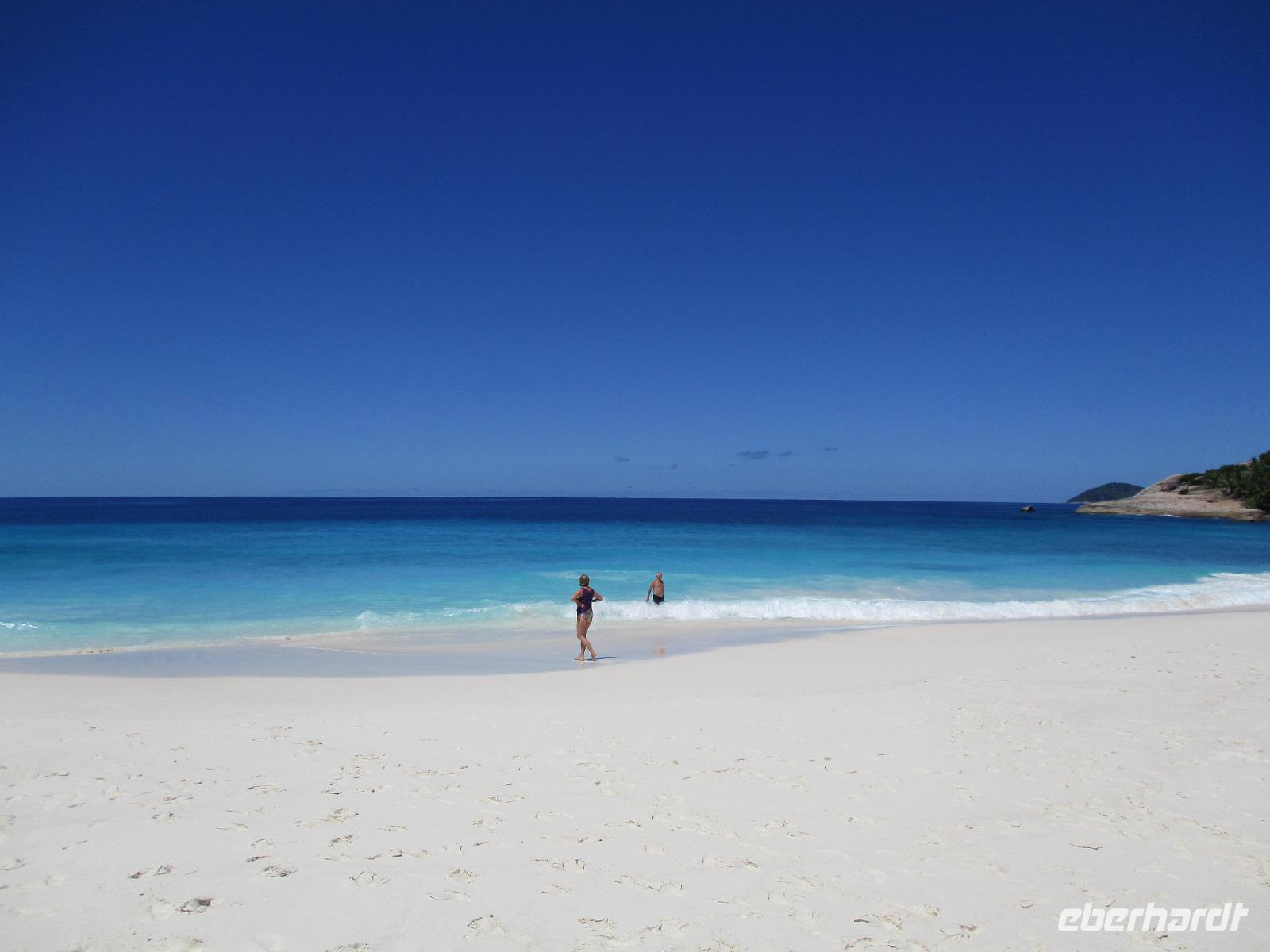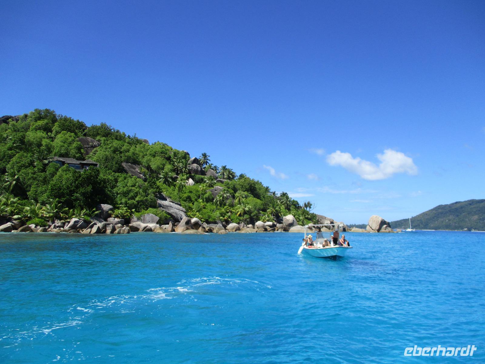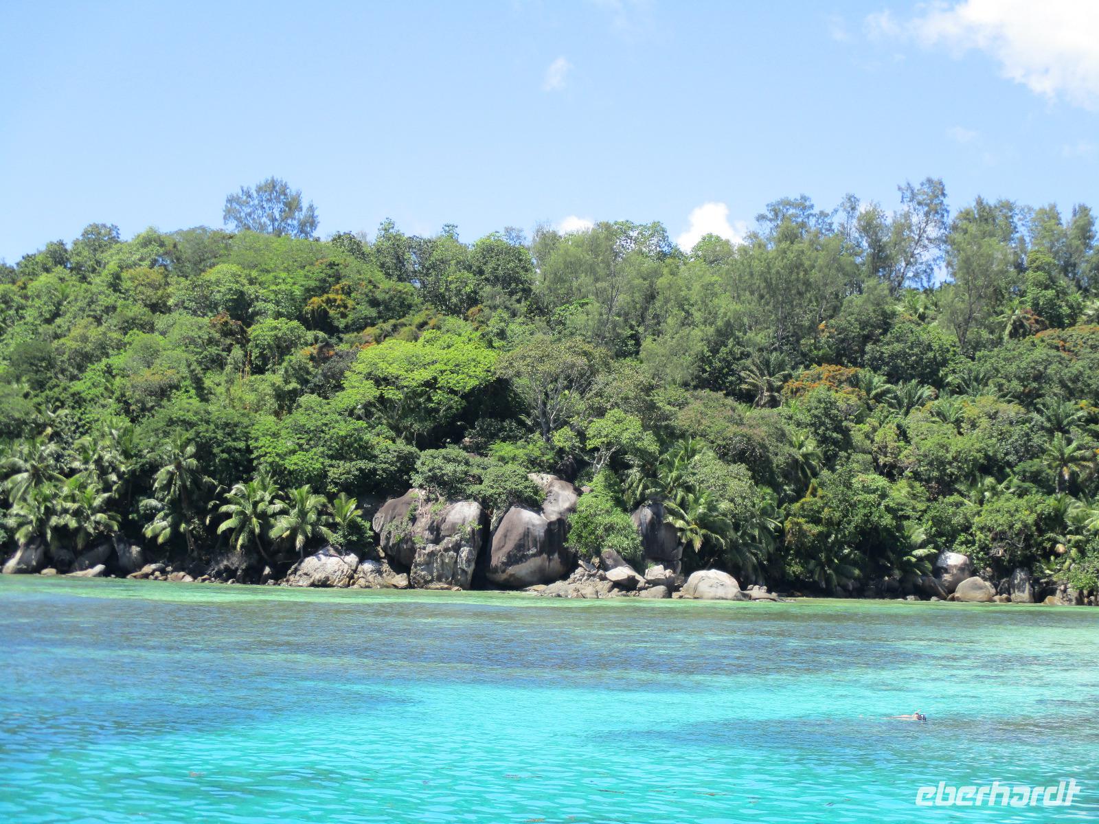 Eigentlich wollten wir heute die Vogelinsel Aride besuchen, die war aber wegen zu starker Wellen nicht geöffnet. Also disponierten wir um und zogen den Ausflug zu den Inseln Sister und Coco vor. Bei herrlichstem Sonnenschein brachen wir auf. Direkt vom Hotel aus fuhren wir mit zwei Booten los. Eines unserer Boote steuerte zunächst Sister Island an. Wir warteten an Bord, während unser Proviant für das Mittagessen und unser Koch an Land übergesetzt wurden. Danach fuhren wir weiter bis zur Insel Coco, wo wieder Gelegenheit zum Schnorcheln bestand, die einige unserer Gäste sehr gerne nutzten. Die anderen verbrachten eine gemütliche Zeit an Bord. Danach fuhren unsere Skipper weiter zur Insel Felicite, wo noch einmal geschnorchelt werden konnte. Von den Booten aus machten wir Fotos von den herrlichen Stränden und Felsen, die von der Brandung umspült wurden. Gegen Mittag ging es schließlich wieder zurück zur großen Sister Insel. Wir warteten noch etwas, bis wir mit kleinen Booten an Land gebracht wurden. Das Grillmittagessen schmeckte köstlich, unser Koch hatte wieder tolle Arbeit geleistet. Danach hatten wir Gelegenheit, quer über die Insel zu spazieren durch einen kleinen Wald hindurch, am anderen Ende der Insel erwartete uns wieder ein Traumstrand, dessen hohe graue Felsen durchaus als Kulisse für Hollywood dienen könnten. Wir genossen die Zeit, fotografierten, nahmen ein Wellenbad oder streiften einfach durch den Puderzuckersand des weißen Strandes. Bald wurden wir wieder mit kleinen Booten zu unserem Hotelboot zurückgebracht, wir verabschiedeten uns von Sister Island. Auf dem Rückweg konnte noch an der kleinen Sister Insel geschnorchelt werden. Eine winzige Insel mit dem schönen Namen Ave Maria, auf der nur ein Baum und etwas Buschwerk wächst, wurde sicher auch mehrfach fotografiert. Nach kurzer Rückfahrt erreichten wir unser Hotel. Nach der üblichen Teestunde und etwas Freizeit ließen wir auch diesen wunderschönen Tag beim gemeinsamen Abendessen ausklingen.
