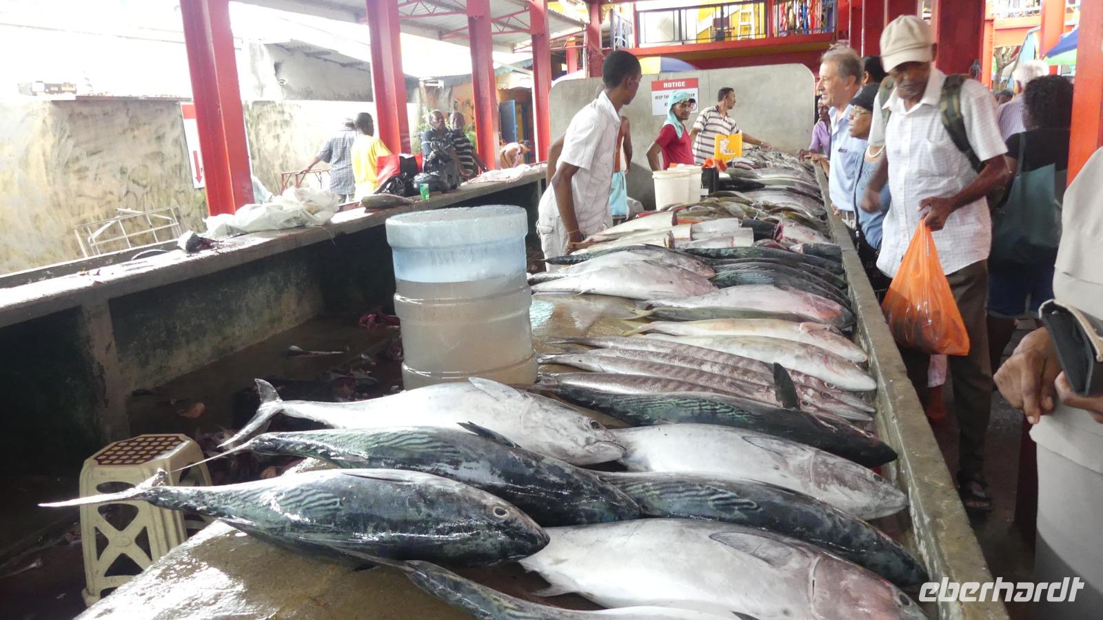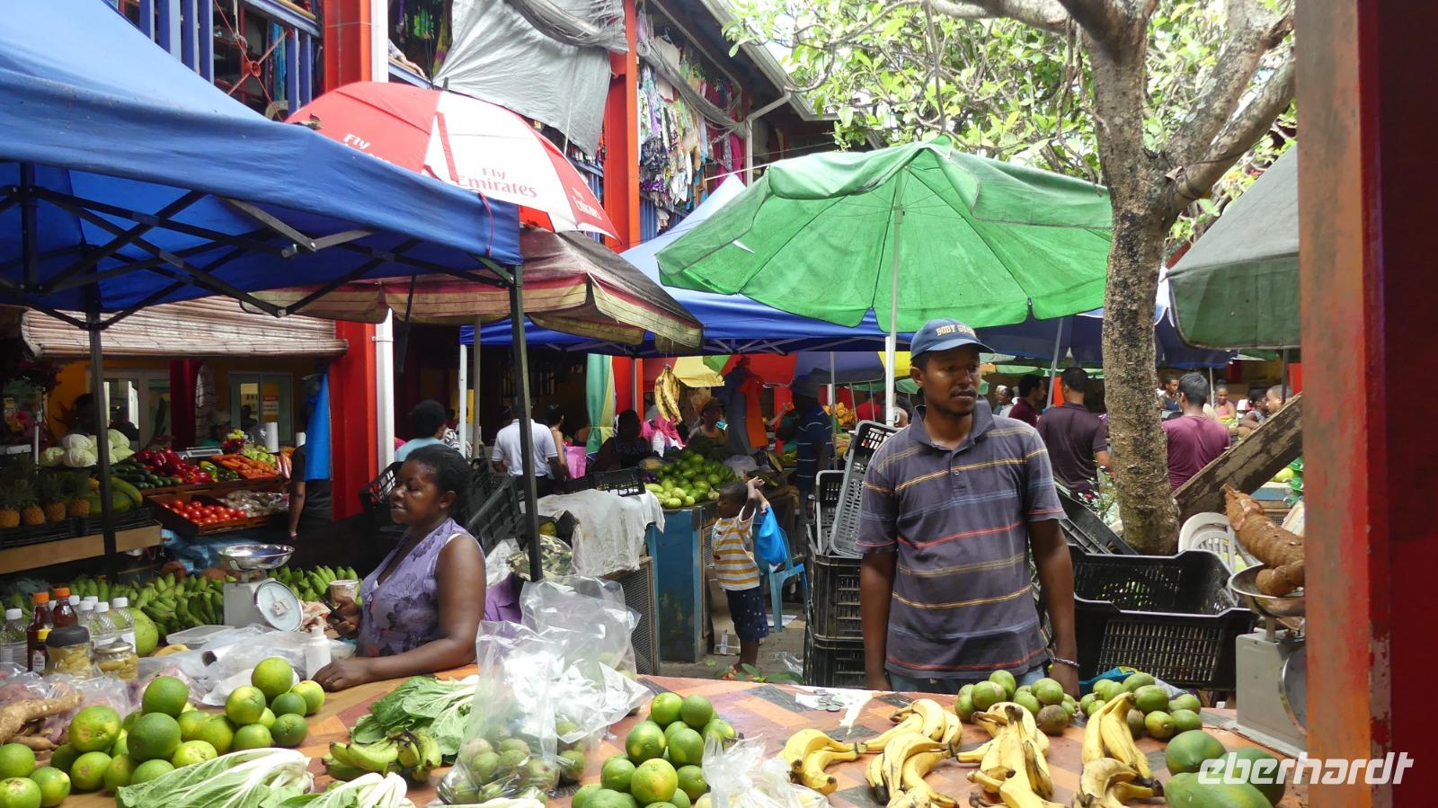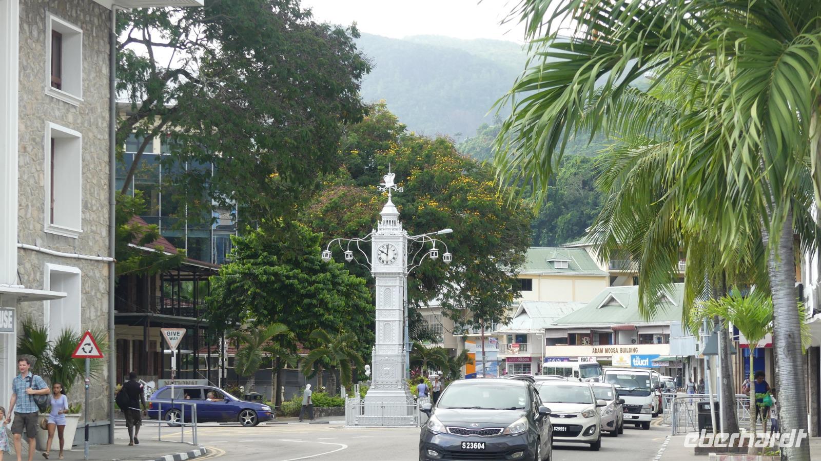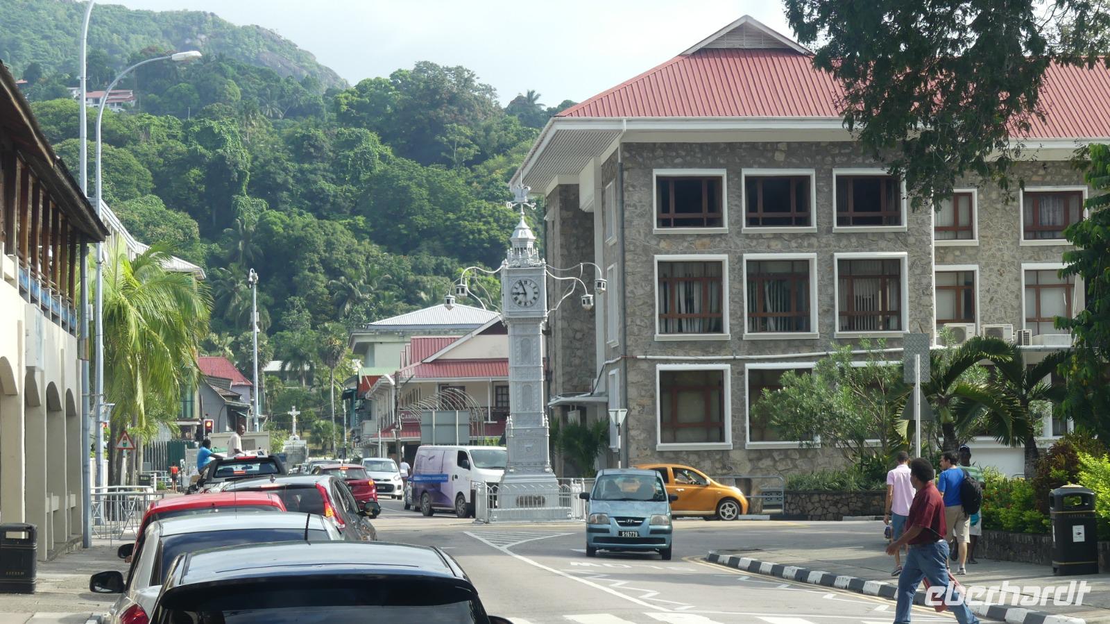 Wahrzeichen Victorias ist eine Miniaturausgabe des Big Ben, der auf der Kreuzung der beiden Hauptverkehrsstraßen aufgestellt ist. Nach einer Frühstückspause erkunden wir Victoria zu Fuß: auf dem Markt werden Fisch, Früchte wie Papaya, Kokosnüsse oder Passionsfrüchte sowie Gewürze wie zum Beispiel Vanille, Zimt und verschiedene Currys angeboten. Vieles stammt aus der Region, manches kommt auch von Madagaskar.