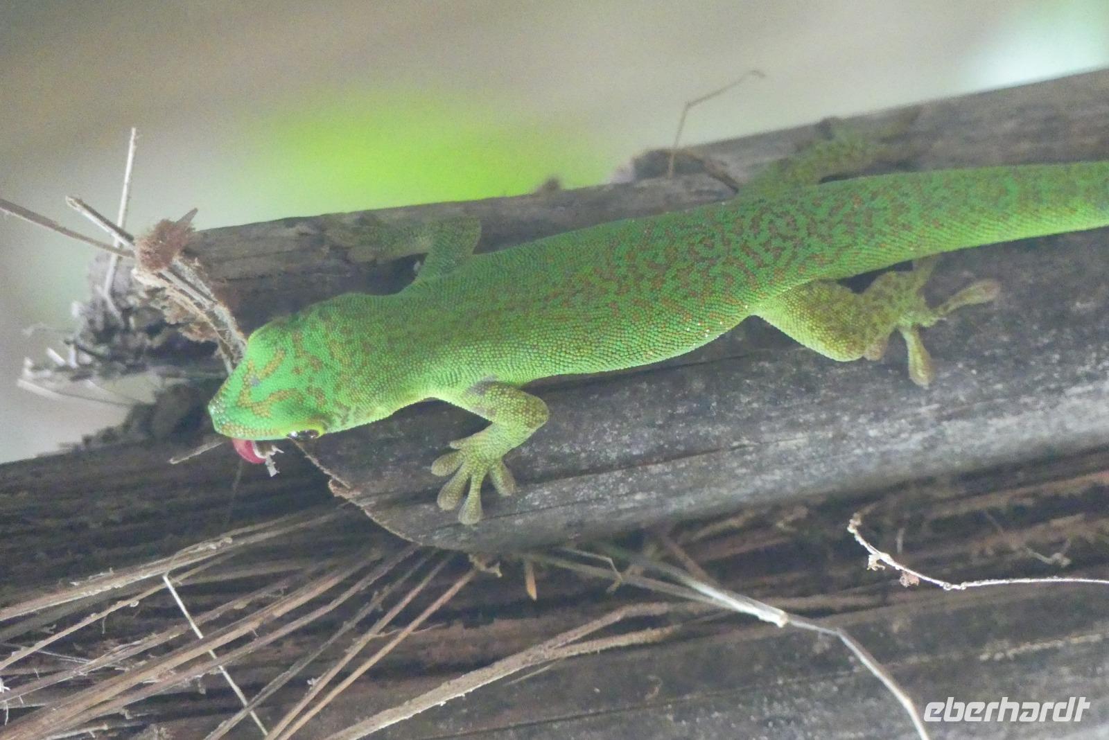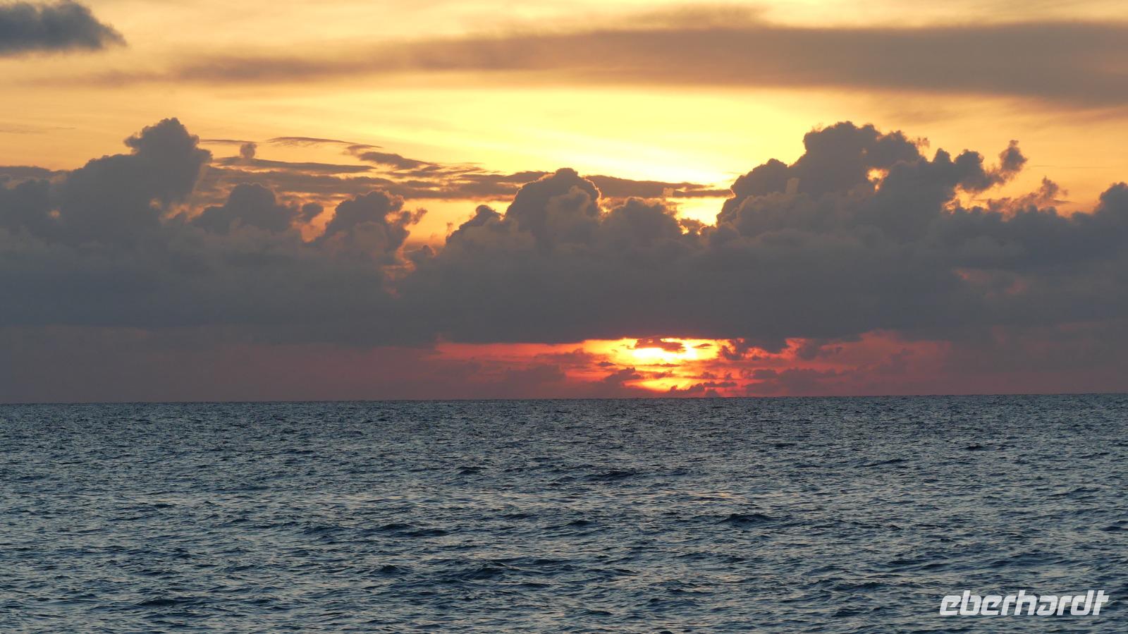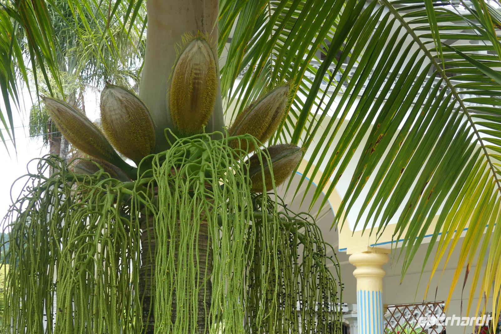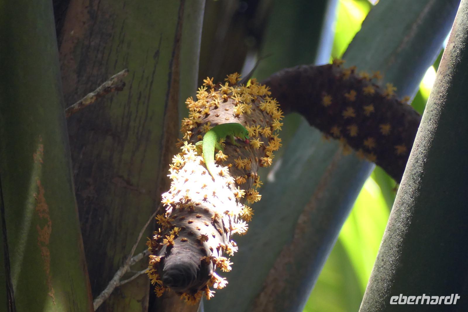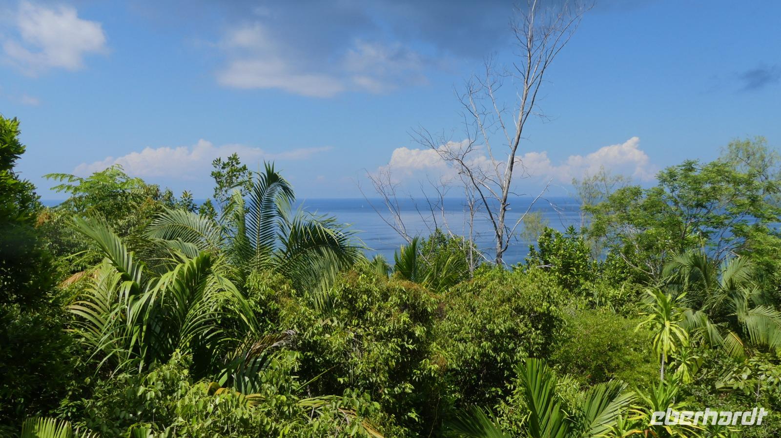Der heutige Tag steht ganz im Zeichen von Entspannung. Den Strand nach links oder rechts erkunden? Ich entscheide mich mit einigen Gästen dafür, nach rechts zu laufen, wo wir an einem schmalen langgezogenen Strand gut wandern können. Hier findet sich auch eine Kokospalme die voll dieses Idealbild erfüllt - tief zum Meer geneigt mit Palmenwedeln die das Wasser berühren.