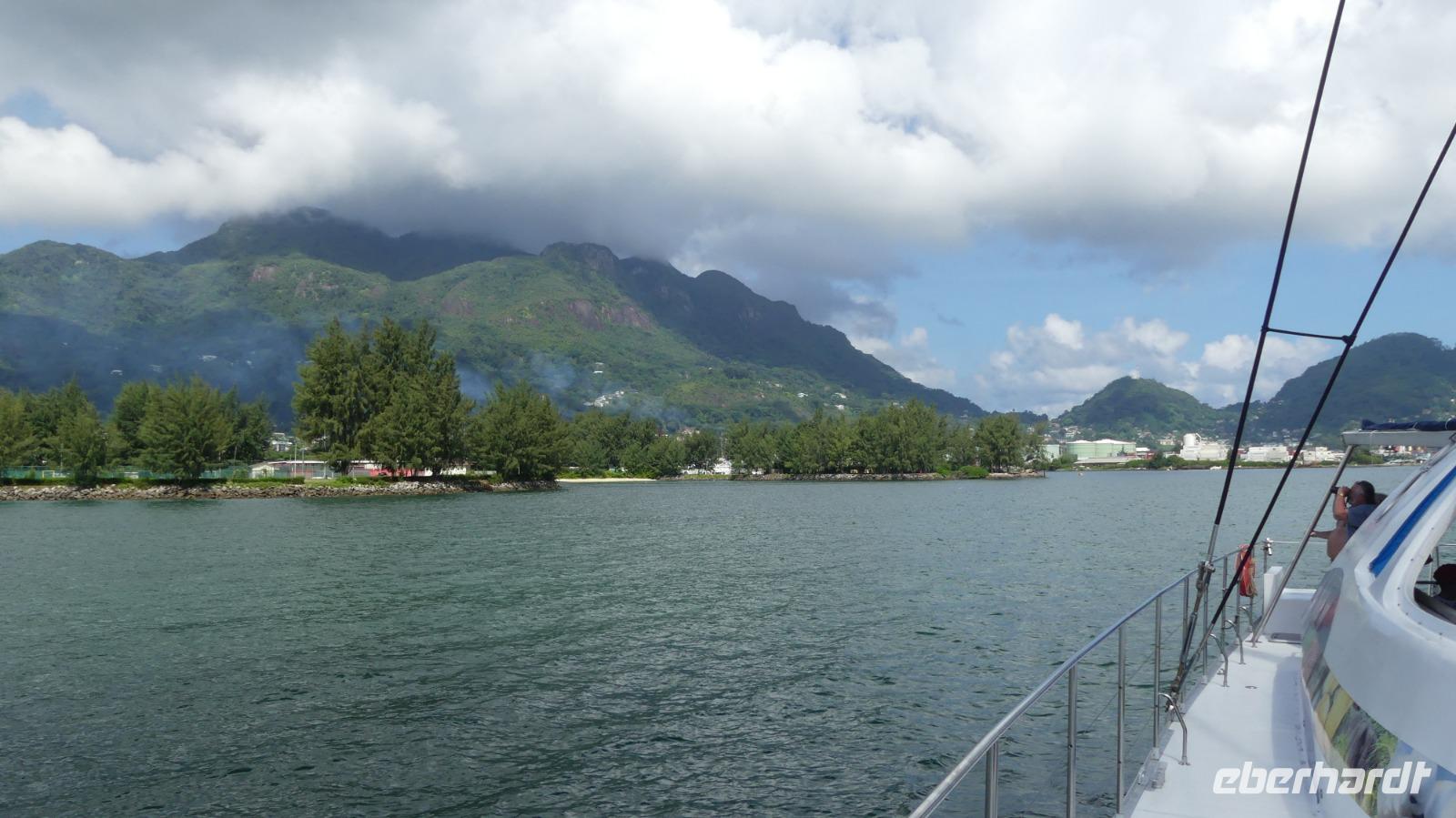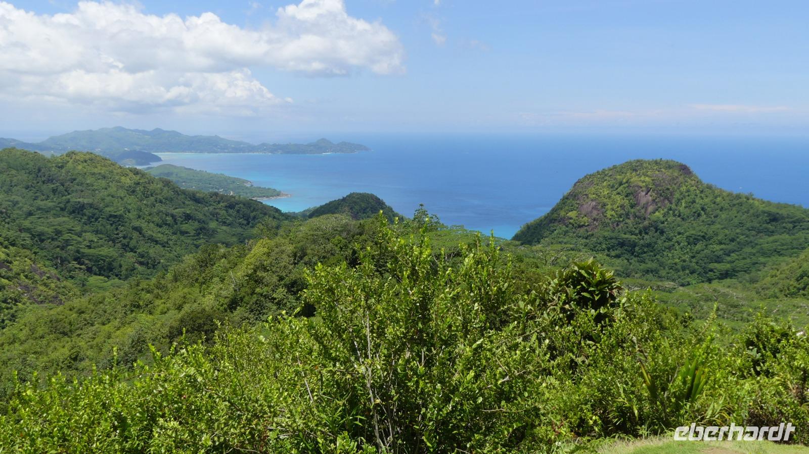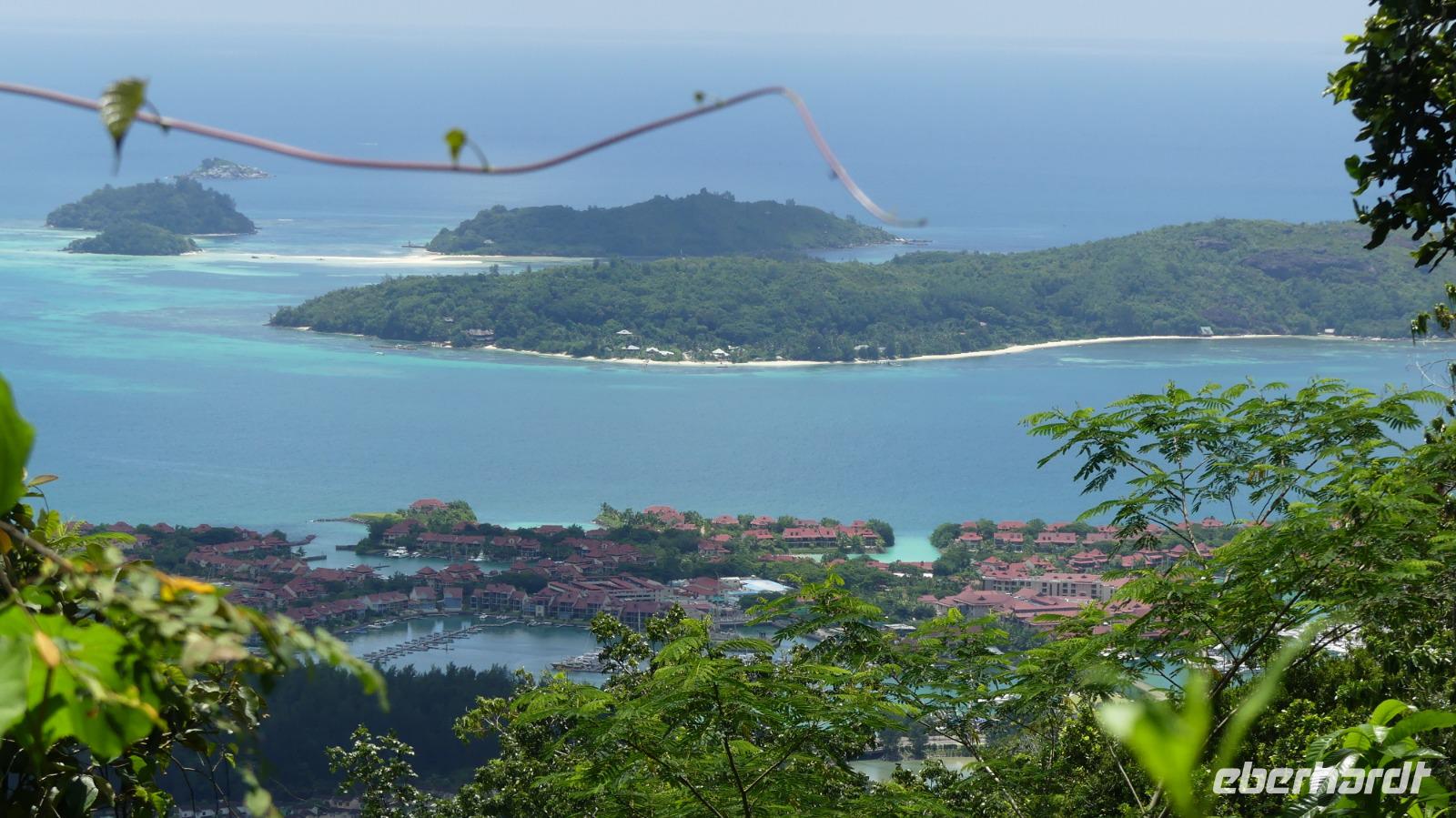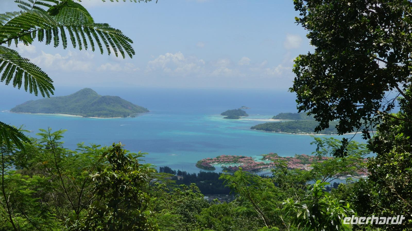 Zum Mittagessen sind wir im Marie Antoinette Restaurant in Victoria. Es gibt drei Sorten Fisch - Red Snapper, Thun- und Papageienfisch sowie kreolische Salate wie Mango- und Papayasalat. Die Zeit bis zur Abfahrt unserer Fähre überbrücken wir mit einem Abstecher zu einem weiteren Aussichtspunkt, dieses Mal mit Blick auf die Ostküste, den St. Anne Marine National Park sowie Praslin und La Dique.