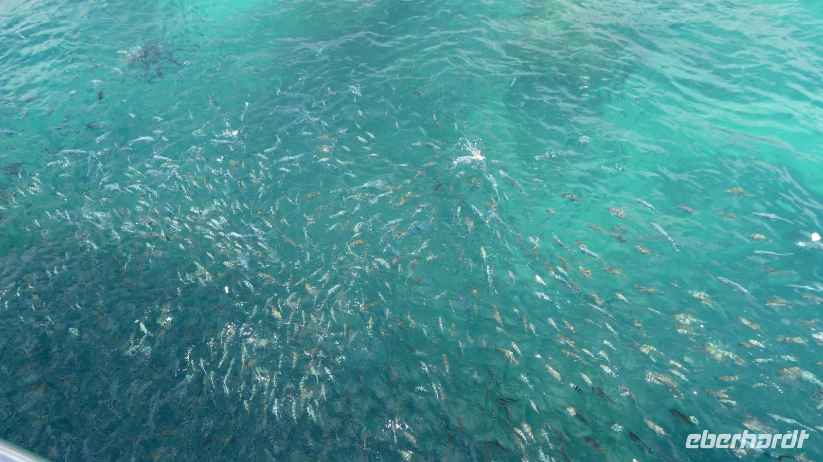 Anschließend beim Schnorcheln beobachten wir bei besseren Sichtverhältnissen zahlreiche Fische.