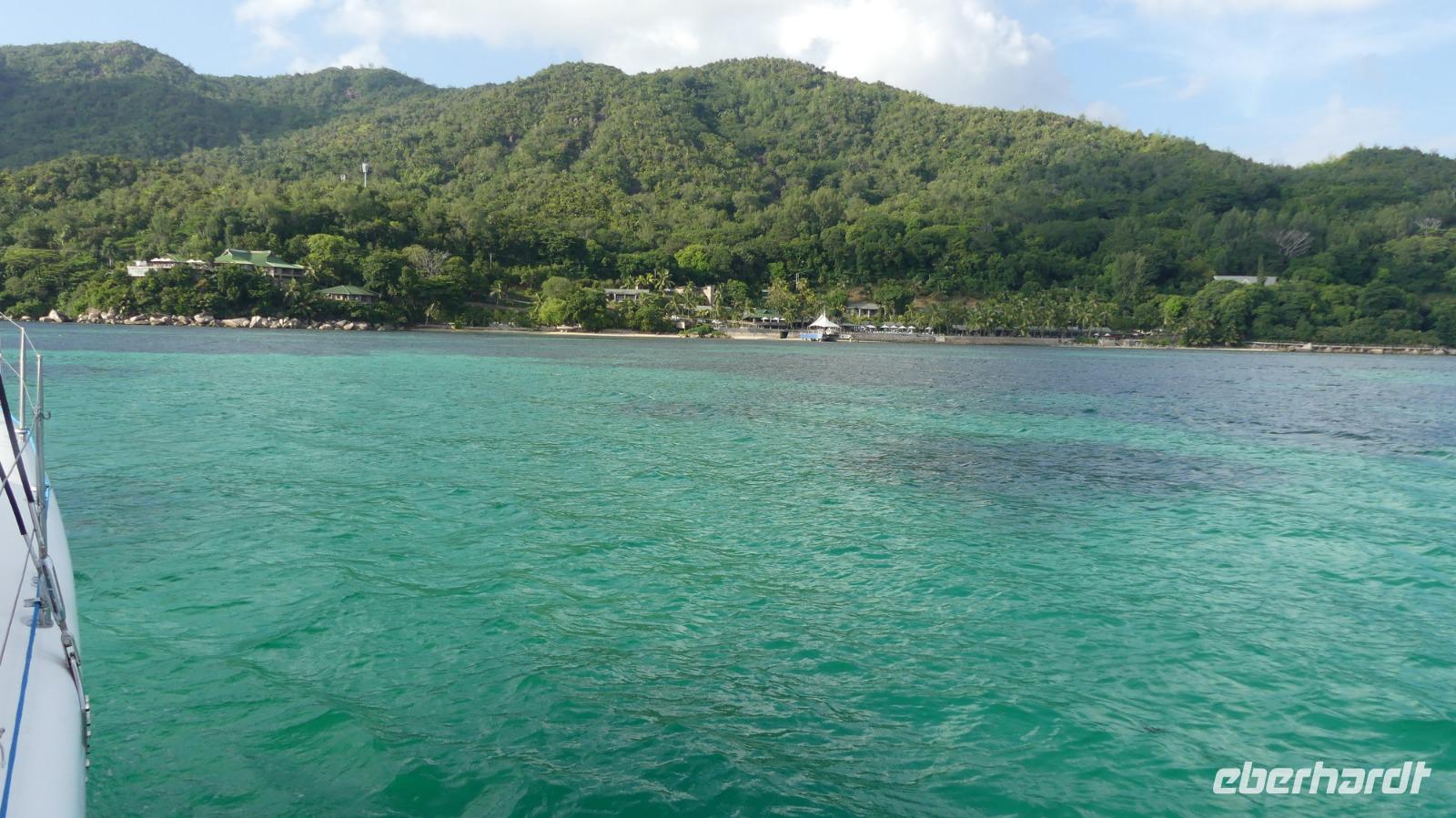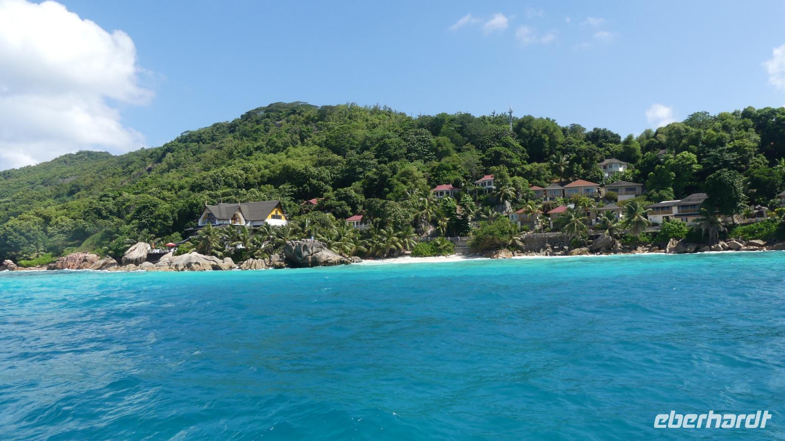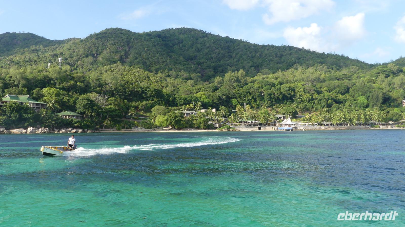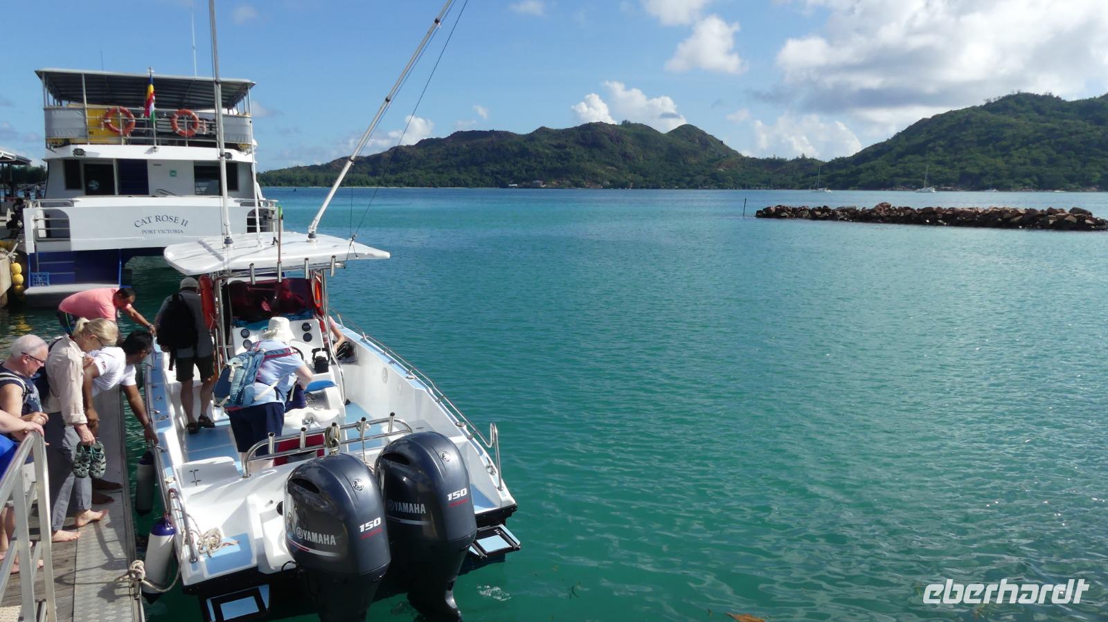 Die Schnellfähre benötigt eine Stunde bis Praslin. Vom sogenannten Jetty, der Anlegestelle sind es nur ein paar Minuten Fahrt bis zu unserem schönen Hotel Coco de Mer.
