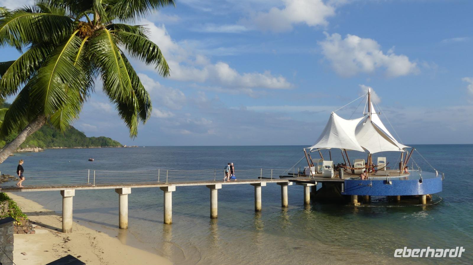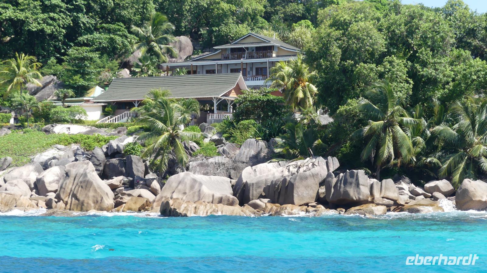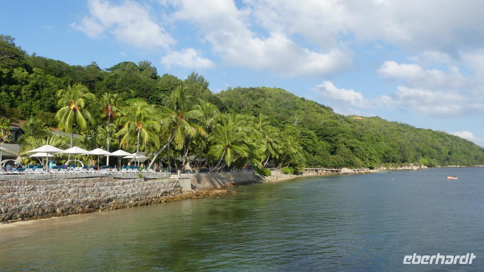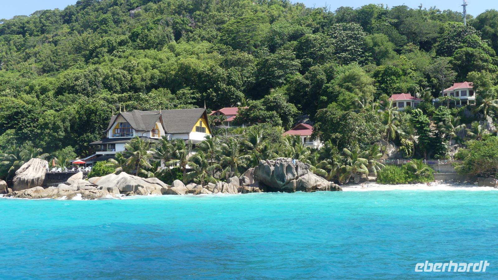 Die Schnellfähre benötigt eine Stunde bis Praslin. Vom sogenannten Jetty, der Anlegestelle sind es nur ein paar Minuten Fahrt bis zu unserem schönen Hotel Coco de Mer.