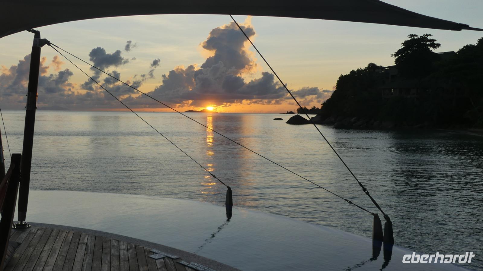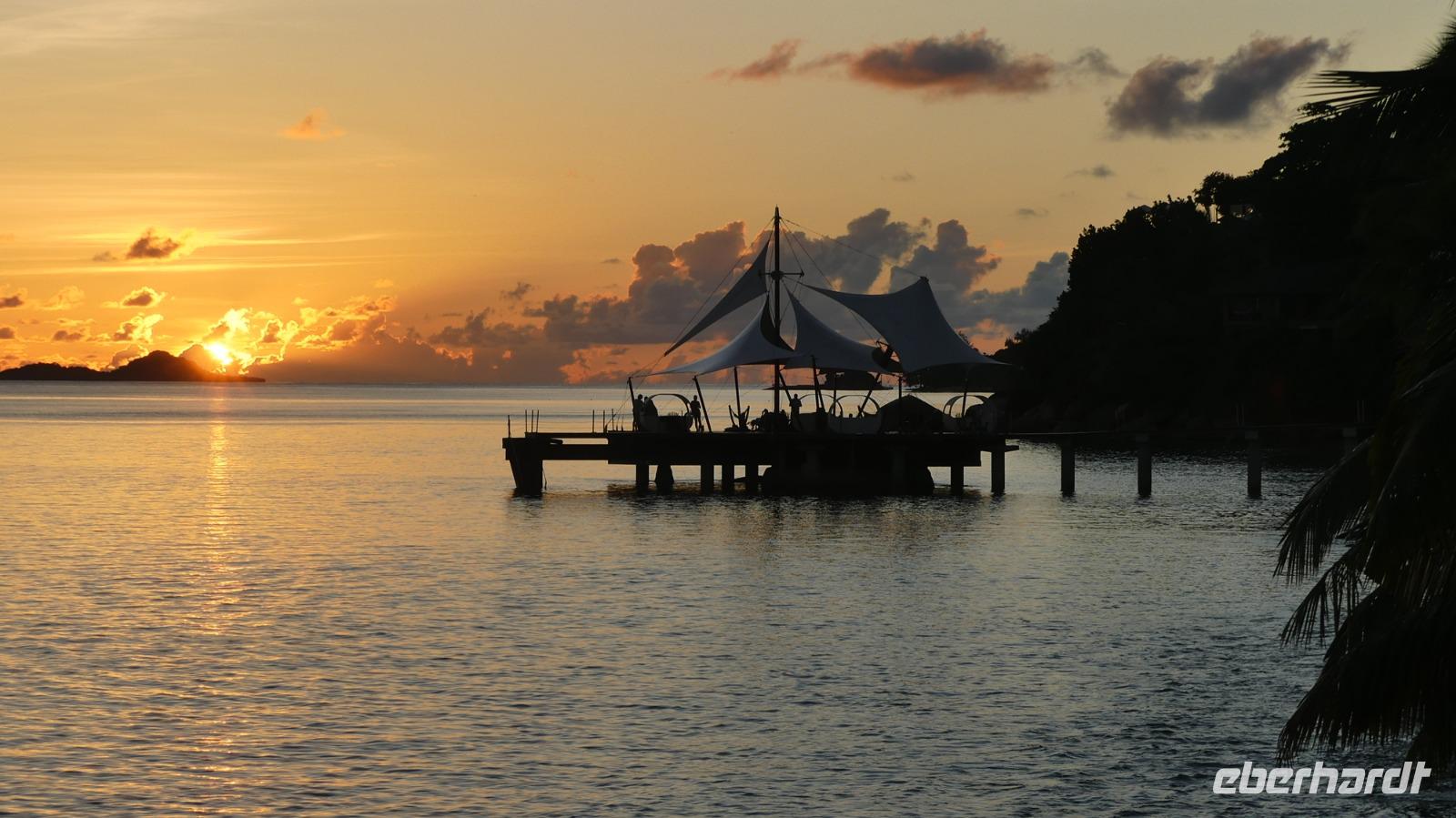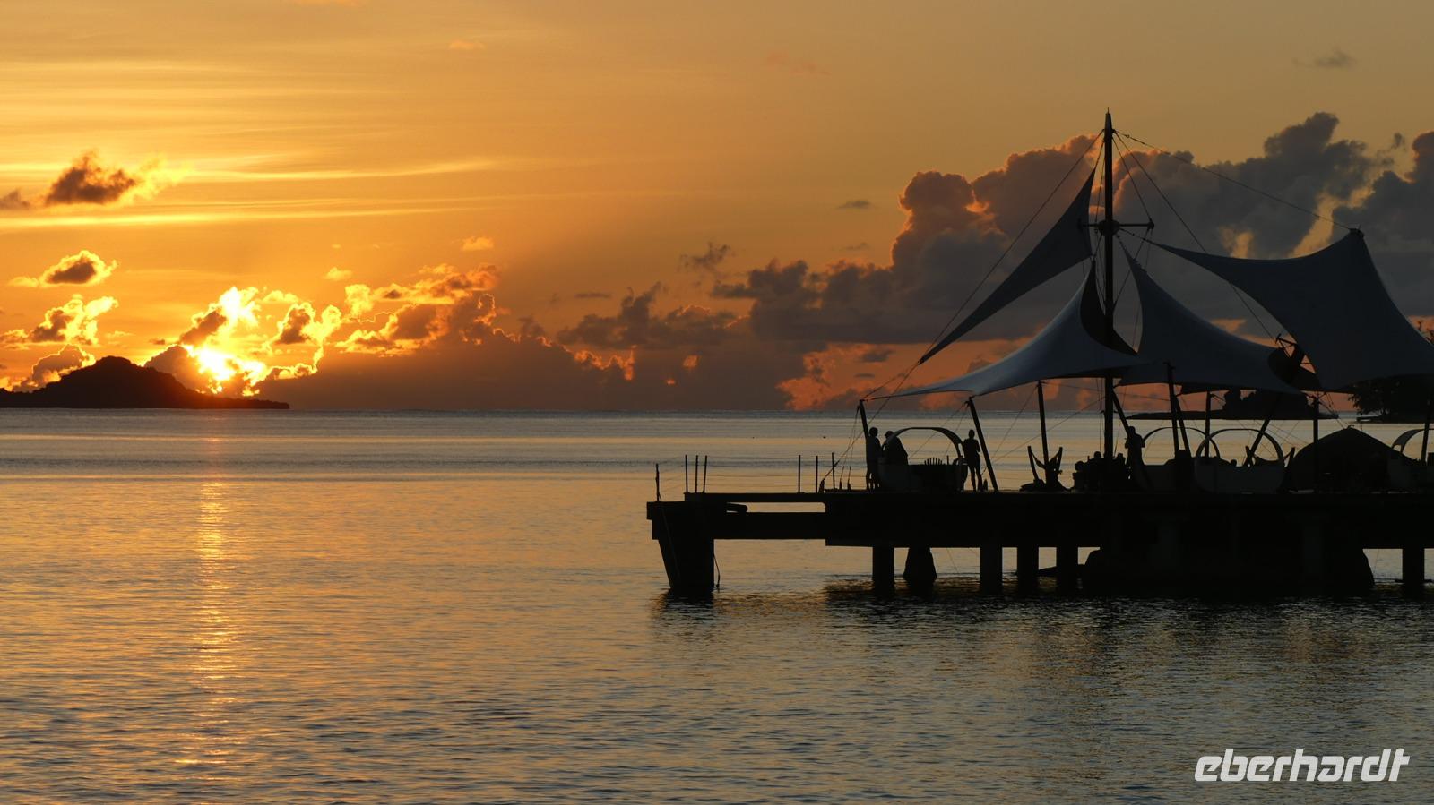 Am Abend im Hotel feiern wir an unserem Lieblingsplatz Geburtstag mit Takamaka-Rum und Mangosaft :-).