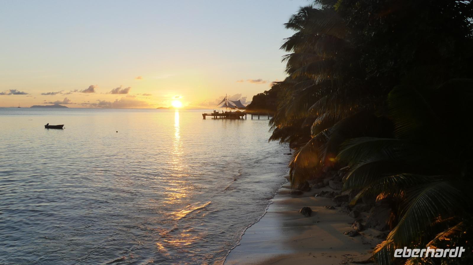 Wer gut zu Fuß ist, umrundet mit mir die Ile Moyenne. Der Inselrundgang bietet tolle Aussichten auf das Meer, andere Inseln und Traumbuchten, eine schöner als die andere. Anahita, unser Katamaran, bringt uns am Nachmittag wieder zurück nach Victoria. Von da aus ist es nur eine kurze Fahrt zum Strandhotel auf der Westseite, der richtige Ort um den Sonnenuntergang zu genießen.
