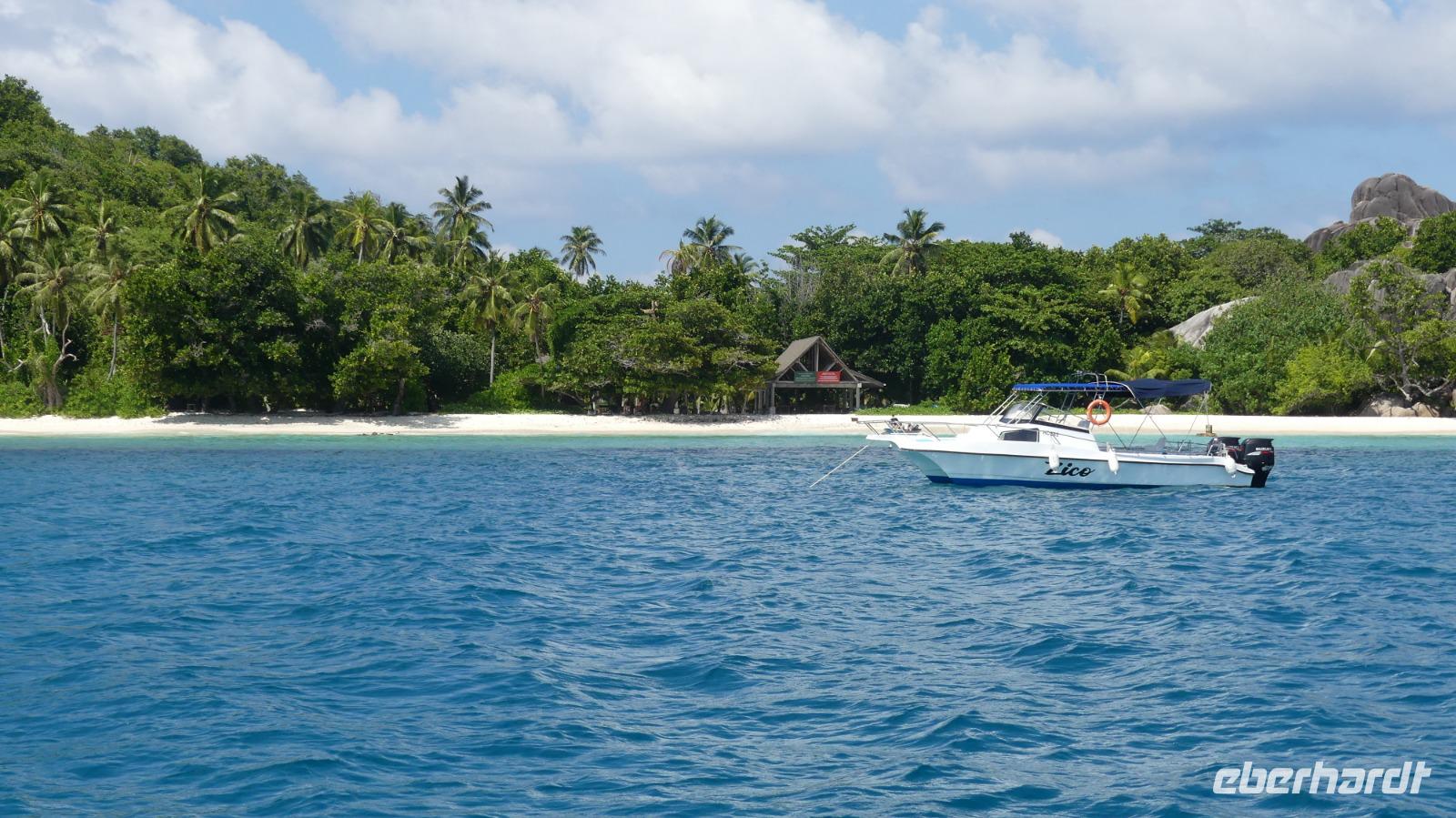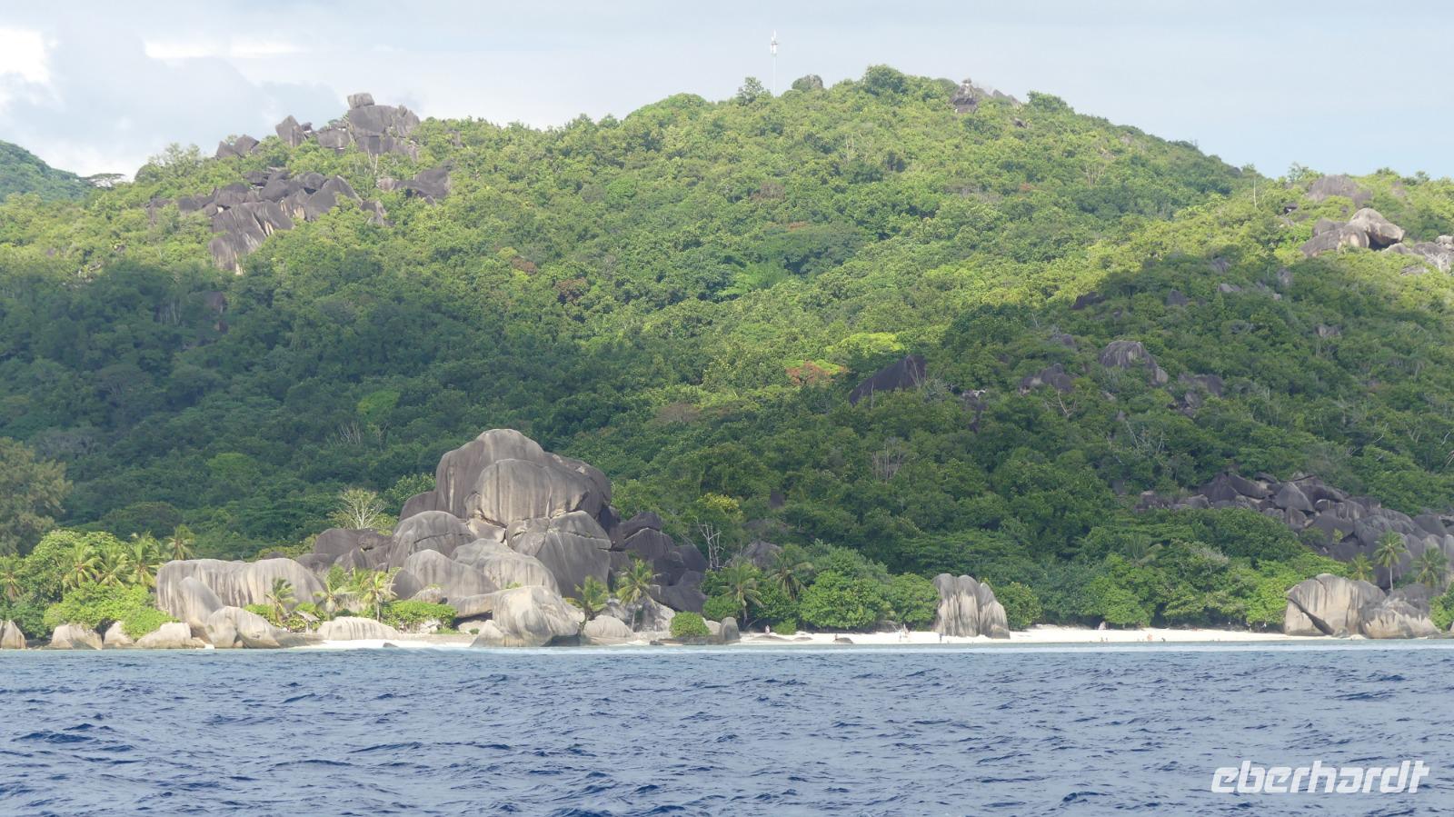 Der Oststrand ist einer der schönsten, den wir auf unserer Reise sehen. Eingerahmt von Granitfelsen strahlen die Farben des türkisblauen Wassers, des weißen Korallensandes und der üppig grünen Sträucher. Zum Mittagessen genießen wir den frisch gegrillten Fisch und die Aussicht auf Strand und Meer. Nach dem Essen verlassen wir diese wunderschöne Insel und Steuern Coco Island an. Die eigenwillige Anordnung der Granitfelsen verleiht Coco ein ganz besonderes Aussehen. Wir halten vor Coco zum Schnorcheln. Unser letztes Ziel heute ist die Privatinsel Félicité, wo einige reiche Fußballer ein Domizil haben und wir zum Schnorcheln halten.