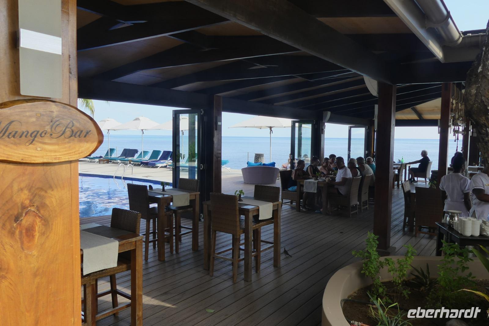 Bis zu unserer Abreise am Nachmittag können wir die Einrichtungen des Hotels noch nutzen. Auch den 16 Uhr Kaffee bzw. Tee können wir noch ein letztes Mal genießen. Das Personal kennt uns inzwischen gut und weiß, dass wir in der Mango Bar gemeinsam an einer großen Tafel sitzen möchten :-).
