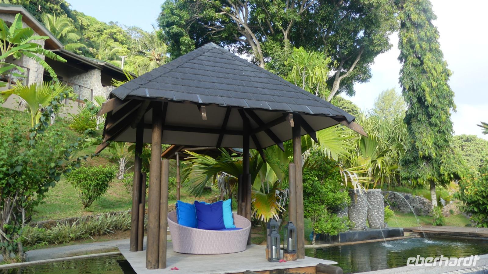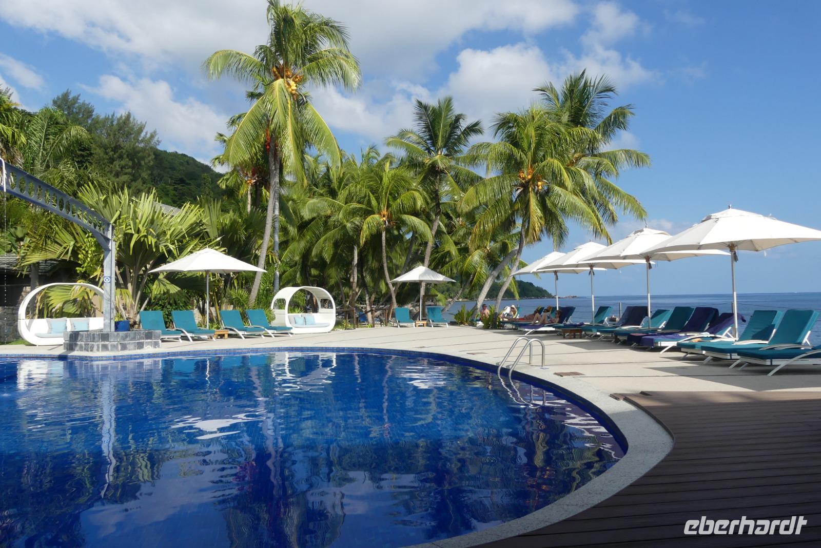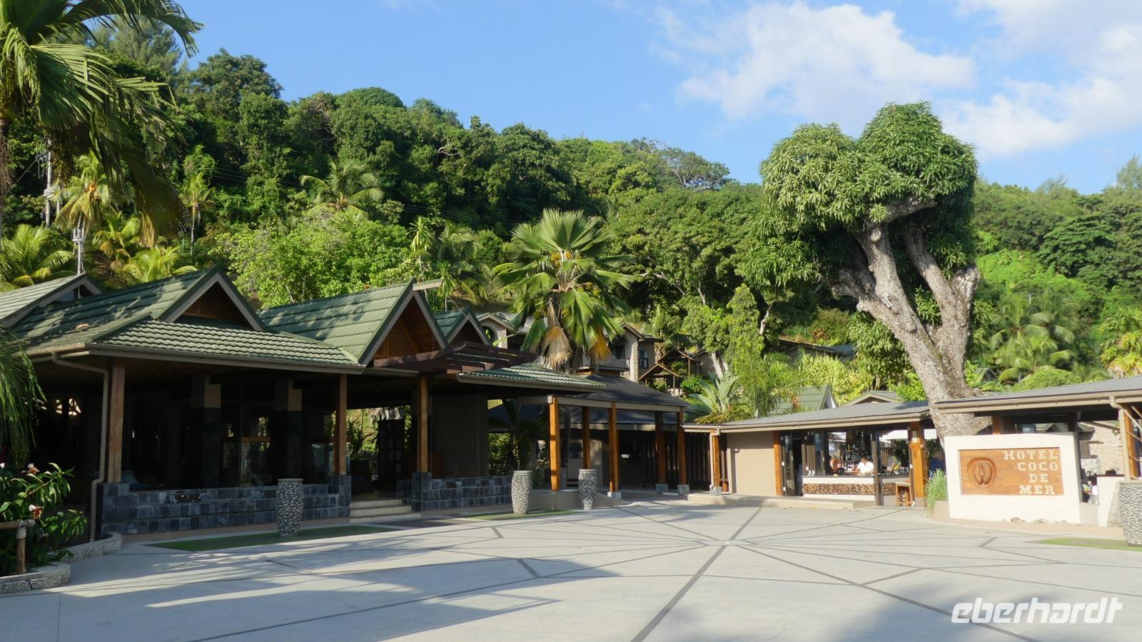 Im Hotel kann man sich gut an einem der Pools entspannen. Das Coco de Mer Hotel hat einen Süßwasser- und einen Salzwasserpool. Letzterer befindet sich auf der Steganlage unter Segeldächern, ist gekühlt und bietet den perfekten Blick auf den Sonnenuntergang. Auch die über 80 Hektar große Gartenanlage will erkundet sein. Kokospalmen, Mangobäume, Coco de Mer Palmen, Hibiskussträucher u. v. m. zieren die Anlage. Flughunde fühlen sich auch sehr wohl und lassen sich besonders die Mangos schmecken.