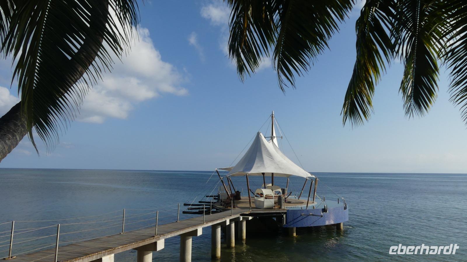 Nach dem Abendessen wird der Platz unter den Sonnensegeln auf dem Steg unser Lieblingstreffpunkt. Am Abendhimmel betrachten wir gern die Milchstraße und das Kreuz des Südens.