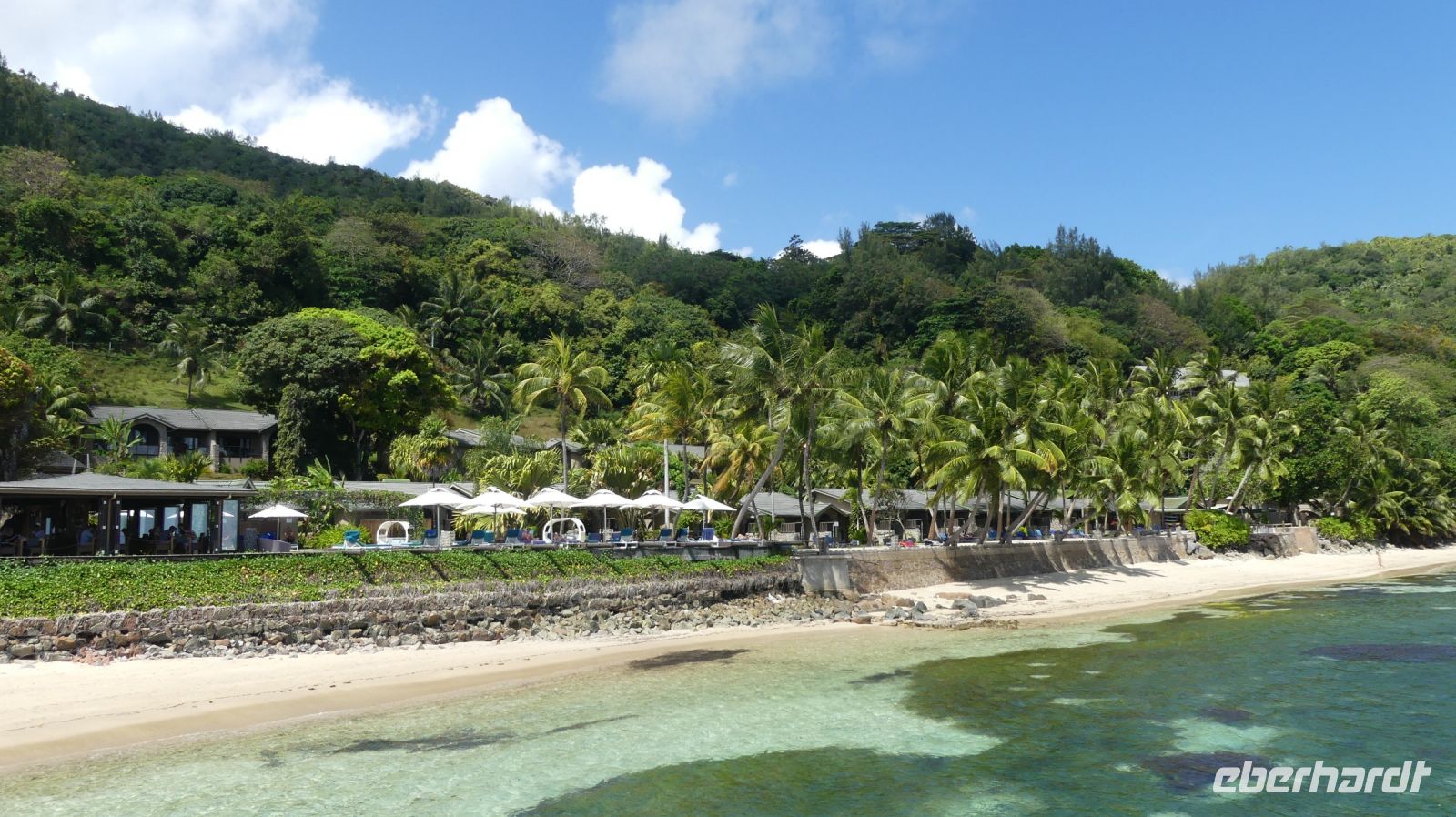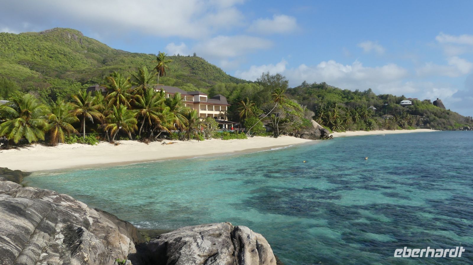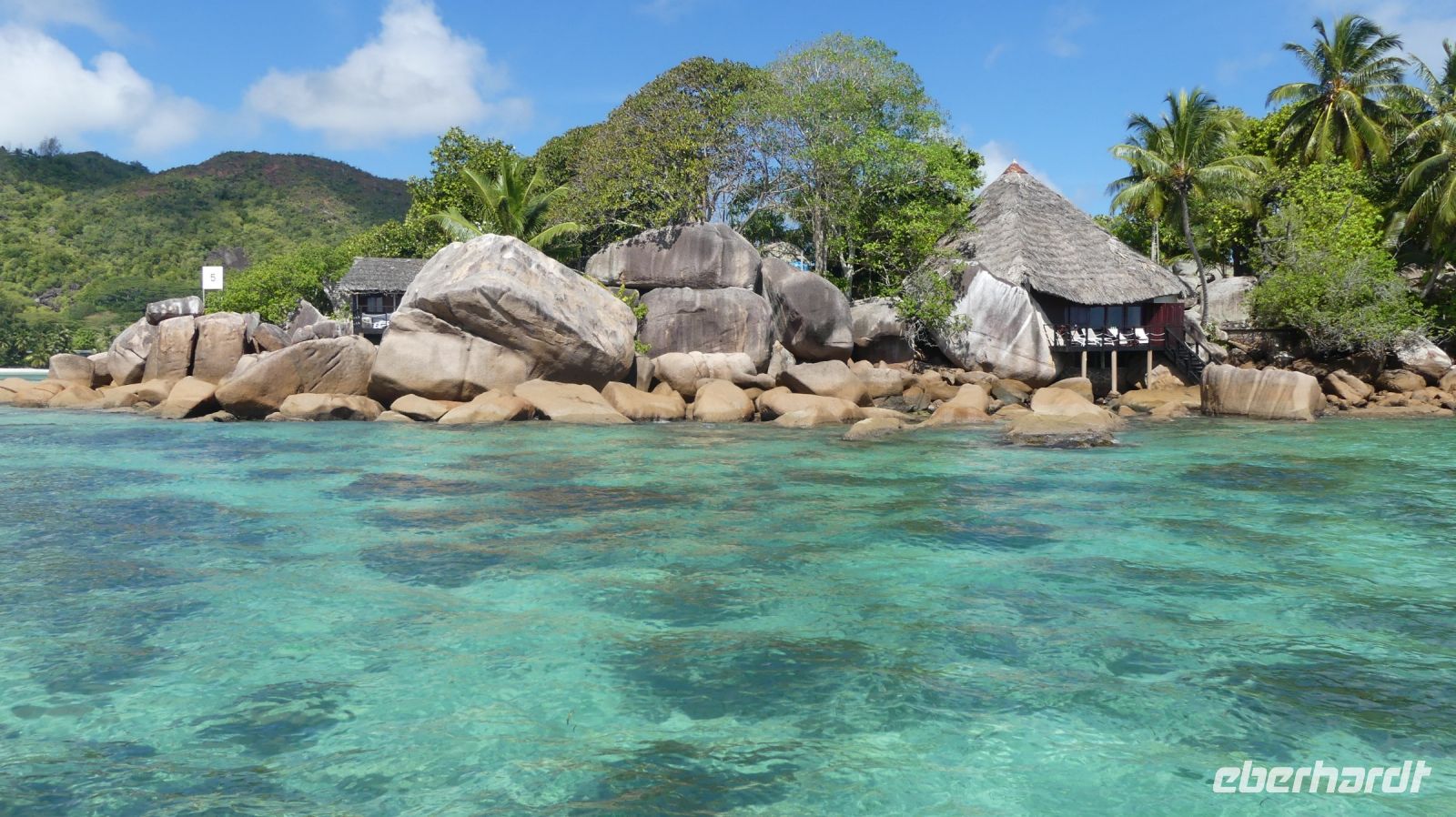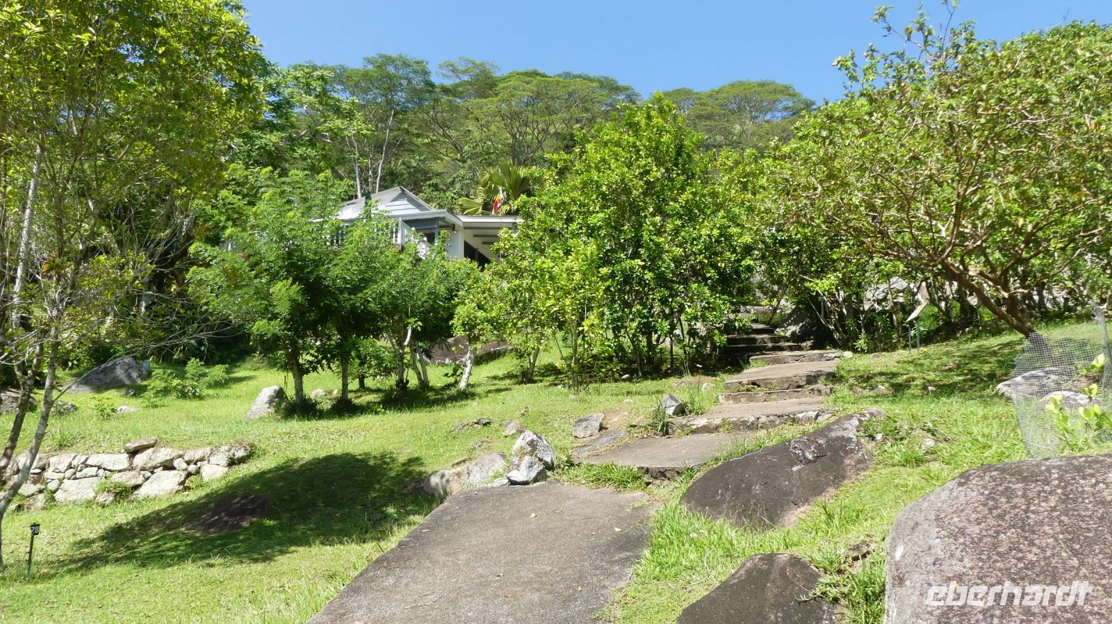 Von der Anlegestelle auf Praslin sind es nur ein paar Minuten Fahrt bis zu unserem schönen Hotel Coco de Mer.