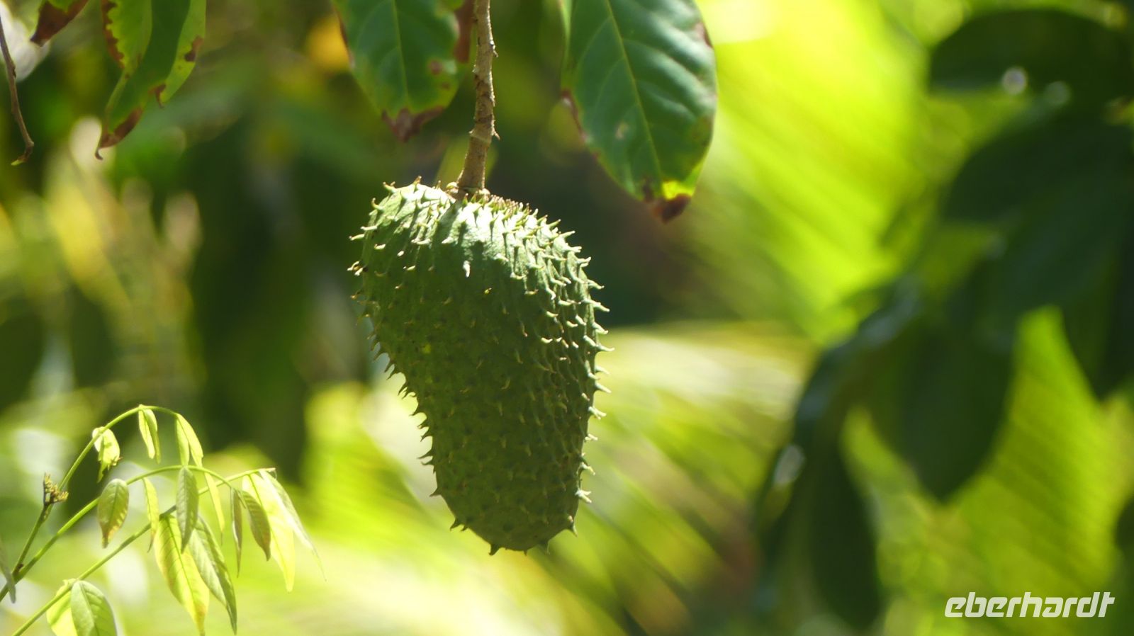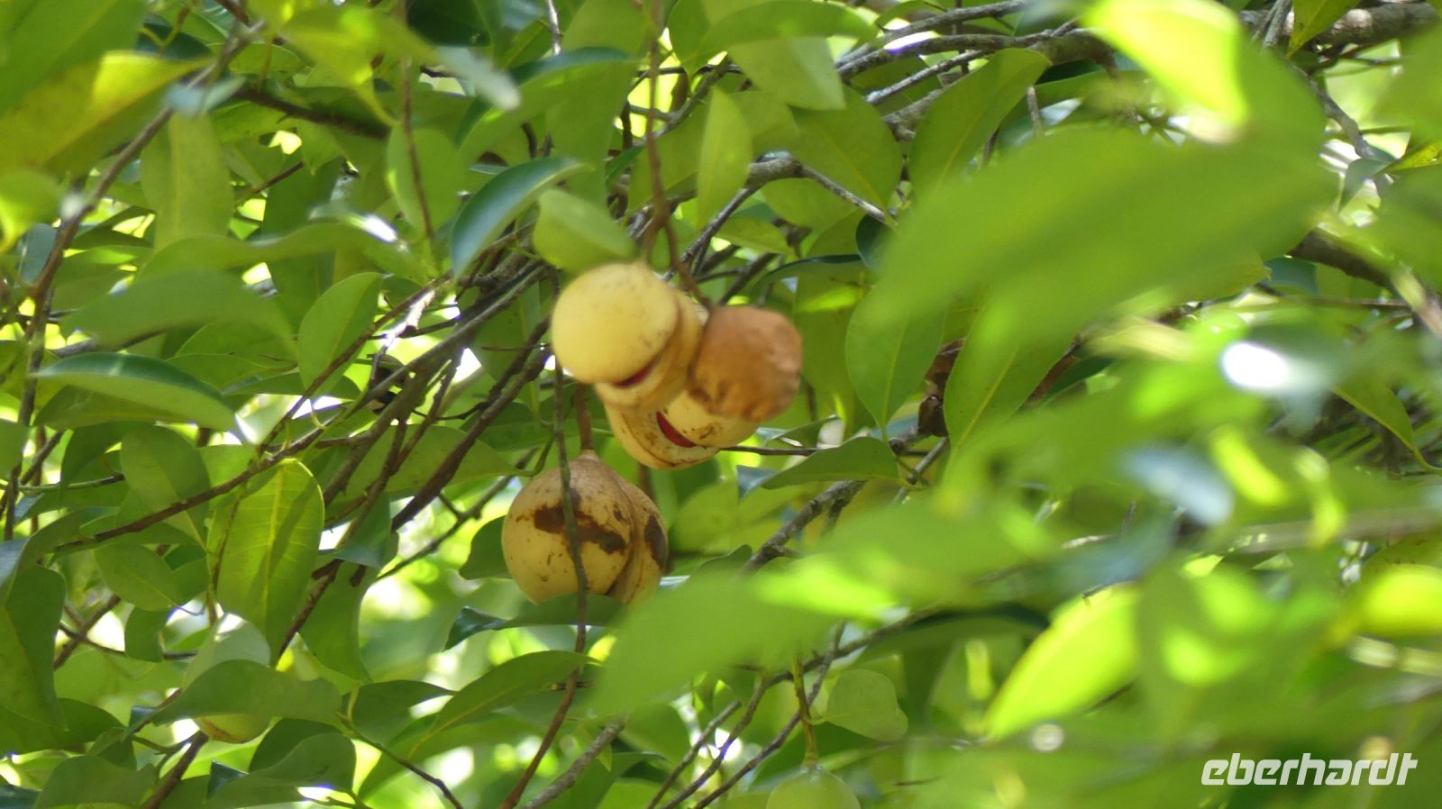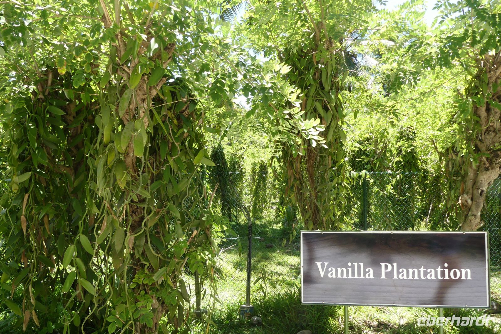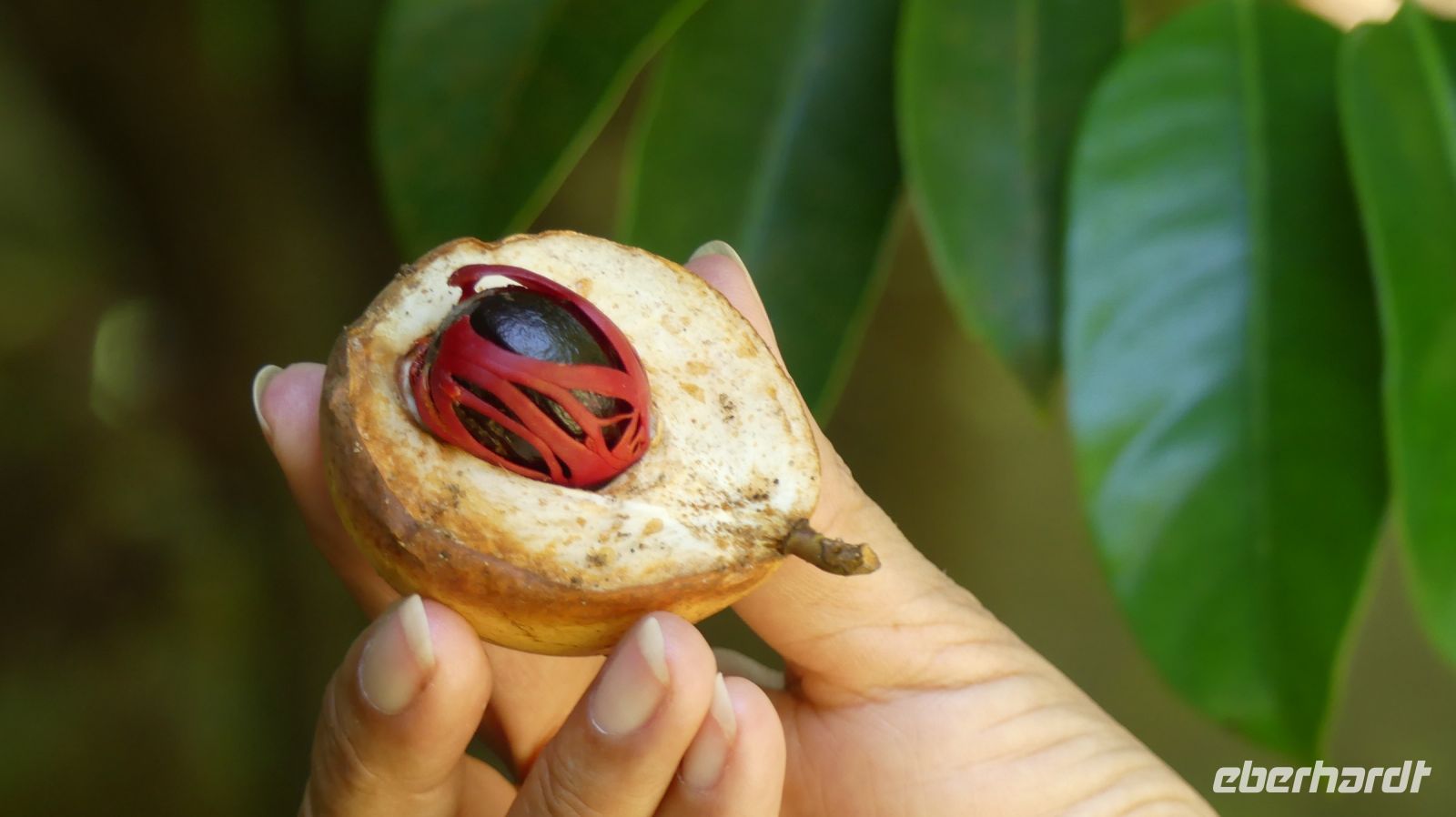 Am Morgen gibt es für Frühaufsteher einen schönen Sonnenaufgang. Wir verlassen unser schönes Hotel im Südosten der Insel und beginnen unsere Inselrundfahrt mit einer Zugabe, dem „Jardin du Roi“, königlicher Gewürzgarten. Nach einem Anstieg von gefühlten 40 % erreichen wir das kleine Paradies in den Bergen. Dem Namen als Gewürzgarten alle Ehre machend, finden wir hier Vanille, Zimt, Pfeffer, Zitronengras, Nelken, den Viergewürzestrauch und Muskatnuss. Letztere kann man mit etwas Suchen unter dem Muskatbaum sammeln. Aber es ist nicht nur ein Gewürzgarten, auch Obstbäume wie Karambola und verschiedene Zitrusfrüchte sowie viele Heilpflanzen wachsen hier. Da verfügt Cyril über ein großes Wissen und erklärt, welche Pflanze bei bestimmten Krankheiten angewandt wird. Ein Wissen, das bei der jüngeren Generation schon oft nicht mehr vorhanden ist. Dabei ist die Zubereitung des Heiltrunkes im Prinzip ganz einfach – meistens gilt 7 Blätter 15 Minuten kochen, abkühlen lassen, trinken…??