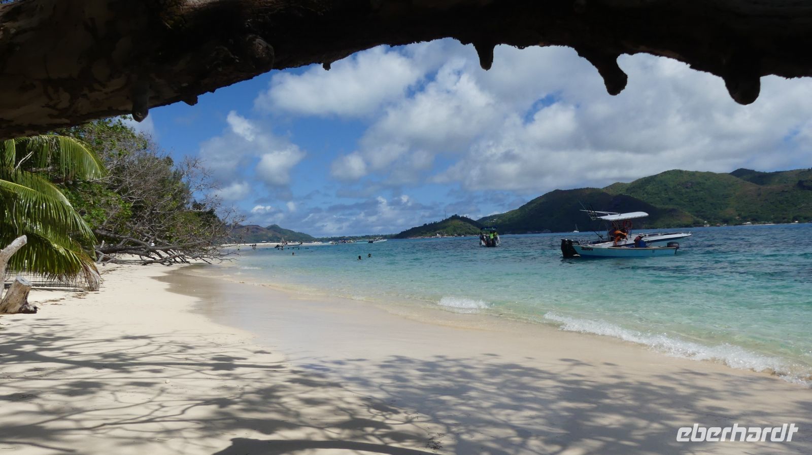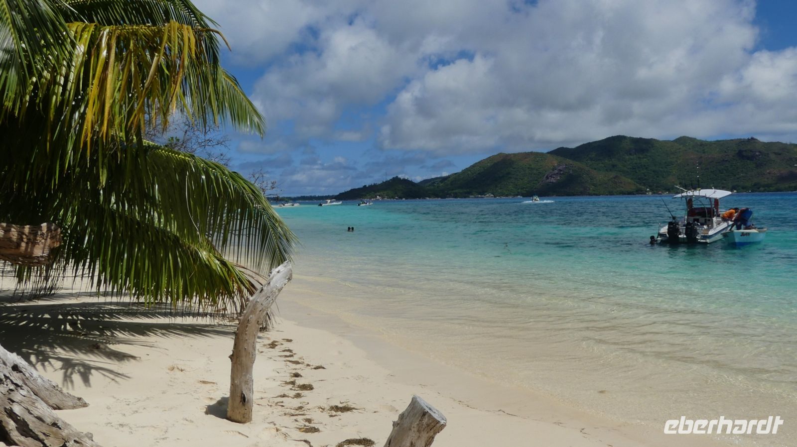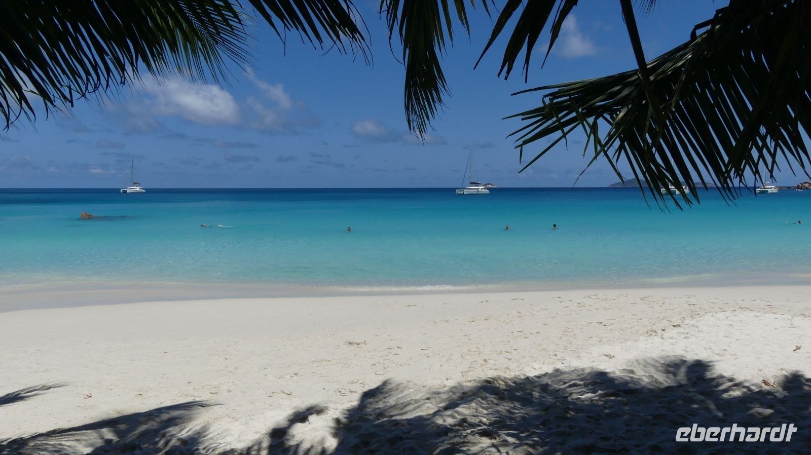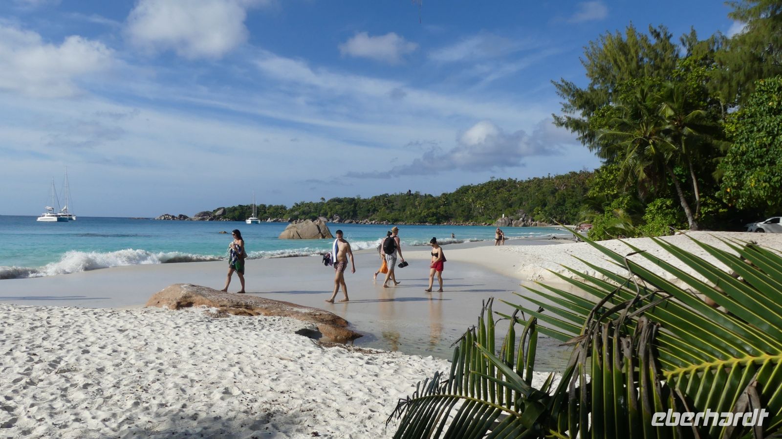 Die Badeverlängerung nutzen wir für zum Teil für weitere Unternehmungen. Da uns der Anse Lazio so gut gefallen hat, buchen wir für den Dienstag Mike´s Kleinbus für einen Tagesausflug zu diesem Traumstrand, Inselrundfahrt inklusive. Das Wetter passt heute perfekt dazu – Sonne und schwacher Wind. Im Rucksack habe ich es etwas zum Lesen dabei. Doch lange Weile kommt nicht auf: Fotografieren, Schnorcheln, Strandspaziergang, Obstimbiss von einem der kleinen Strandstände, nochmal Fotografieren und schon ist es Nachmittag. Einige sehen beim Schnorcheln übrigens Rochen und Meeresschildkröten. Ein toller Tag! Auf der Rückfahrt werden noch die Getränkereserven aufgefüllt und Gewürze gekauft.