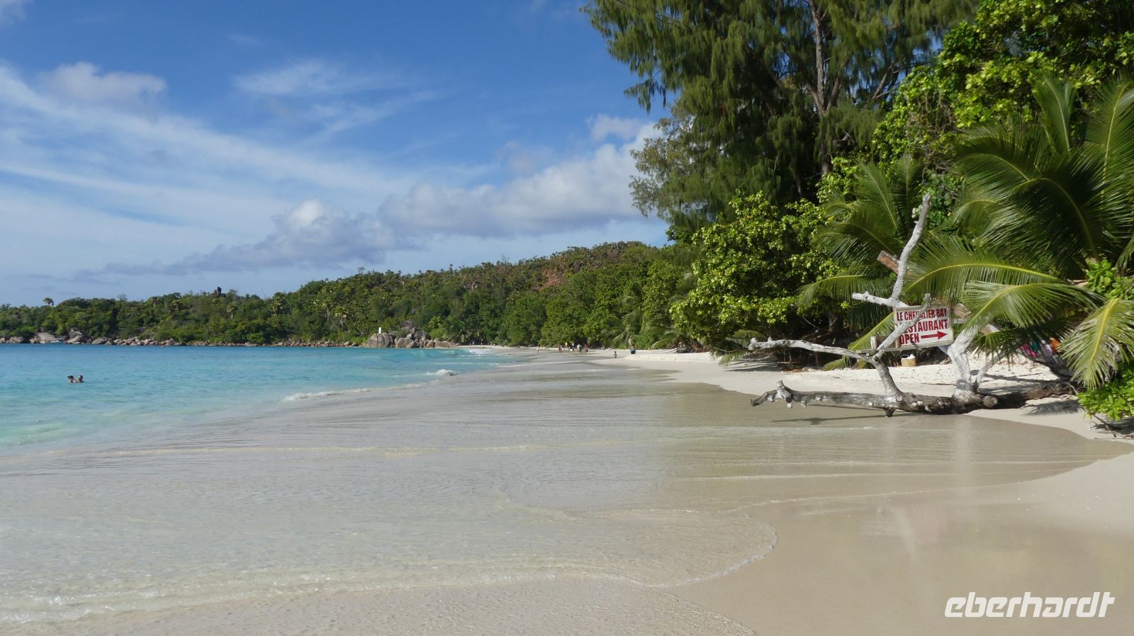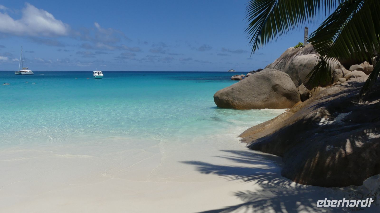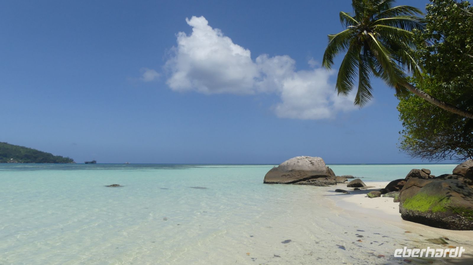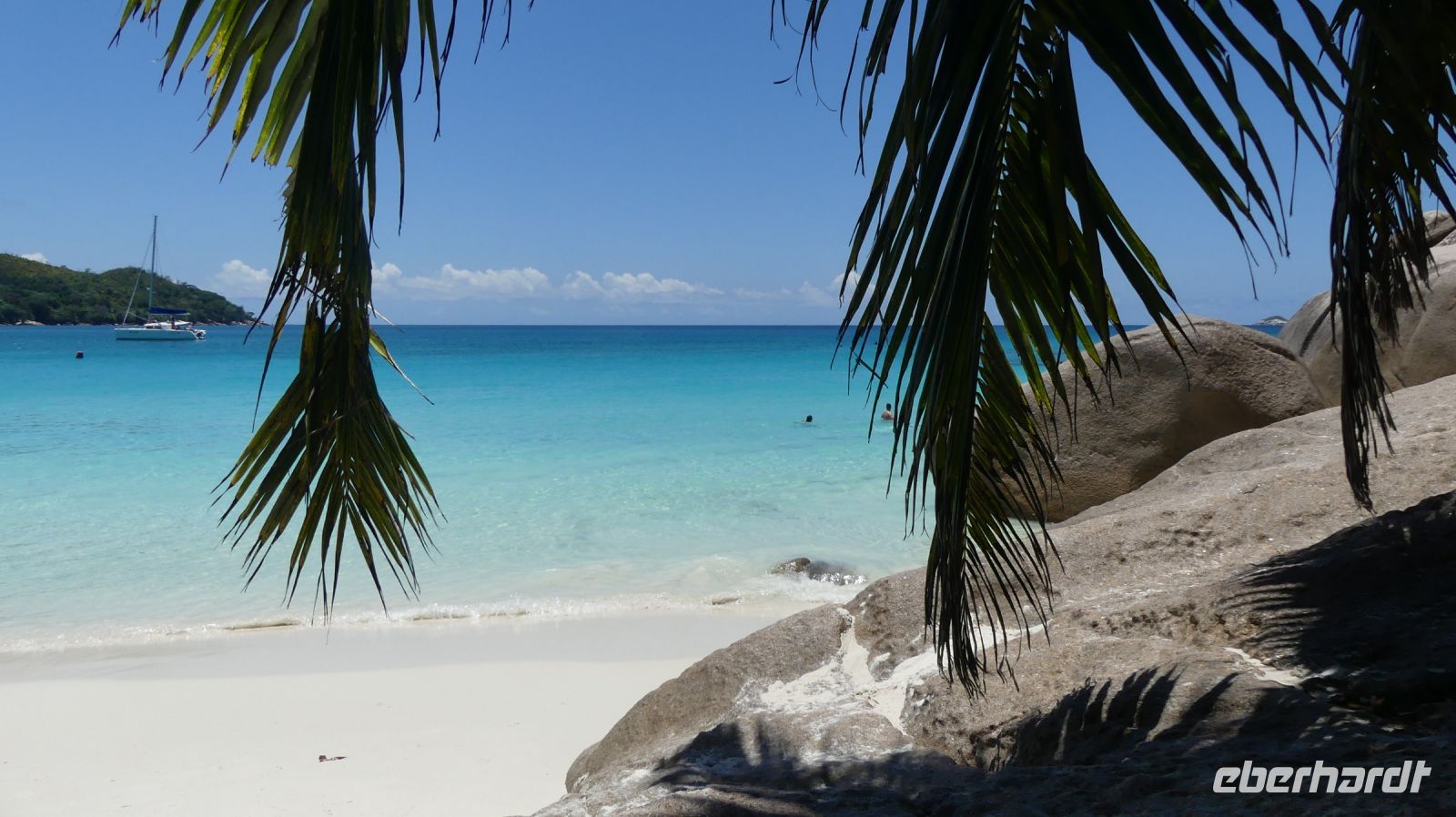 Die Badeverlängerung nutzen wir für zum Teil für weitere Unternehmungen. Da uns der Anse Lazio so gut gefallen hat, buchen wir für den Dienstag Mike´s Kleinbus für einen Tagesausflug zu diesem Traumstrand, Inselrundfahrt inklusive. Das Wetter passt heute perfekt dazu – Sonne und schwacher Wind. Im Rucksack habe ich es etwas zum Lesen dabei. Doch lange Weile kommt nicht auf: Fotografieren, Schnorcheln, Strandspaziergang, Obstimbiss von einem der kleinen Strandstände, nochmal Fotografieren und schon ist es Nachmittag. Einige sehen beim Schnorcheln übrigens Rochen und Meeresschildkröten. Ein toller Tag! Auf der Rückfahrt werden noch die Getränkereserven aufgefüllt und Gewürze gekauft.