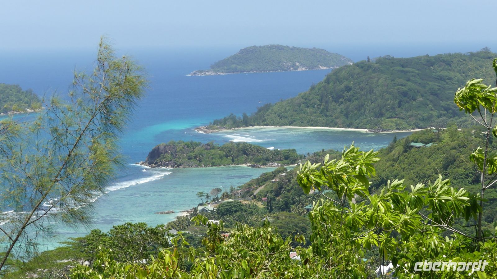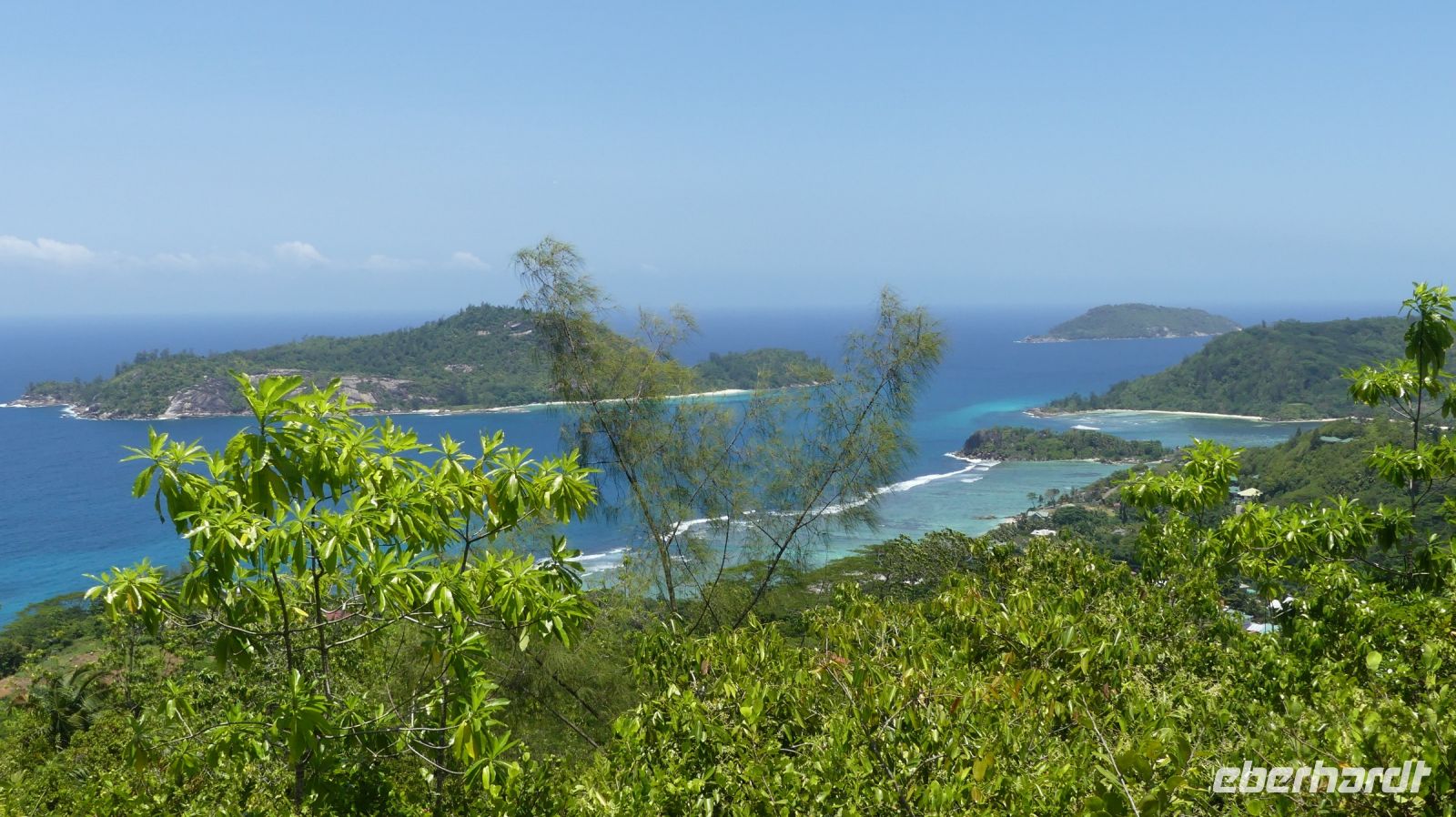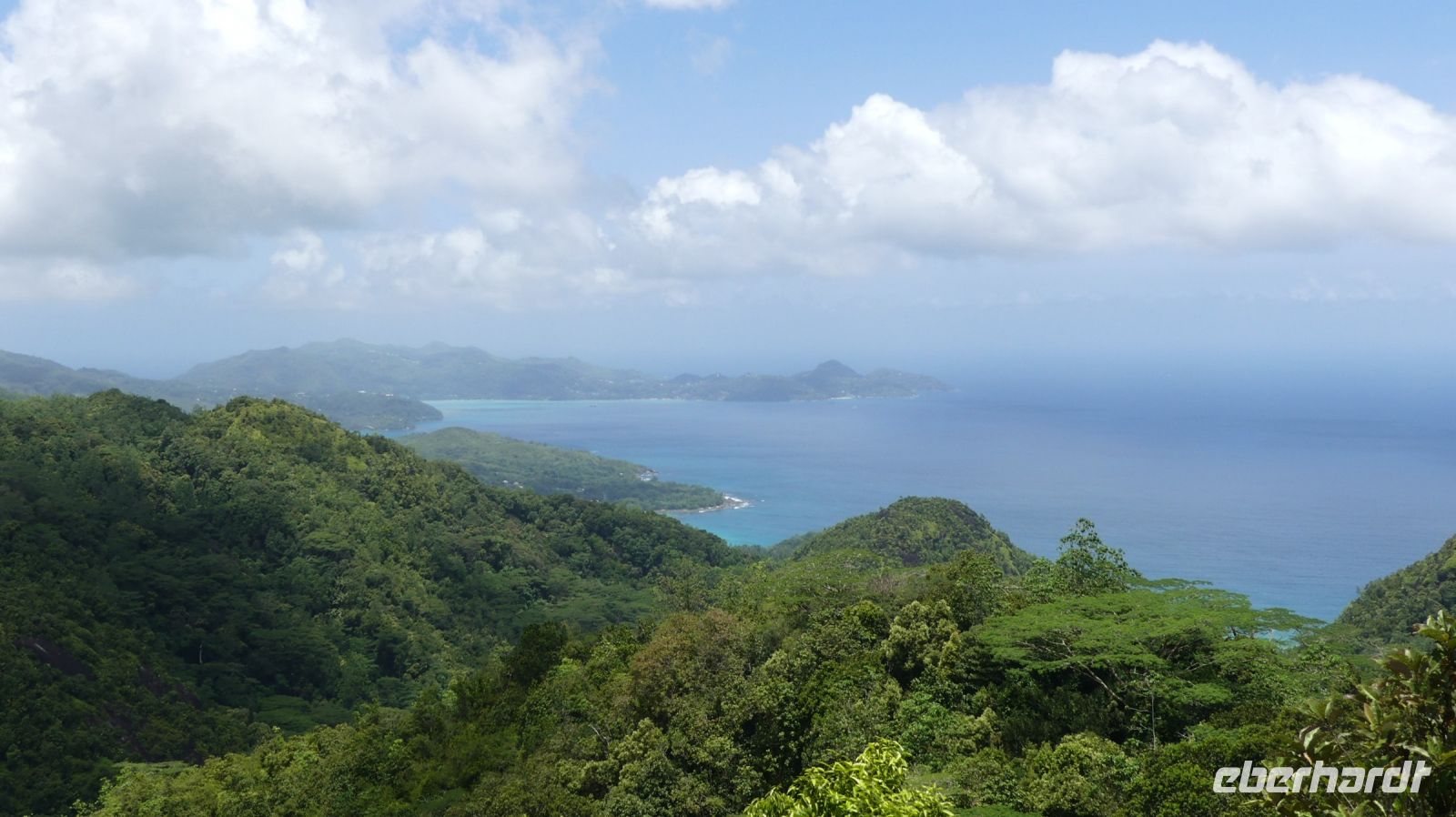 Anschließend kommen wir zur Westküste, wo wir am Anse a la Mouche die vielen verschiedenen Blautöne des Meeres bewundern. Die Motive mit weißem Sandstrand, kristallklarem Wasser und Kokospalmen würden sich gut für einen Reisekatlog eignen. Nach einem weiteren Halt am Grand´ Anse verlassen wir bei Port Claud die Westüste von Mahe. In den Bergen auf ca. 500 bis 600 Meter Höhe kommen wir zur Venn´s Town Mission. Der Ort bietet einen Einblick in die Geschichte der afrikanischen Sklaven, von denen sich einige hier her zurückgezogen hatten. Es gibt eine interessante Flora wie z. B. Zimt-, Drachenblut-, Sandel- und Mahagonibäume. Noch zu erwähnen ist der Aussichtspunkt, den schon Queen Elizabeth II. besucht hat, als sie 1972 nach Mahé zur feierlichen Eröffnung des Flughafens kam (sie reiste aber mit dem Schiff).